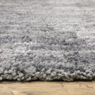 Aspen 829E9, a luxurious shag rug crafted from super soft space-dyed microfiber polyester. This power-loomed rug boasts a stunning color palette with captivating shades of blue and gray. The unique design showcases textural "active solids" and modern abstract patterns, adding a contemporary touch to any space.