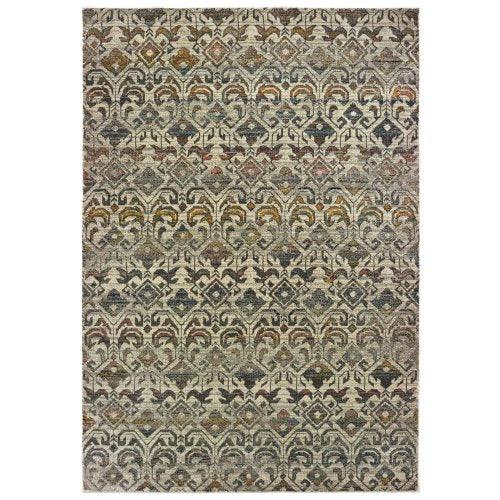 Mantra 1330W, a stunning addition to your home decor. The Mantra collection features a beautiful blend of warm gray tones mixed with pops of bright gold, vibrant red, blush, and cool blues in traditional global designs. Crafted from a combination of polypropylene and polyester, the Mantra rug is machine-woven to perfection.
