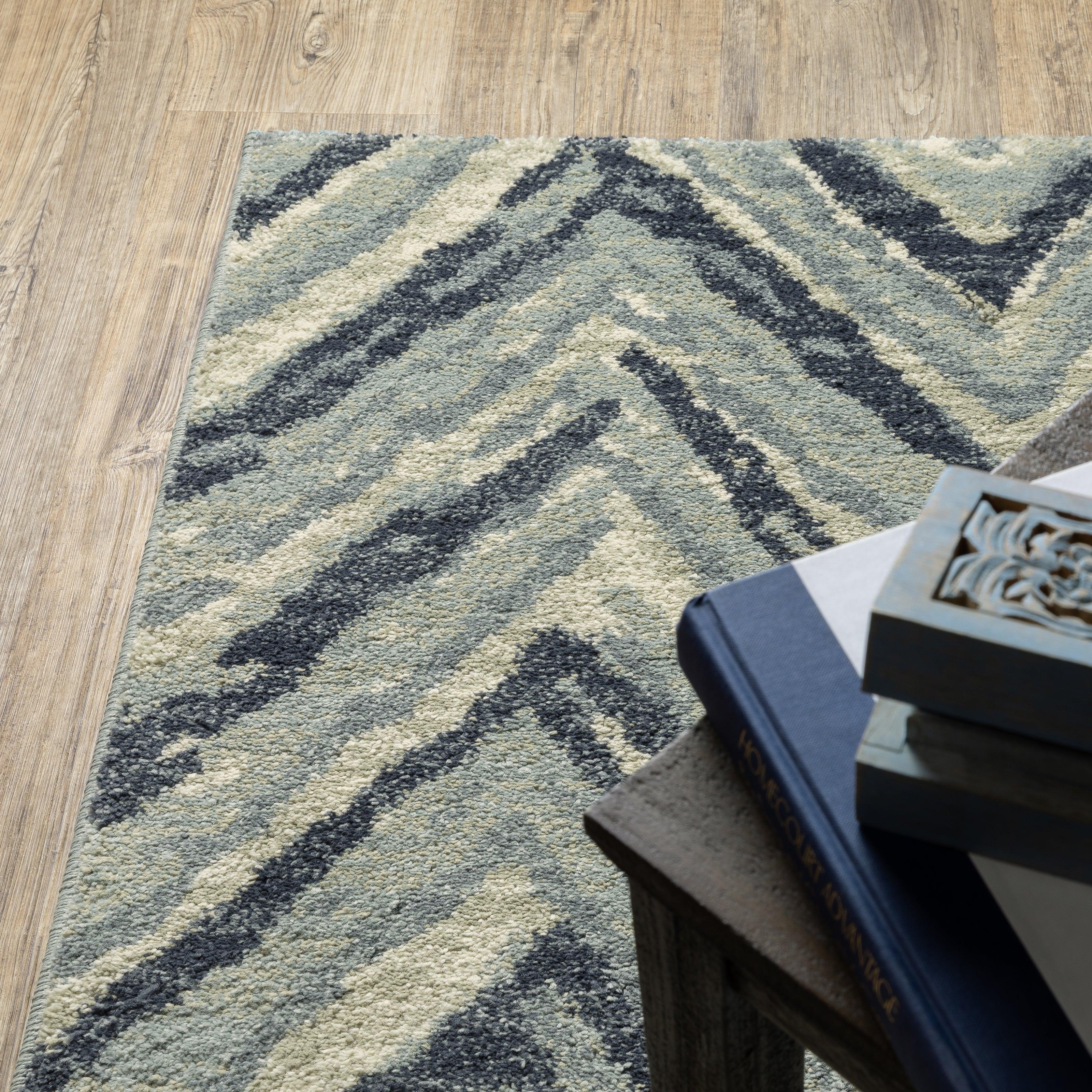 Seneca SE03A rug, a luxurious addition to any space. This collection boasts a dense construction with a high pile, crafted from textured, super-soft polypropylene that feels incredible to the touch. The striking contrast of black and ivory is complemented by soothing tones of grays, blues, and greens, creating a harmonious blend of colors.