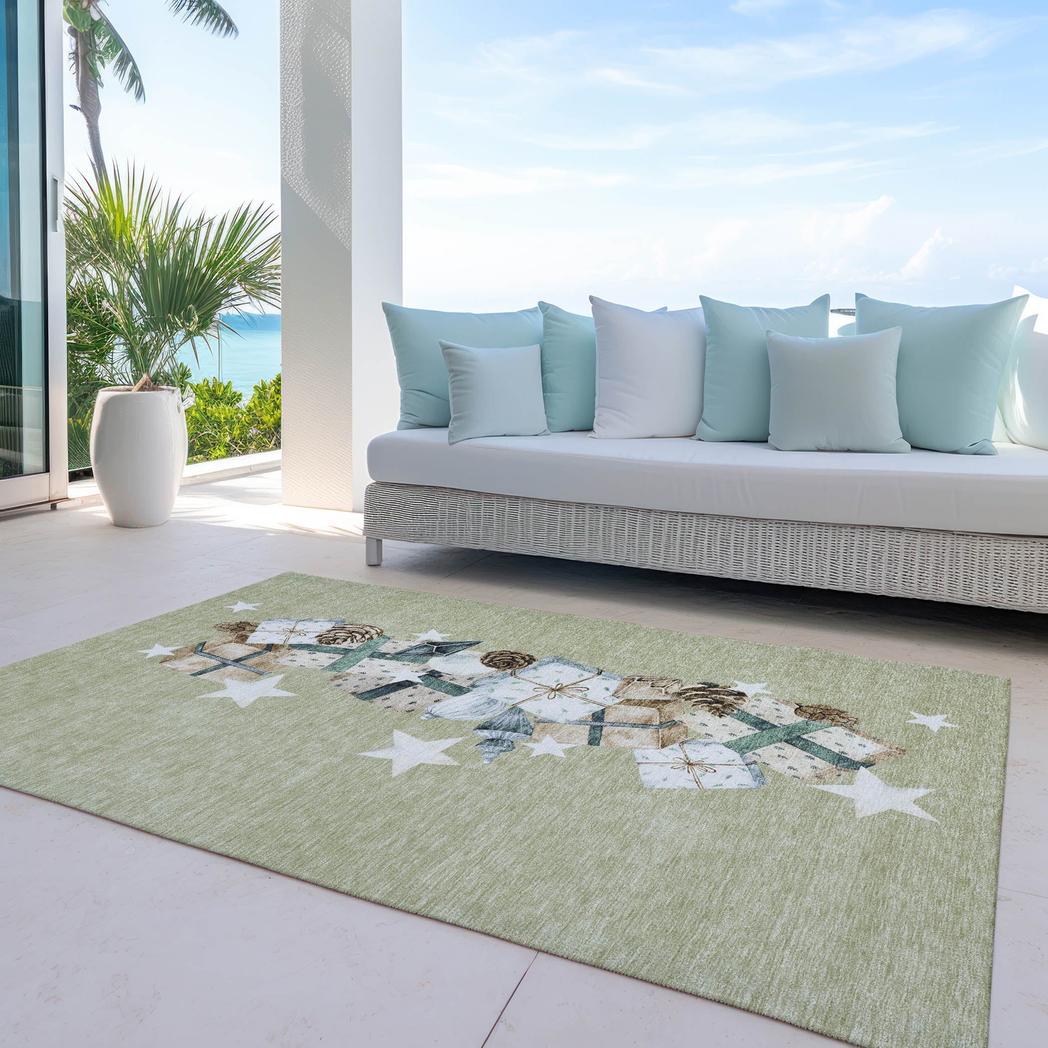 A delightful combination of presents and stars runs along the center of this rug, adding a joyful holiday atmosphere to any room. The wrapped gifts symbolize the season of giving, while the stars bring a bright, festive touch. The transitional style ensures this Christmas pattern works beautifully in both classic and modern décor. Designed for both indoor and outdoor spaces, this UV-stabilized rug features an ultra-thin construction that’s easy to clean and care for. Its machine-washable design adds convenience, while its family and pet-friendly nature ensures it can handle everyday wear and tear. Stylish and durable, it’s the perfect solution for busy households.