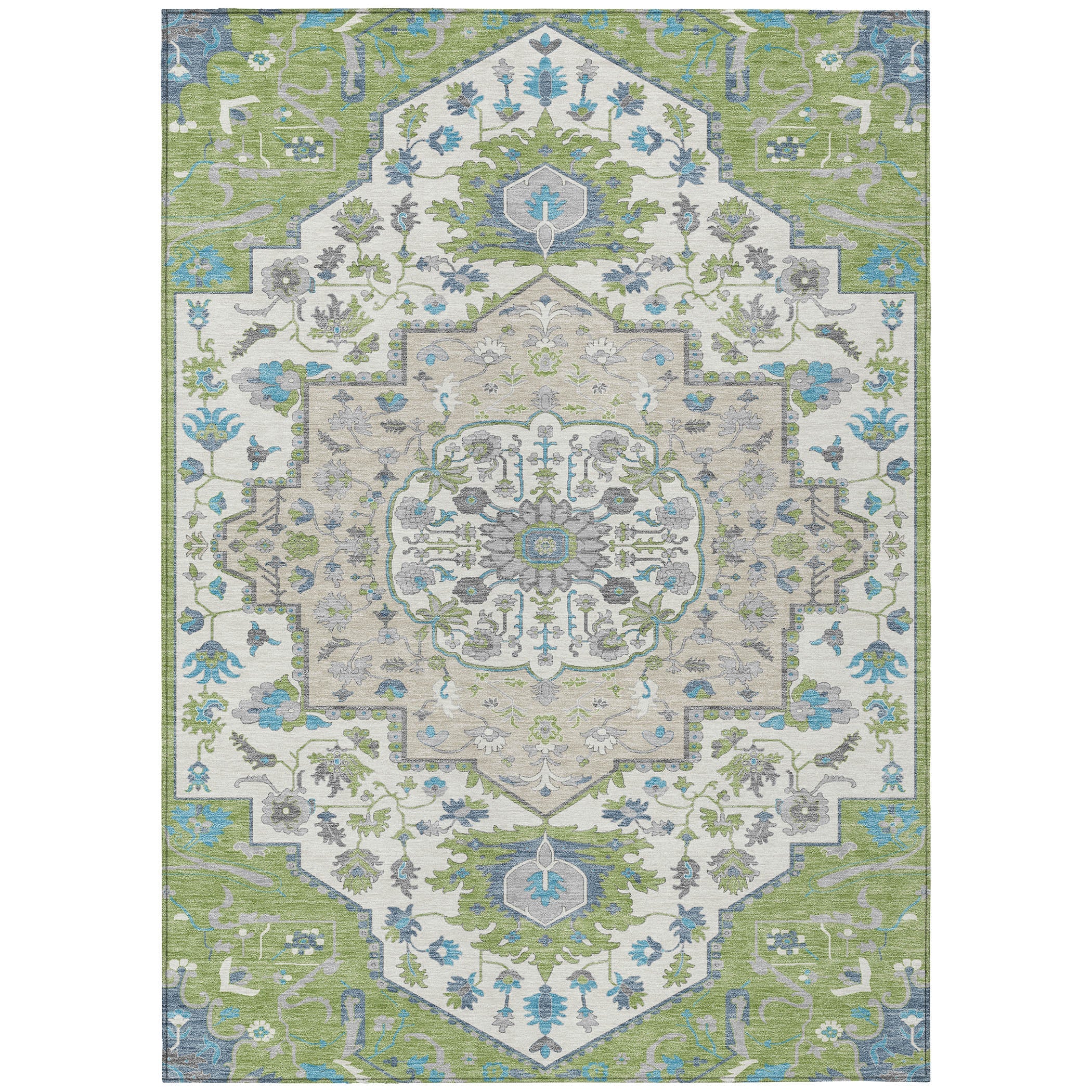 Step into sophistication with our stunning area rug boasting a traditional and vintage large center medallion, reminiscent of classic oriental designs. Crafted with precision and care, this rug seamlessly marries traditional charm with modern convenience. Engineered with UV stabilization, its suitable for indoor or outdoor use, ensuring long-lasting vibrancy. Its ultra-thin construction adds a touch of elegance to your decor while providing versatility in placement. With machine-washable features, upkeep is effortless, making it ideal for busy households. And, its family and pet-friendly, offering a comfortable and durable surface for all to enjoy.