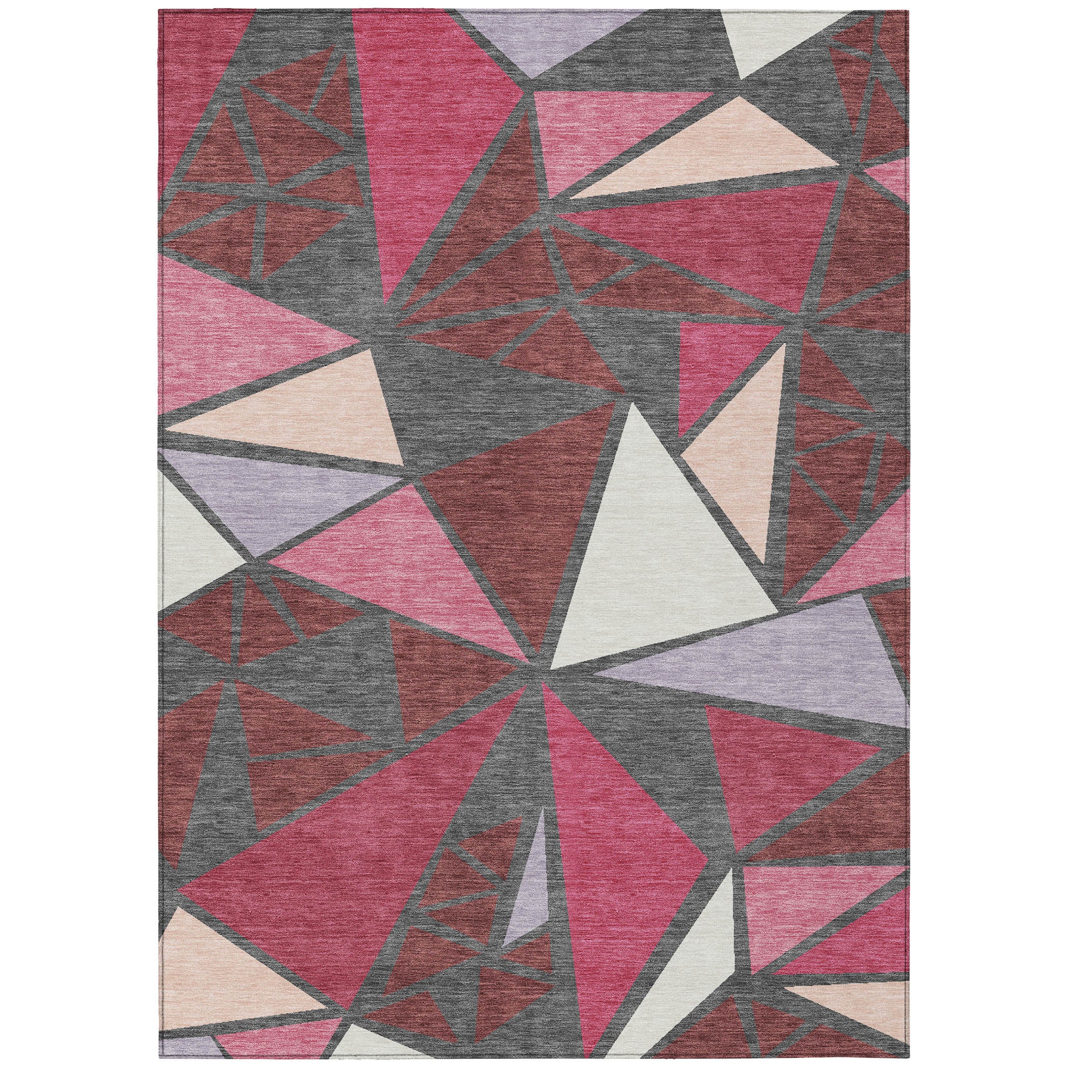 Discover the perfect fusion of art and utility with our geometric area rug featuring an array of multi-shaped triangles. This transitional piece effortlessly complements both contemporary and classic interiors. Designed with your convenience in mind, it is UV stabilized to resist fading, ultra-thin for easy door clearance, machine-washable for stress-free cleaning, and constructed to be both family and pet friendly.