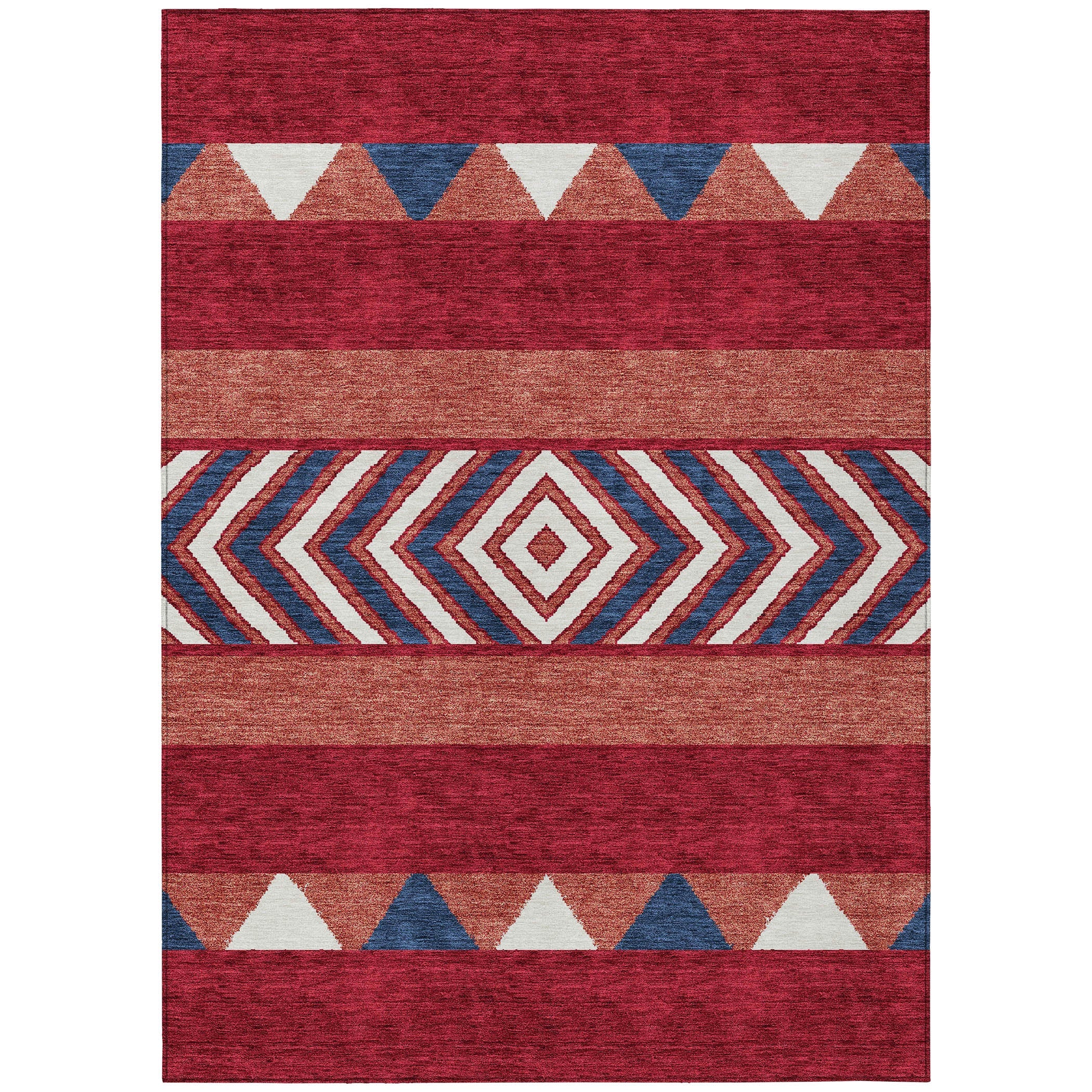 Chantille ACN965 Red area rug, a perfect blend of Southwest-inspired design and modern charm. This rug features contemporary blanket motifs, making it a great addition to transitional decors looking for a touch of geometric flair. The vibrant hues are UV stabilized to ensure long-lasting color retention, while its ultra-thin construction adds a sleek and modern touch to any room.