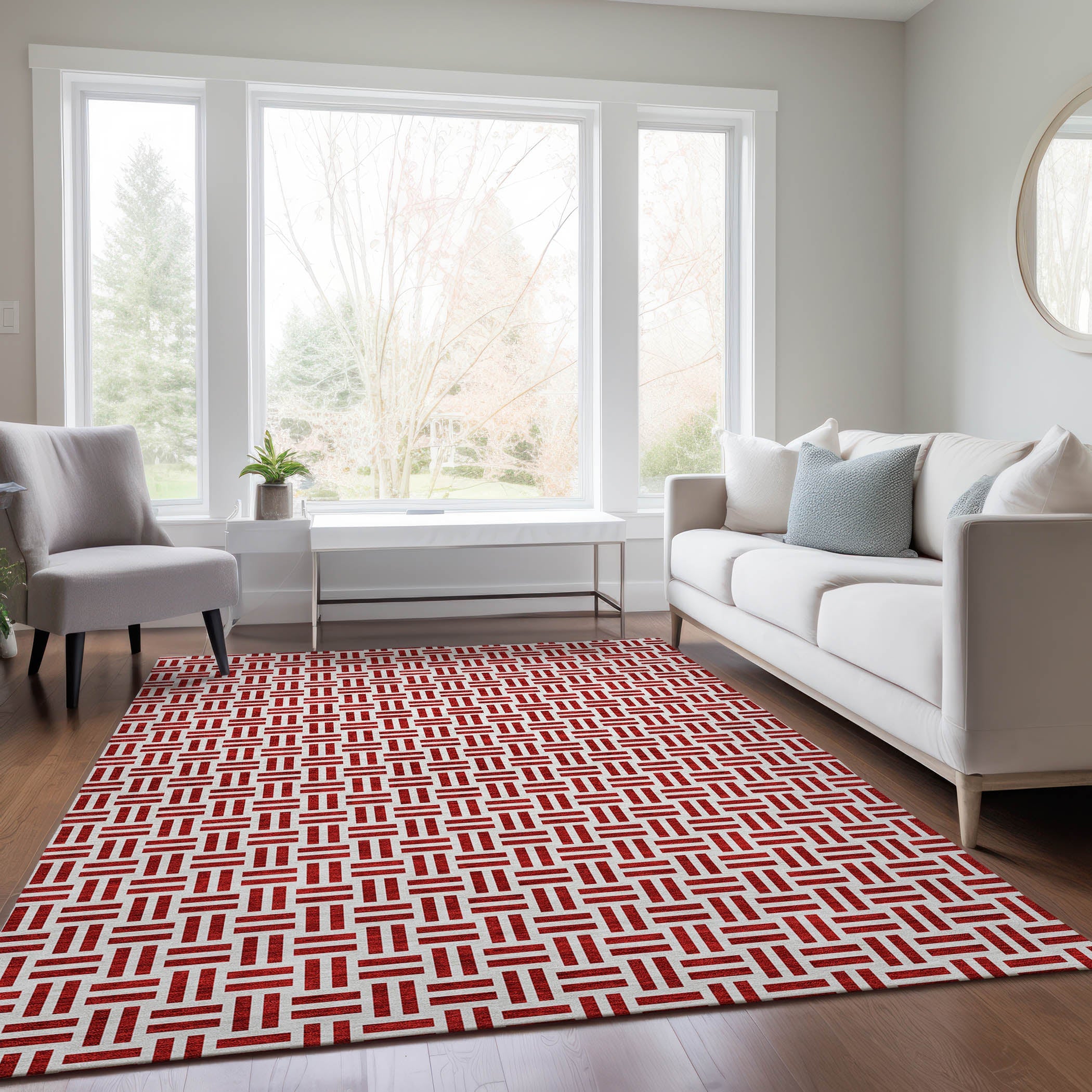 Chantille ACN978 Red area rug, a stunning addition to your home decor. This rug features a delicate basketweave pattern that brings a touch of transitional beauty to any room. The geometric design adds depth and texture, creating a stylish focal point in your living space.