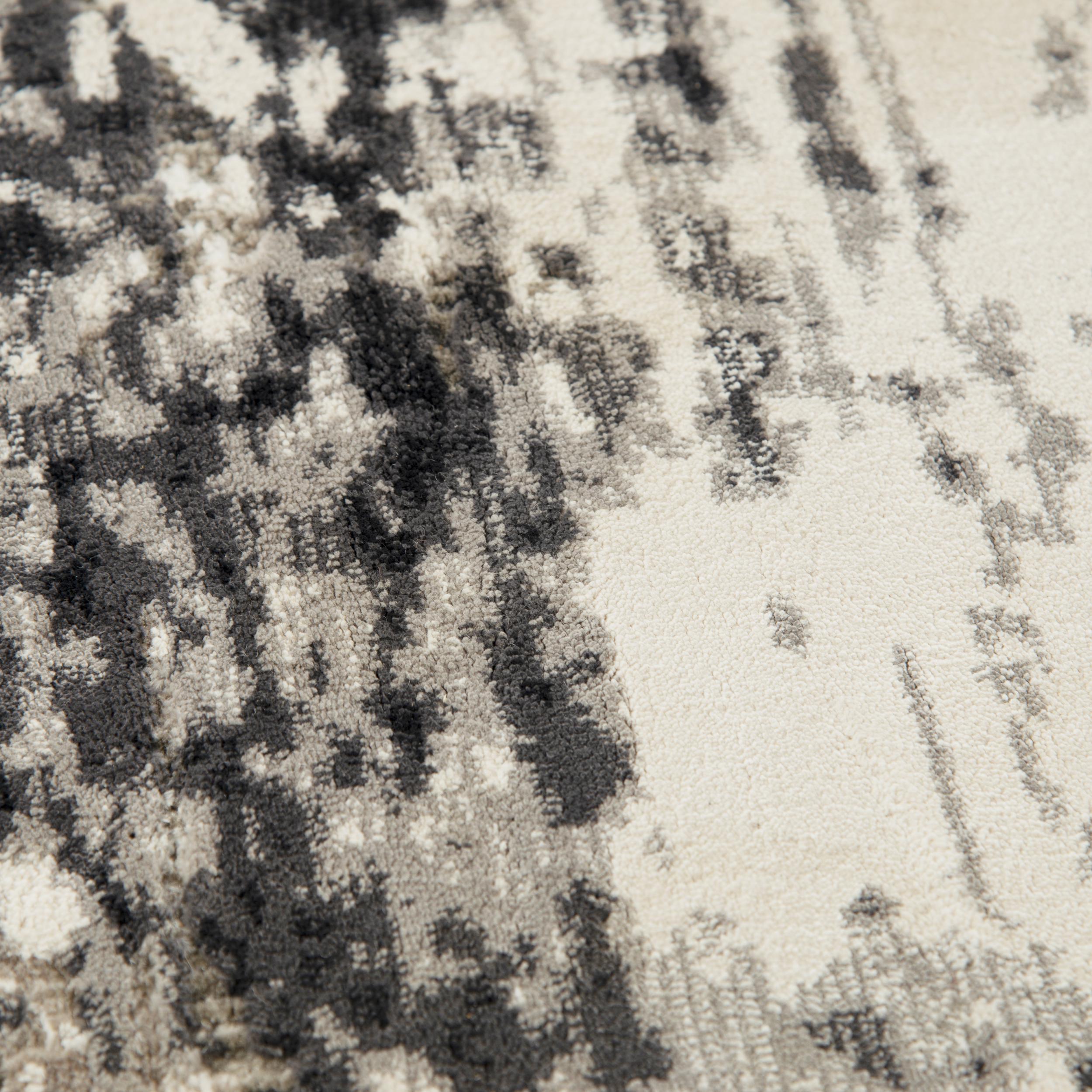 Elevate your space with the Calabria CLA794 rug from Rizzy Home. Featuring a striking abstract pattern and vibrant color combination, this rug is sure to make a statement in any room. The elegant blend of ivory and black hues lends a modern and transitional flair that will effortlessly stand out.