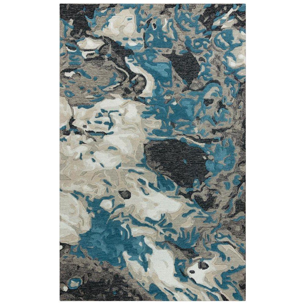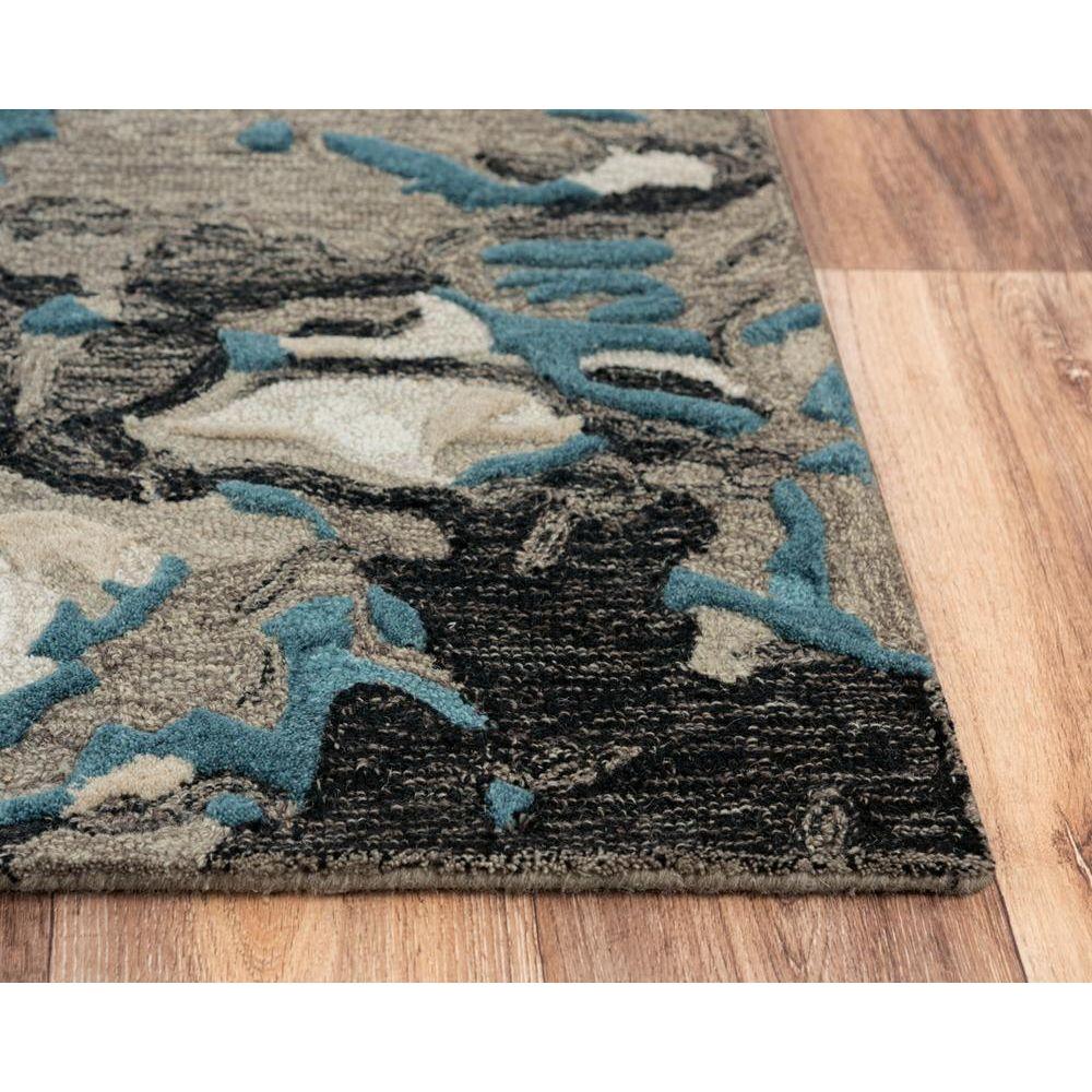 stunning Connie Post CNP117 rug, featuring a bold abstract pattern that exudes fluidity and movement. The beautiful tones of Teal, Charcoal, Gray, Ivory, and Beige effortlessly blend together to create a harmonious and eye-catching design. Elevate the decor of any room with this statement piece that will captivate your guests and add a touch of drama to your space.