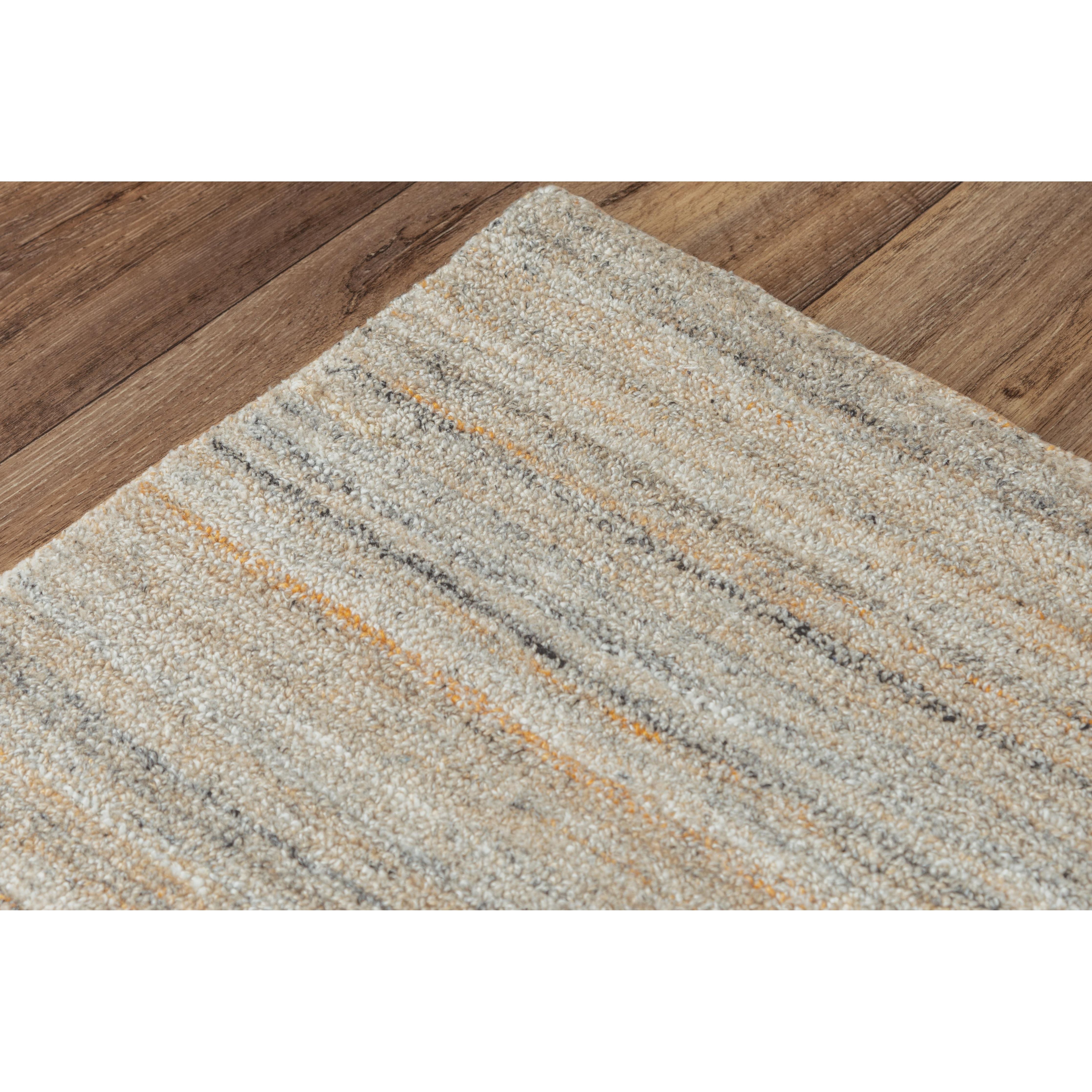 Seasand SEA107 from the Donny Osmond home collection. This rug boasts a soft and tranquil design aesthetic that effortlessly complements any decor style. Hand-tufted in India, it is crafted using 100% recycled Polyester that is expertly dyed to mimic the feel of wool. The muted stripes in multiple color shades make this rug a versatile piece that seamlessly integrates with various decor schemes.