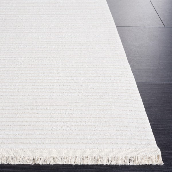Whisper WHS565A Ivory Ivory rug, a trendy addition to elevate your living space. Experience the epitome of sophistication with its chic design that exudes a luxurious vibe. Perfect for modern interiors, this rug features subtle patterns in opulent hues and textures that scream elegance. Made from a blend of synthetic and cotton yarns, Whisper offers unparalleled comfort beneath your feet.