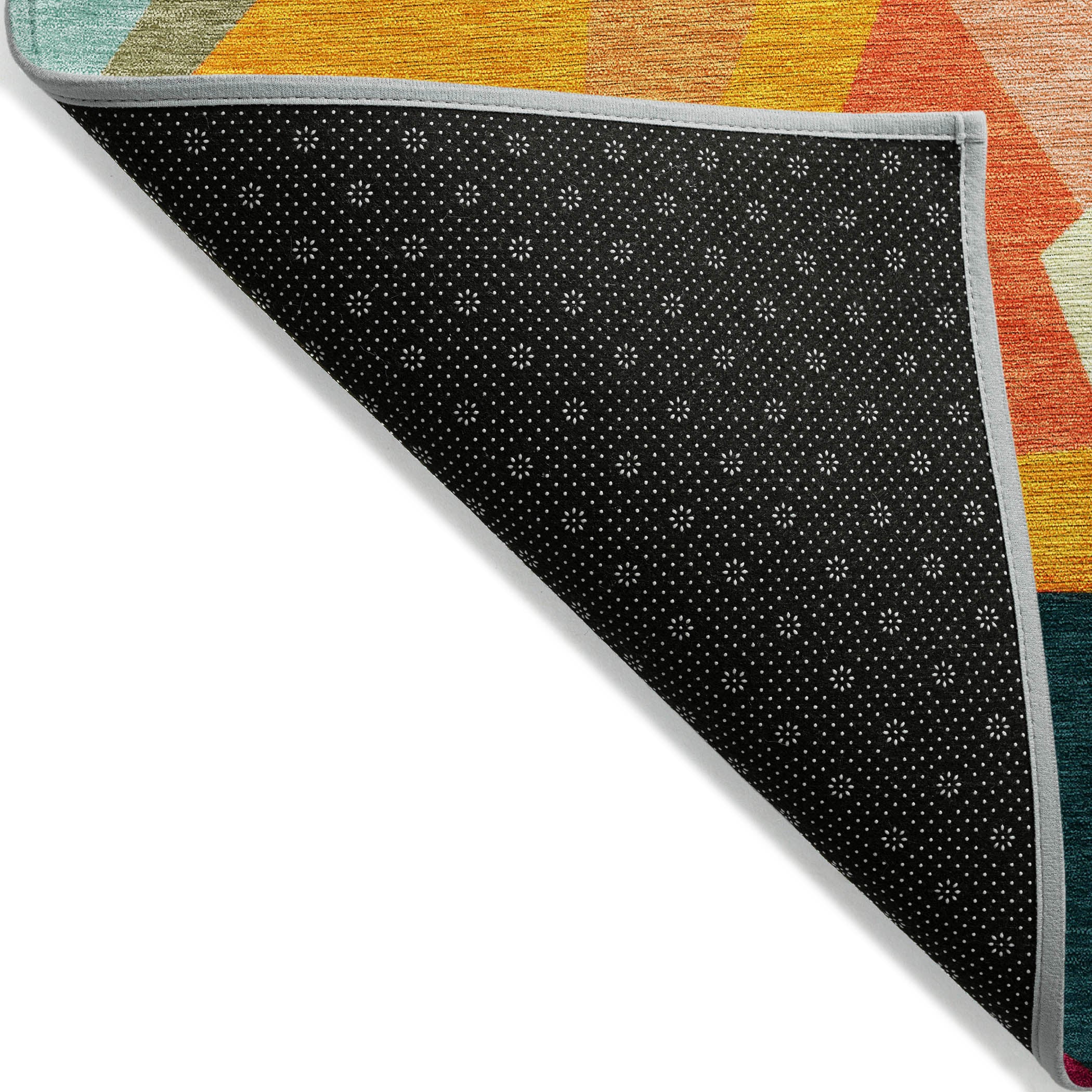 Showcasing random geometric shapes in a kaleidoscope effect, this transitional rug introduces a bold and engaging design. The kaleidoscope pattern delivers a striking and modern appearance, enhancing your decor with its unique charm. UV stabilized for long-lasting use, this rug is perfect for both indoor and outdoor settings, maintaining its vibrant colors through regular wear. Its ultra-thin profile fits smoothly under furniture, and it’s machine-washable for easy upkeep. Family and pet-friendly, this rug combines a compelling design with practical features.
