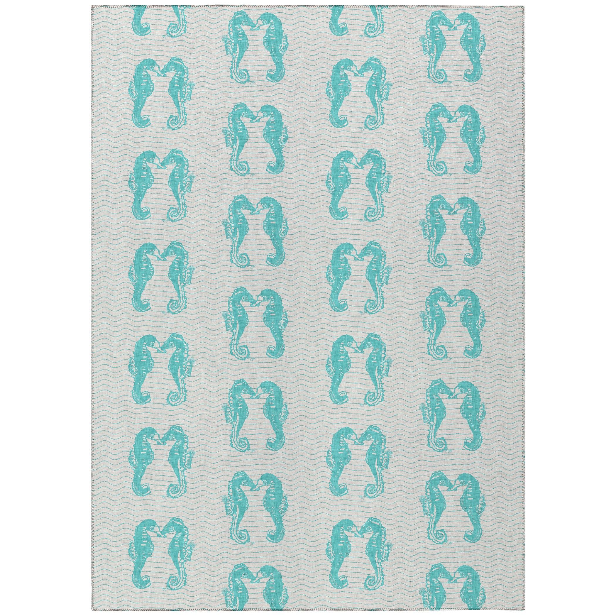 Seabreeze SZ15 Teal from our remarkable Seabreeze collection, designed to evoke tranquility in your space. These versatile coastal rugs are sure to impress your guests with their stylish flat weave and vibrant colors that flow seamlessly in natural beach mosaic patterns. Crafted with an ultra-soft, ultra-thin 100% polyester pile and a durable non-skid backing, each rug is meticulously made in the USA using imported materials.