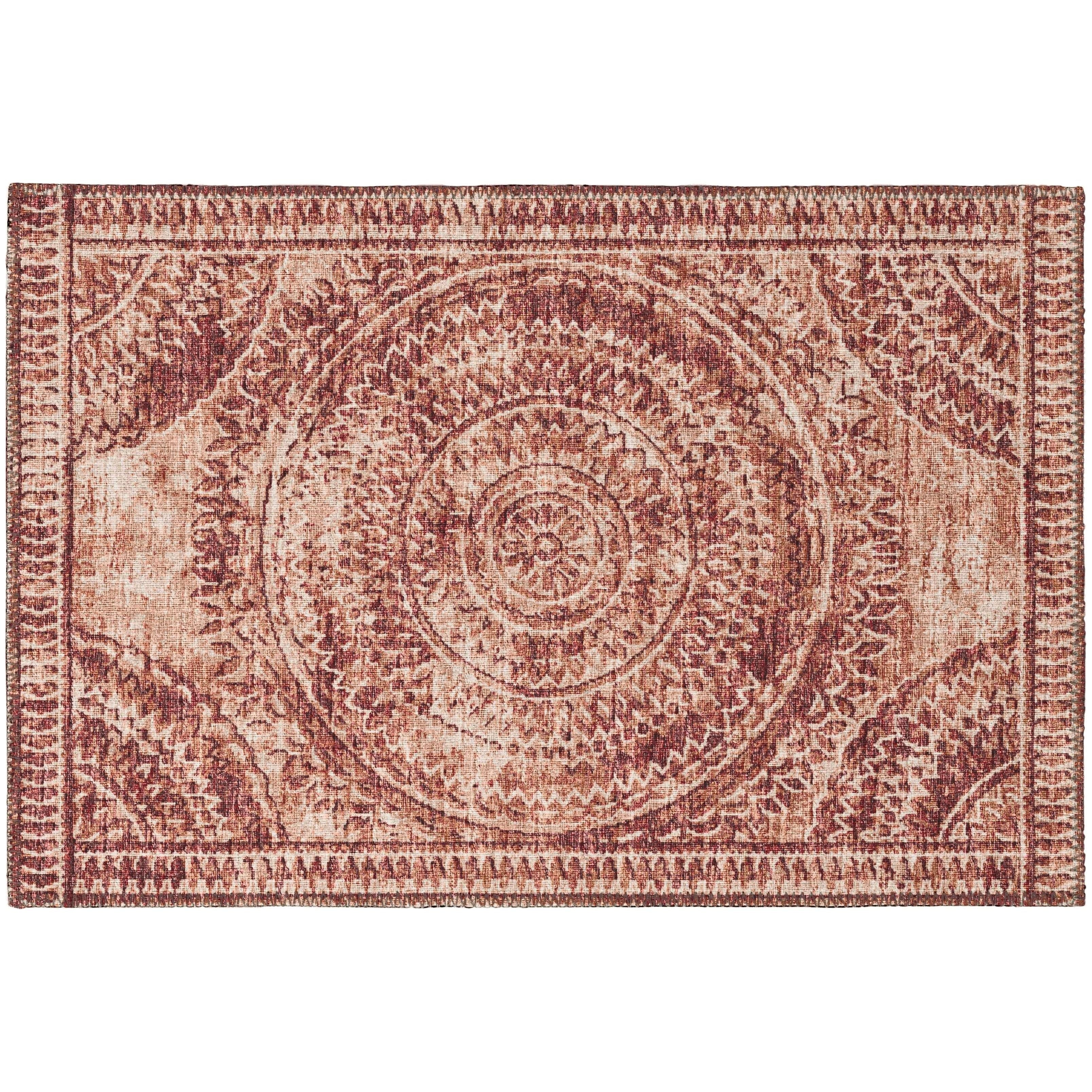 Sedona SN7 Spice from our Sedona collection, a stunning fusion of global design influences. Each rug is crafted with an ultra-soft and thin 100% polyester pile, paired with a non-skid backing for added stability. Made in the USA through domestic processing on imported materials, these rugs are UV Stabilized for both indoor and outdoor use.