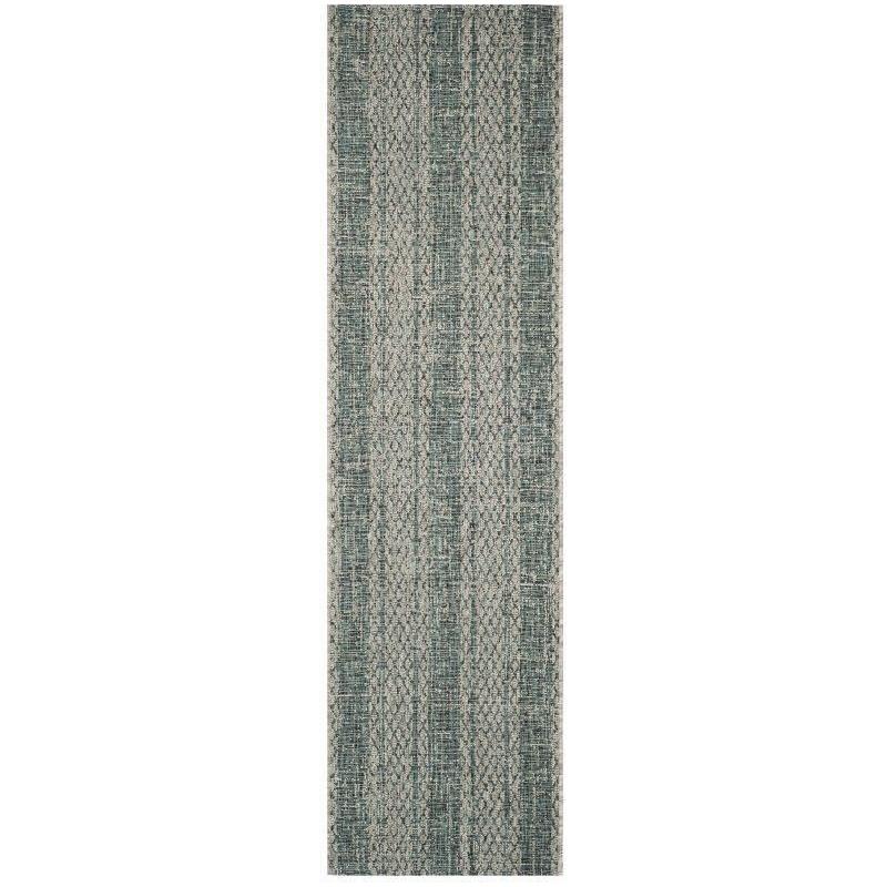 Courtyard CY8736 Light Grey Teal rug from Safavieh's versatile Courtyard collection. Perfect for indoor and outdoor living, these rugs elevate your decor with stylish designs and trendy colors. Crafted in Turkey using durable polypropylene, these rugs are built to last. The Courtyard rugs are designed to effortlessly blend in related spaces, both indoors and outdoors.