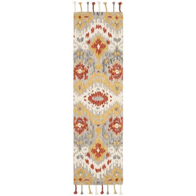 Elevate the style of your modern or boho-themed space with the Suzani SZN202A Grey Gold rug by Safavieh. Infused with lively tribal patterns and bold, spirited hues, this rug effortlessly revitalizes any room it graces. Crafted from high-quality wool through intricate hand-weaving techniques, each rug boasts exceptional detail and long-lasting durability.