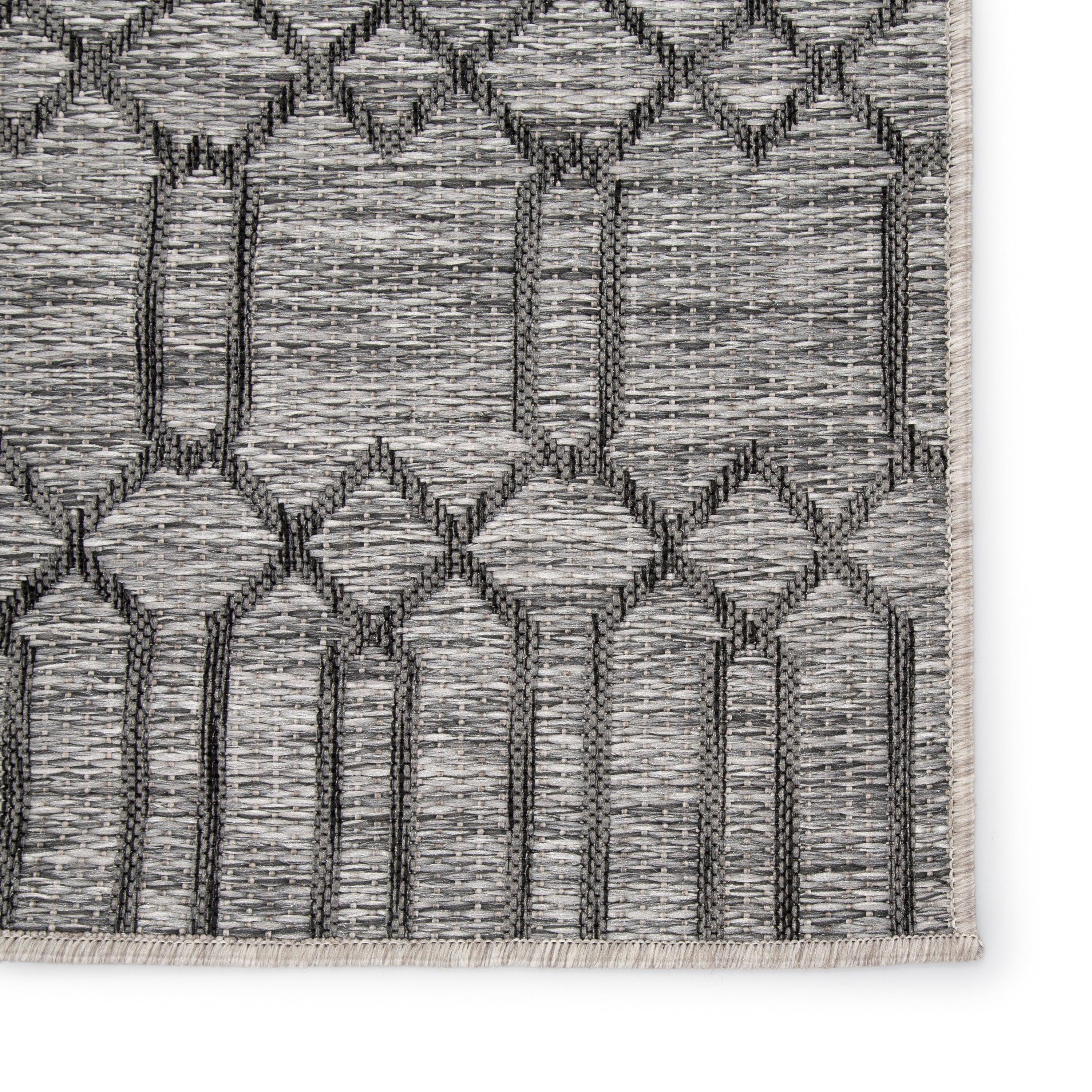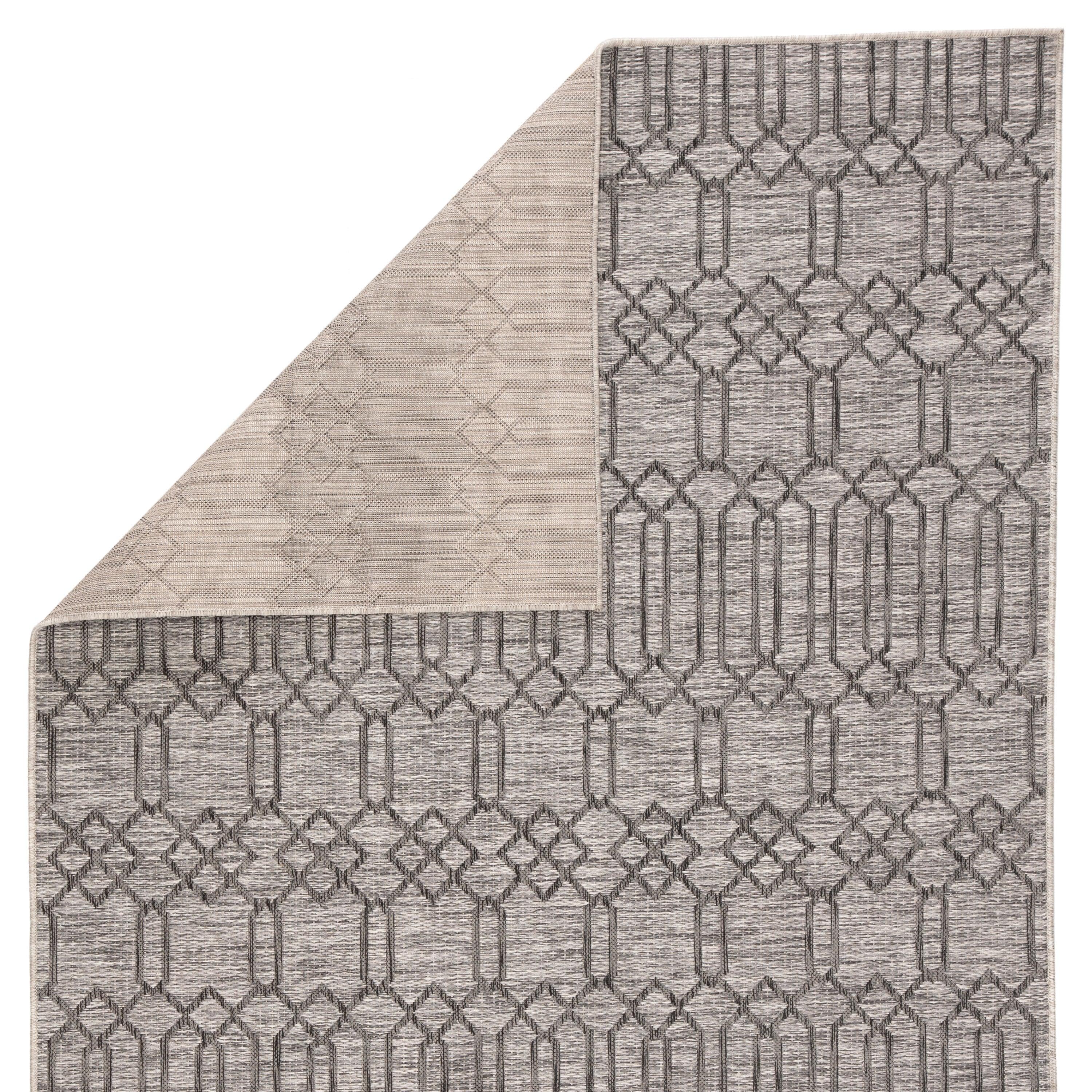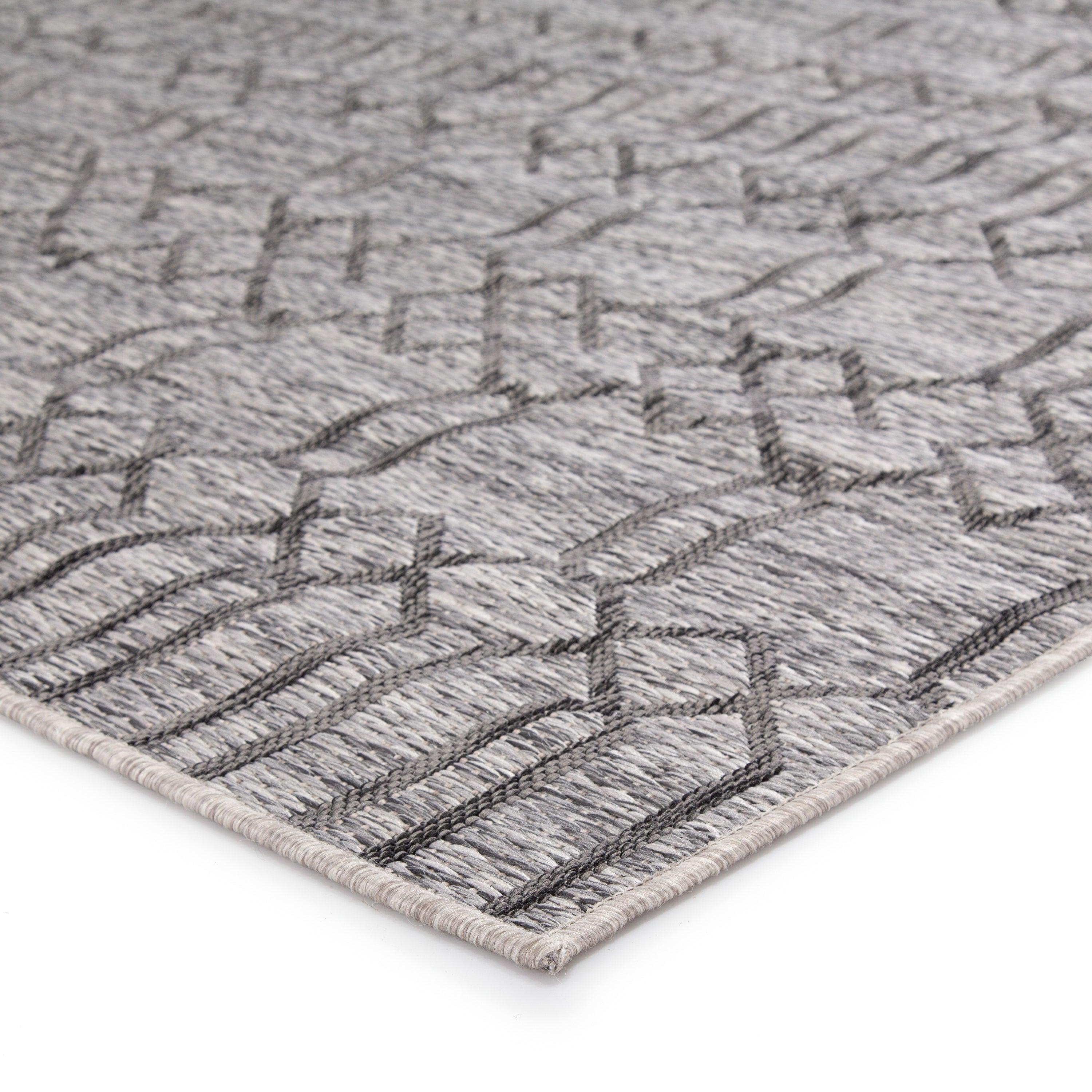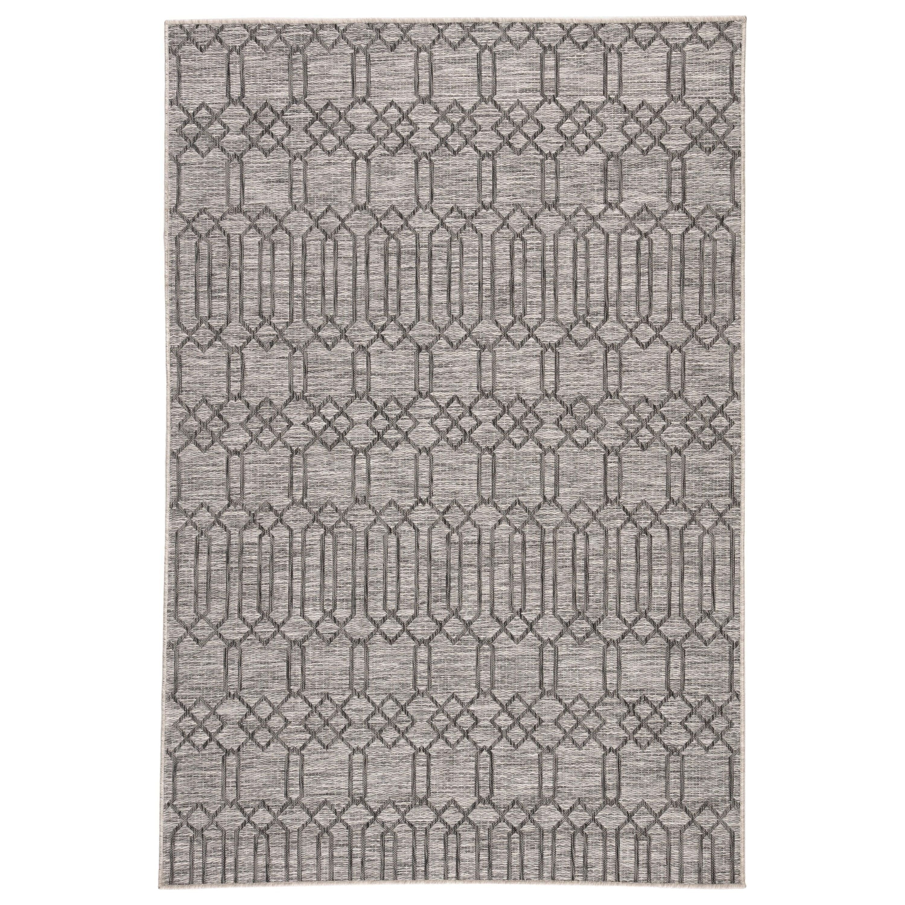 stunning Decora By Nikki Chu DNC21 Calcutta area rug, a masterpiece designed for both indoor and outdoor use. Created by renowned designer Nikki Chu, this power-loomed rug showcases a captivating lattice pattern in a sophisticated heathered charcoal and light gray color palette. Its durable construction and rich texture make it ideal for high-traffic areas in your home or on your patio.
