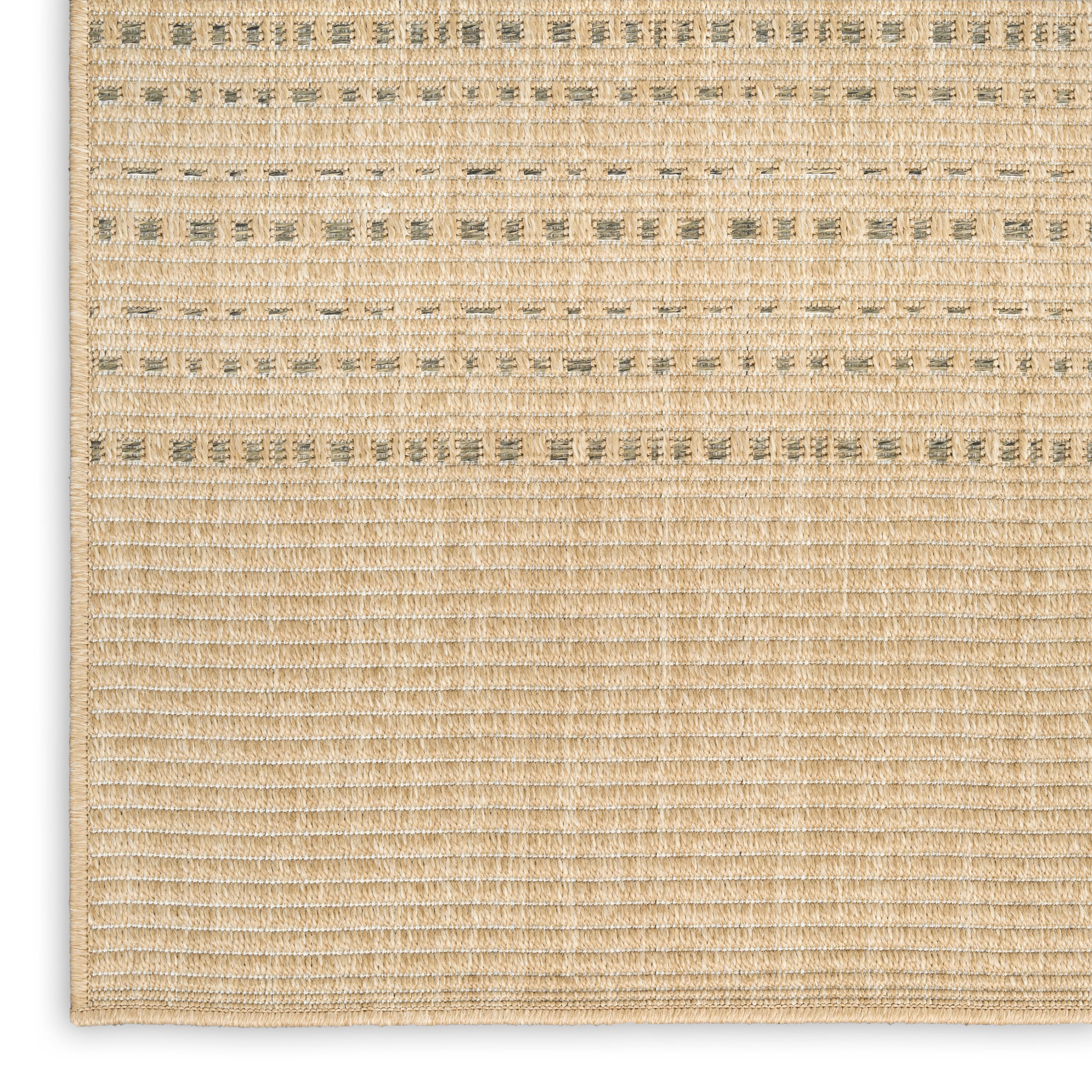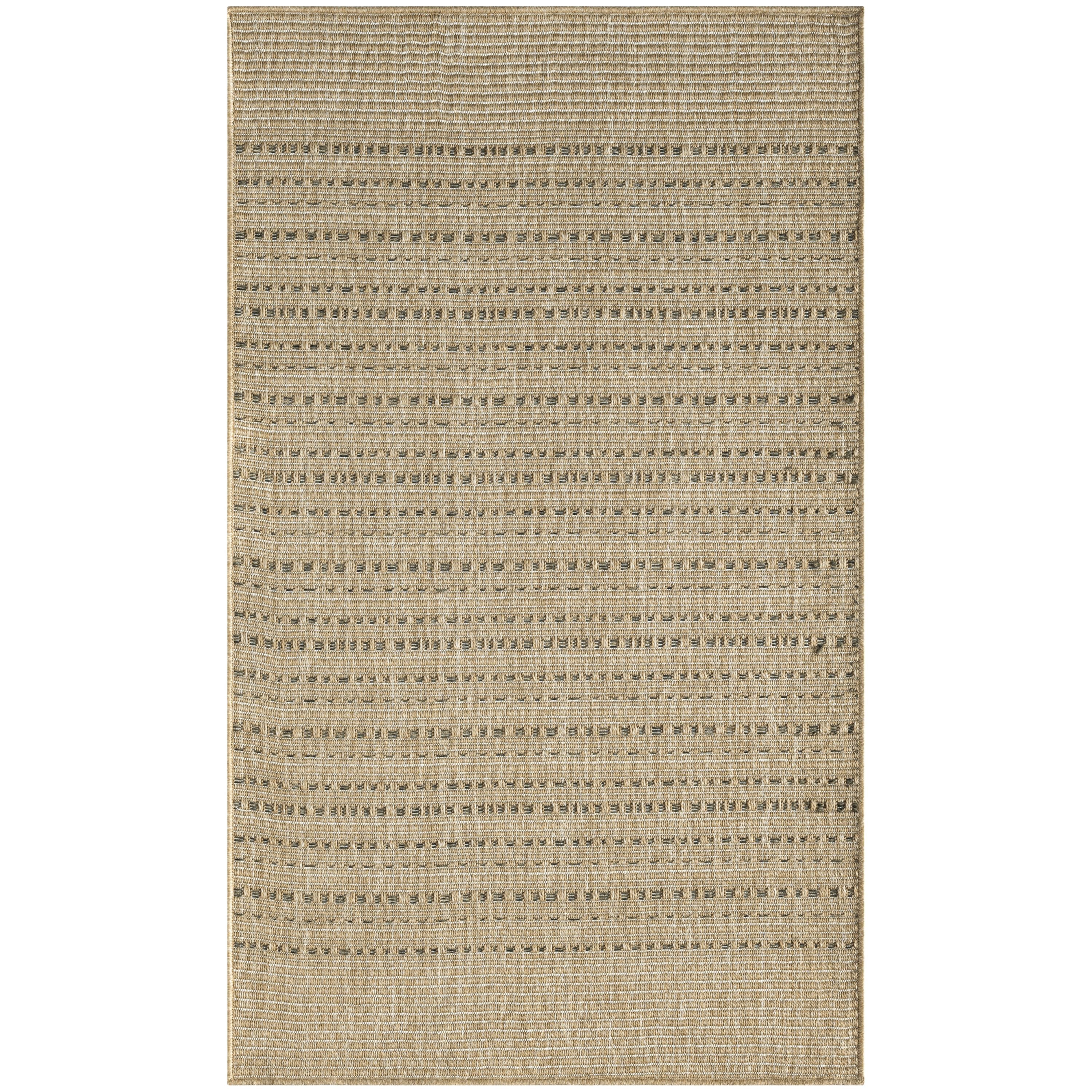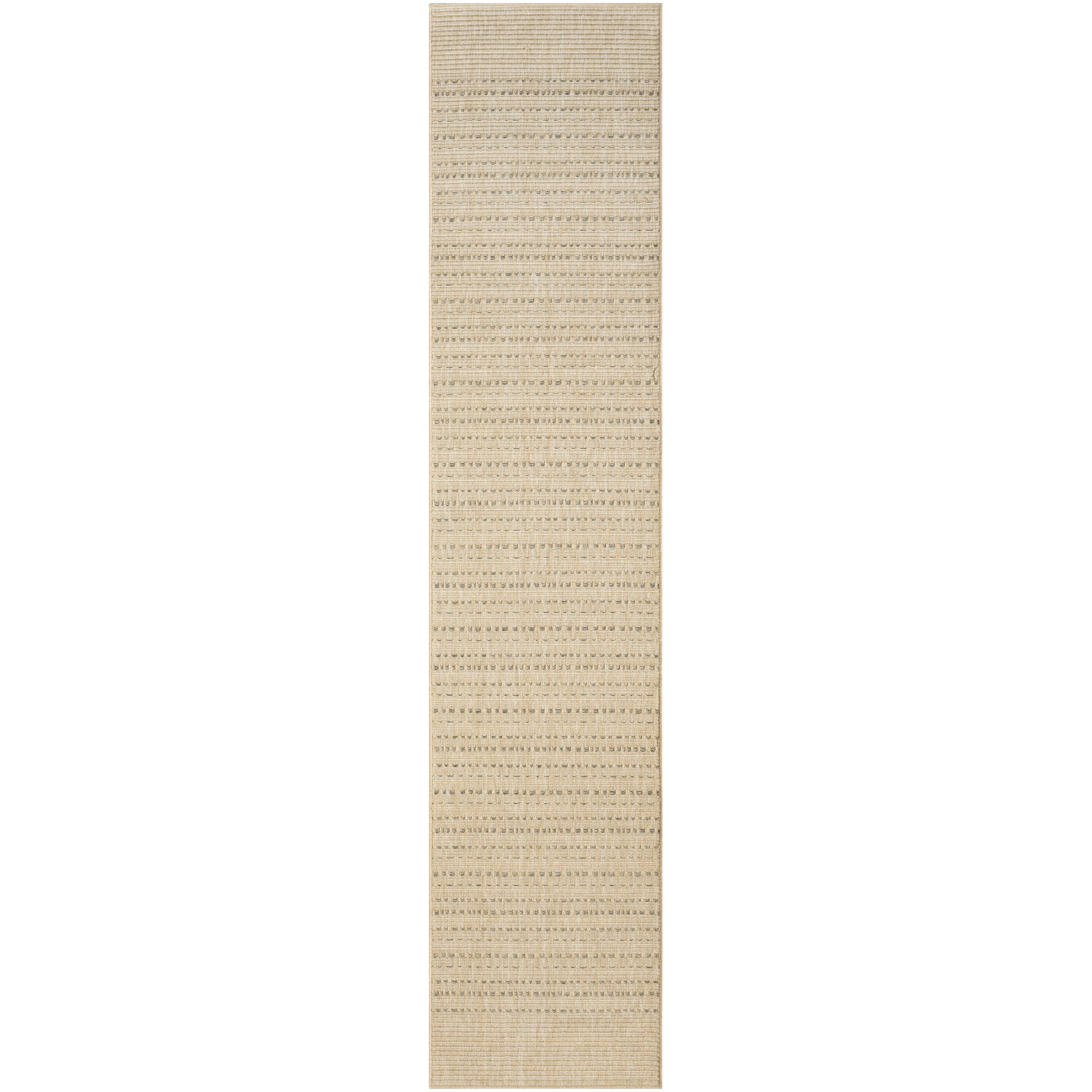 This taupe outdoor rug from the Tulum collection blends geometric style with subtle sophistication. The simple striped pattern is accented with a series of raised, linear weaving coupled with tonal variations that add a unique pop of pattern to your space. This modern rug is flatwoven with a substantial feel and low-maintenance construction great for high-traffic areas both inside and outside.