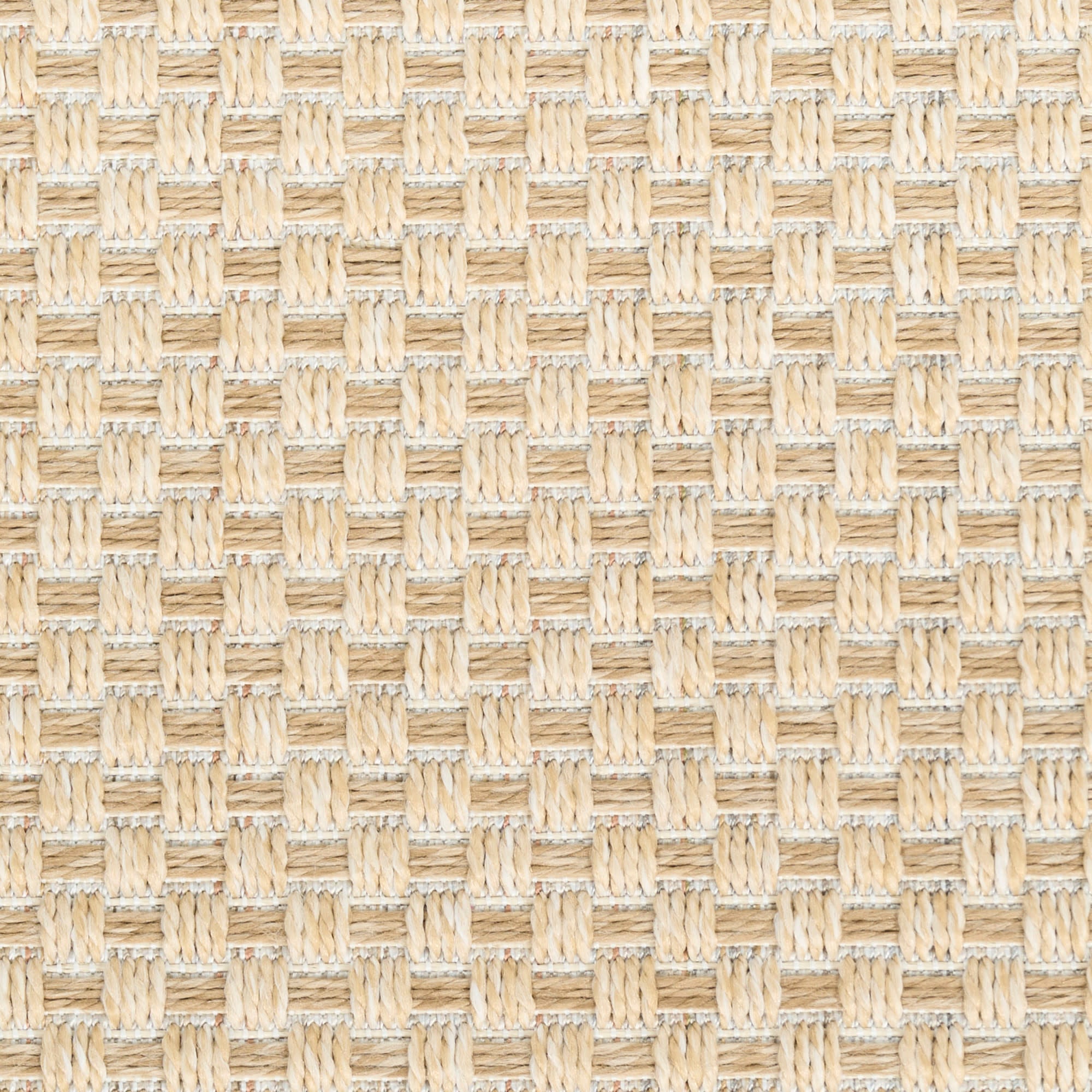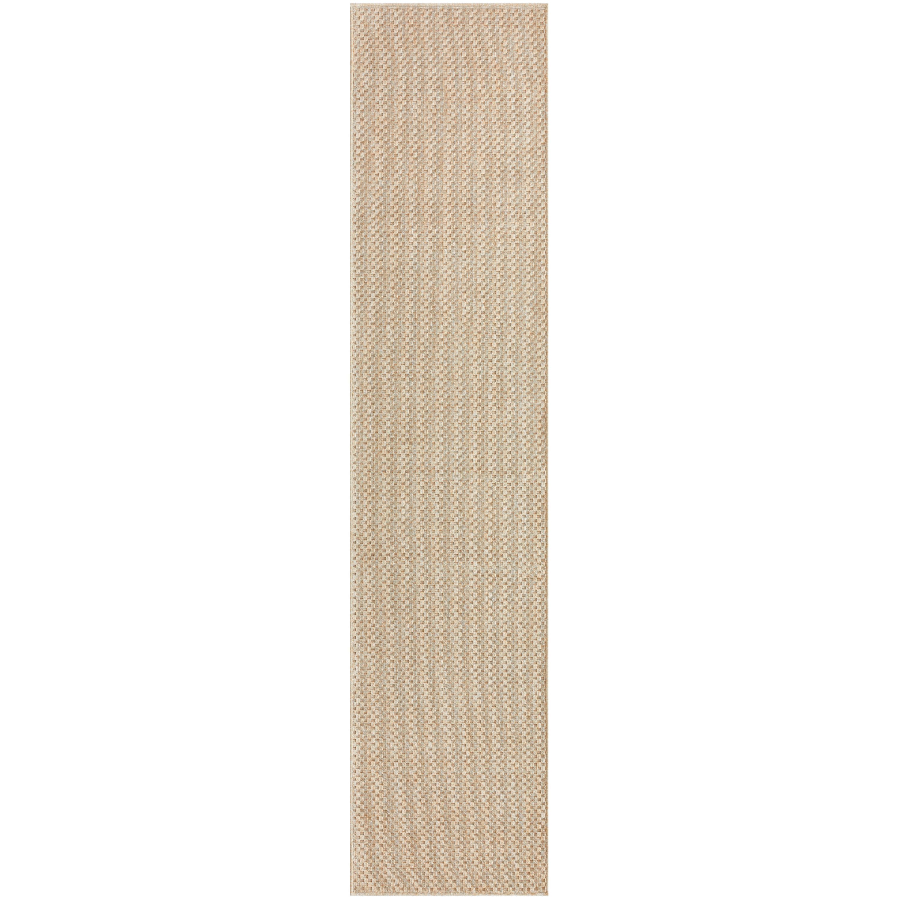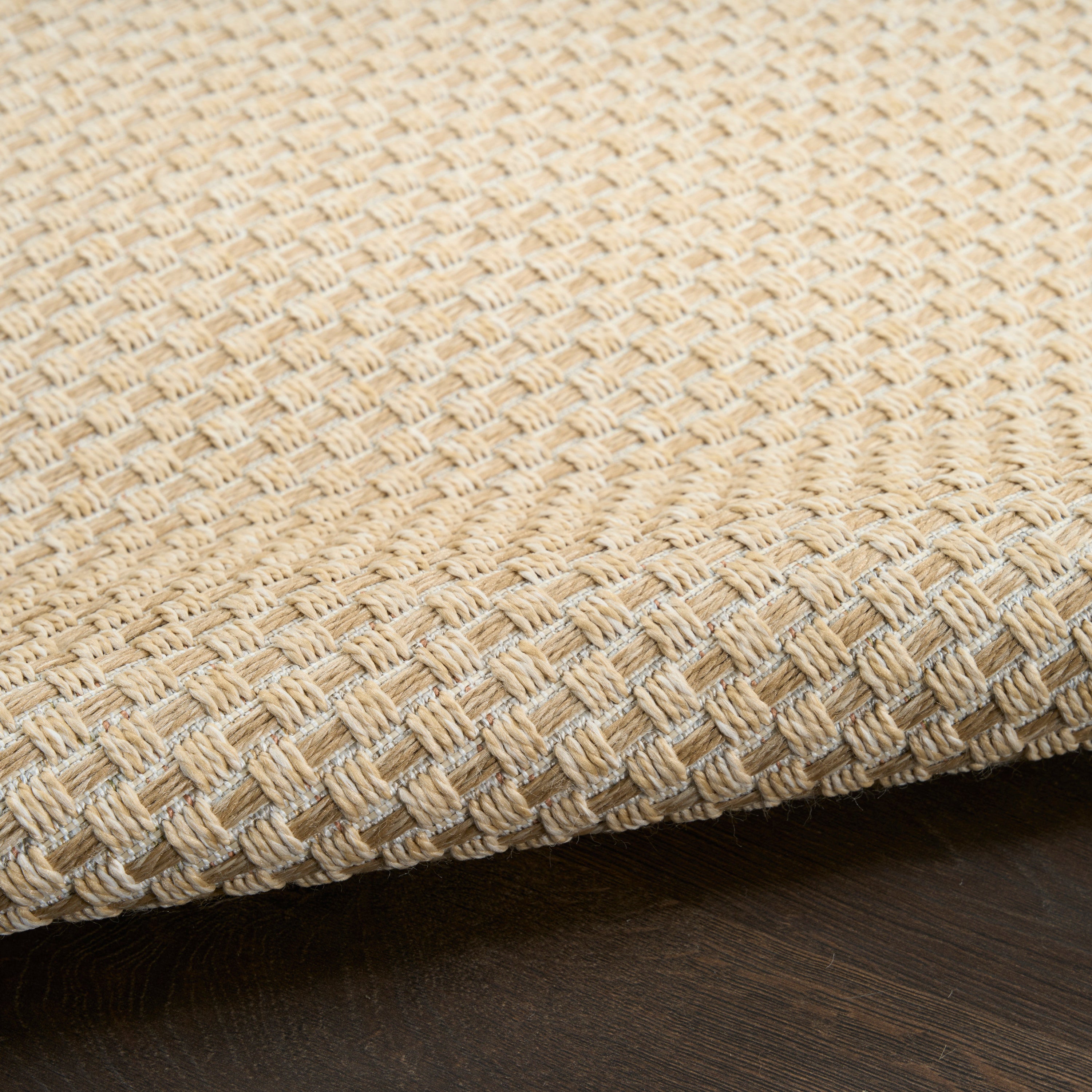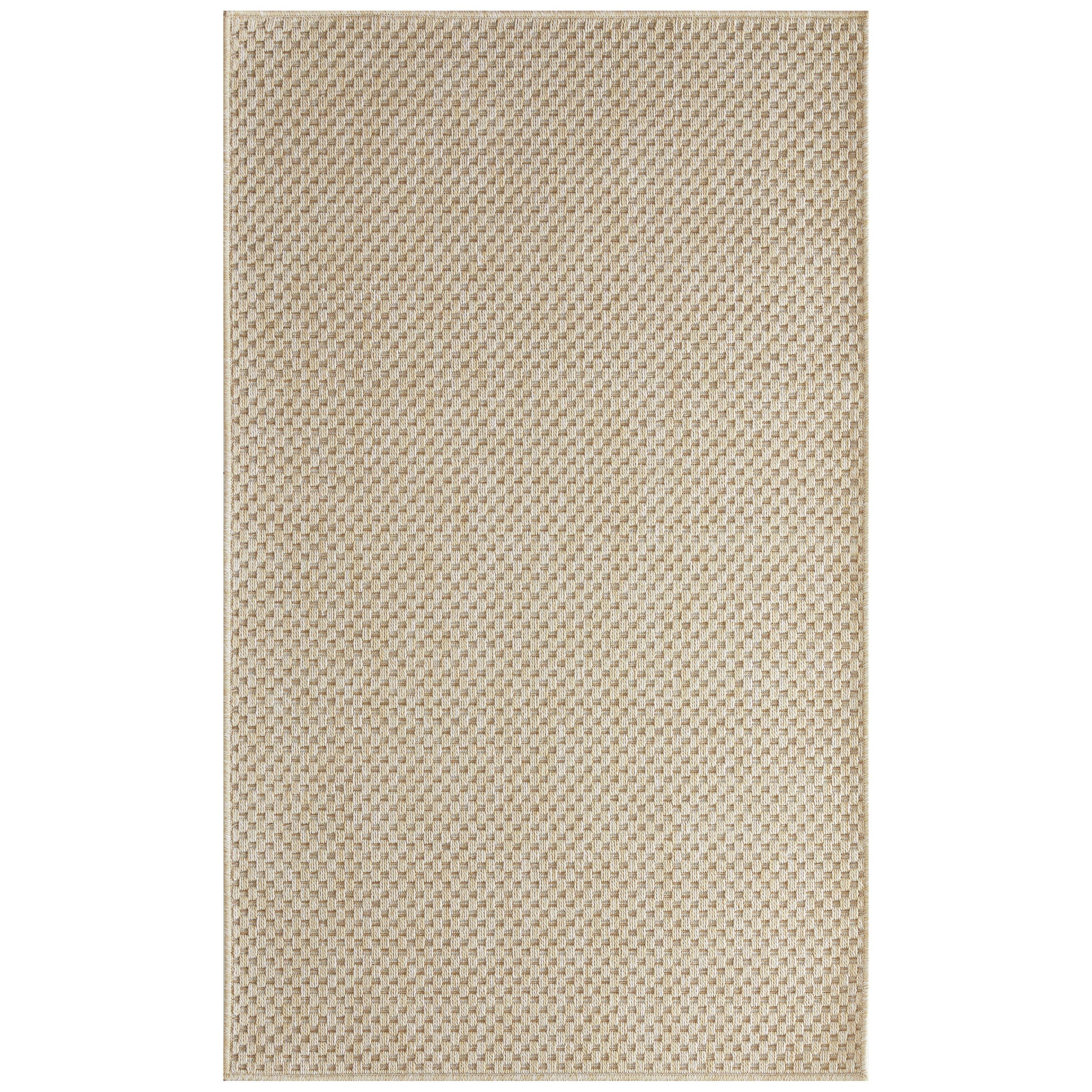 Equal parts stylish and functional, this cream outdoor rug from the Tulum collection helps tie patio conversation areas together with ease. The basketweave pattern, presented in rich earthy colors, is enhanced with subtle tonal variations that impart a natural look. This modern rug is flatwoven with durable, easy-clean polypropylene fibers, making it ideal for both indoor and outdoor spaces.