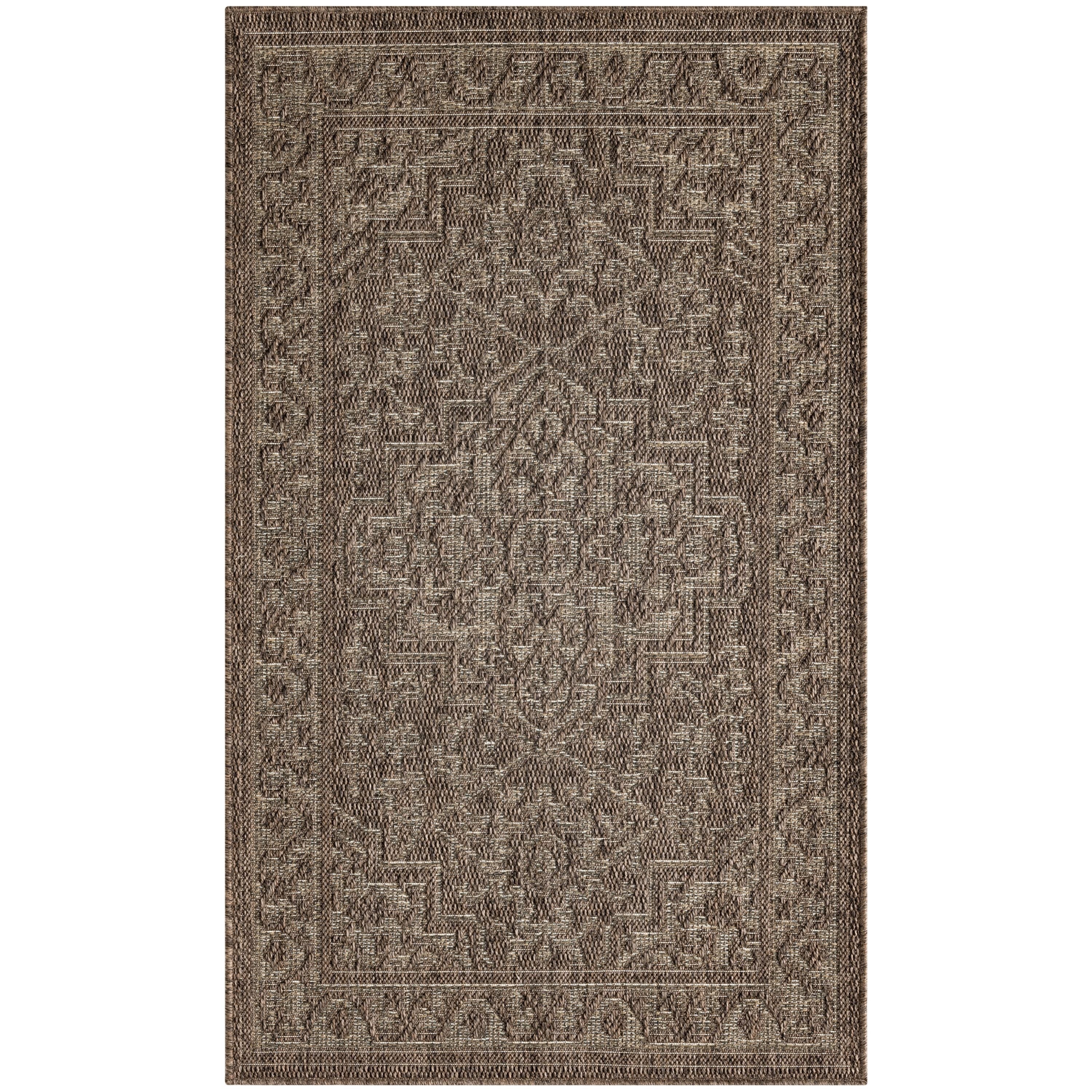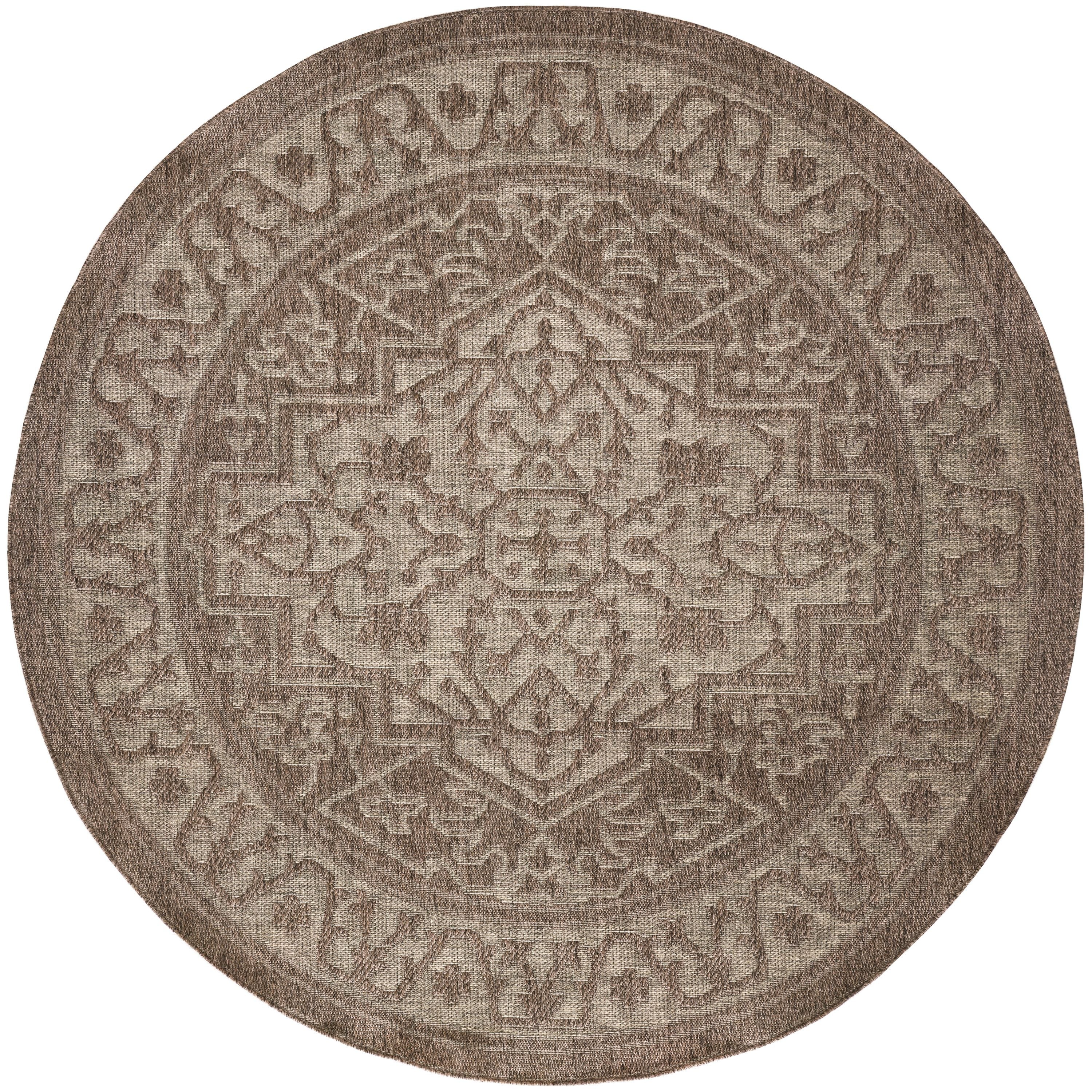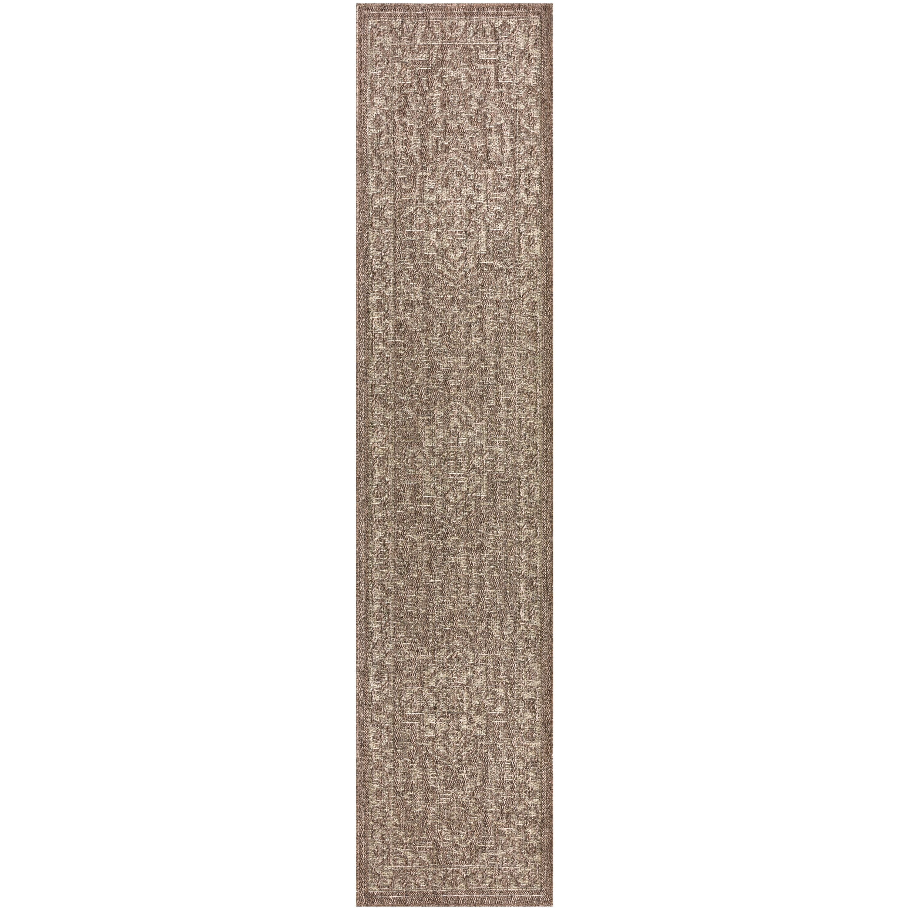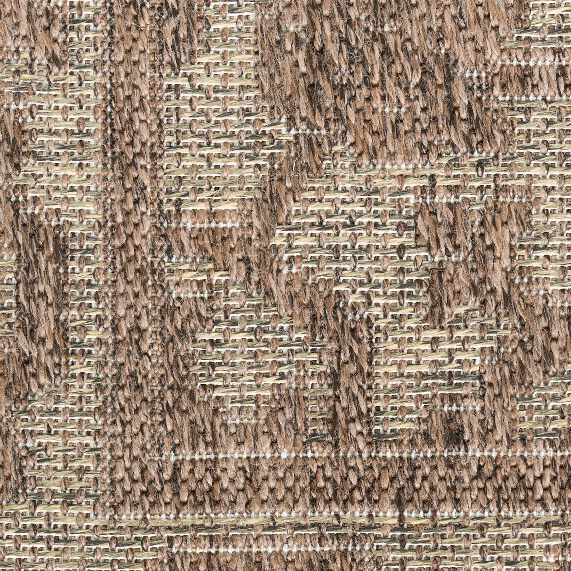 This brown outdoor rug from the Tulum collection brings timeless style with a modern twist to indoor and outdoor spaces alike. The flatweave construction has a substantial feel, while the rich colors and tonal variations create a visually engaging look. This transitional rug is made from polypropylene for easy cleaning, making it ideal for a variety of spaces including the living room, bathroom, balcony, kitchen, and patio.