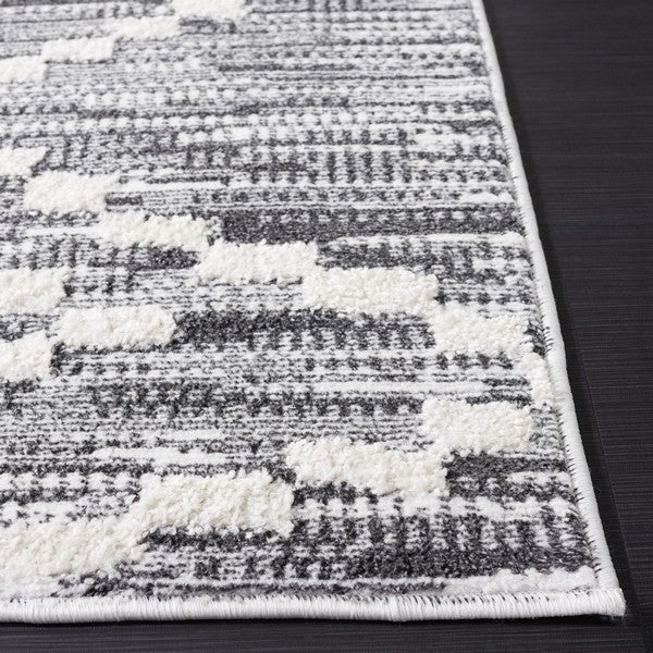 Alamo ALM717H Charcoal Ivory rug, a perfect blend of boho-modern style and timeless elegance. The Alamo Rug Collection showcases expressive designs and captivating colors that effortlessly elevate any space. Crafted using durable synthetic yarns, these flat weave rugs are not only visually stunning but also built to last.