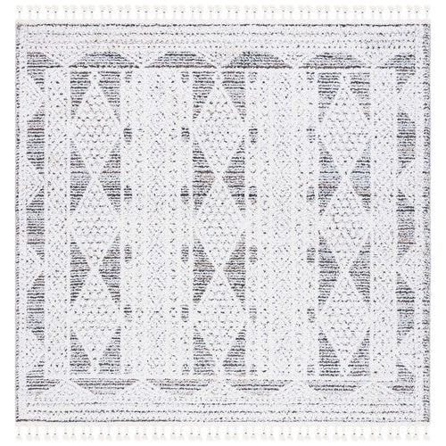 Introduce a touch of global bohemian style to your space with the Chapel CHP404Z Black Ivory rug from SAFAVIEH’s Chapel Collection. These area rugs boast Moroccan diamond patterns in fashionable hues that instantly elevate any room's decor. Crafted with a super soft polyester pile, these rugs not only enhance the visual charm of your space but also provide a cozy feel underfoot. The braided tassels on the edges add a laid-back artistic flair, making this rug a versatile and stylish addition to your home. Upgrade your room's ambiance with this chic and trendy rug that combines both beauty and comfort seamlessly.
