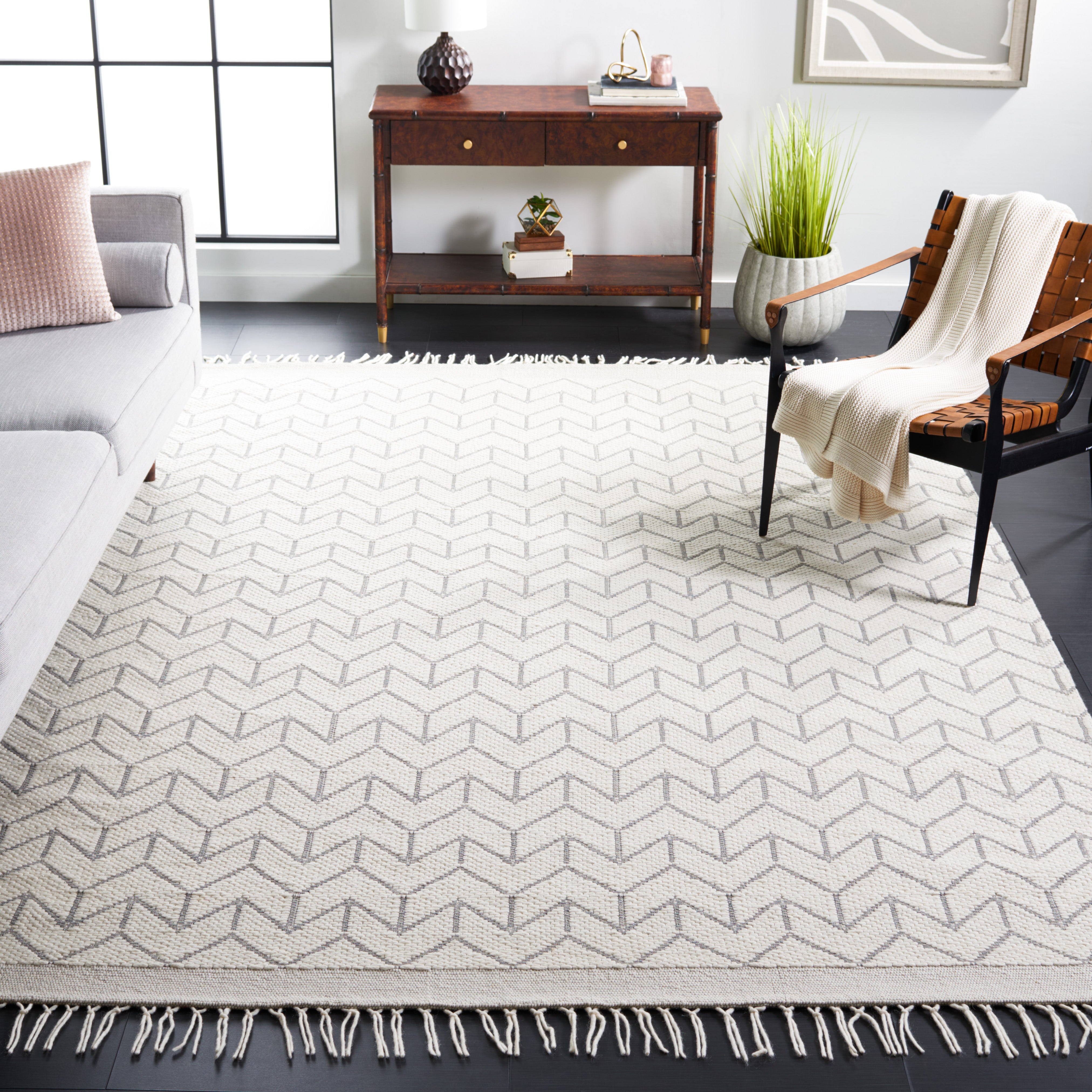 Vermont VRM310A from SAFAVIEH's Vermont Collection, a stunning blend of wool and cotton rugs that offer a tactile experience like no other. Hand-woven in India, these rugs boast organic textures and muted colors that add depth to any space. With a thickness of approximately 0.25 inches, they provide both comfort and style.