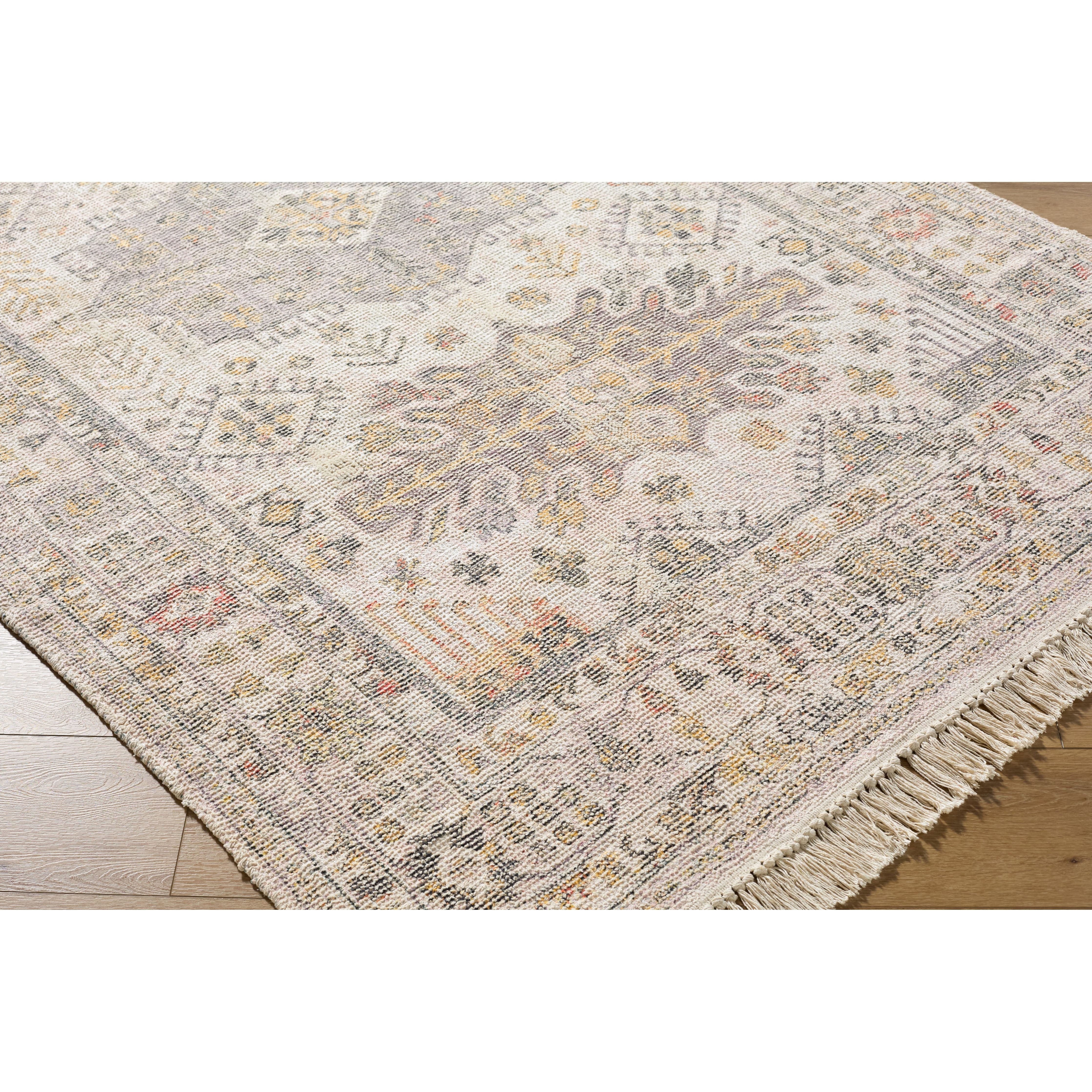 Experience the timeless elegance of the Belfast Handmade Rug, a striking fusion of traditional style and modern comfort. This rug is hand-loomed in India with a meticulous blend of cotton and polyester, creating a low pile surface that feels as luxurious as it looks. Its fringe adds a touch of charm to any room, while its robust construction ensures longevity even in high traffic areas. We recommend using this rug with a pad for an extra layer of cushioning and stability. Caring for this beautiful piece is easy - simply spot clean with a dry cloth to keep it looking its best. Add the Belfast Handmade Rug to your living space today and elevate your interior decor to new heights!