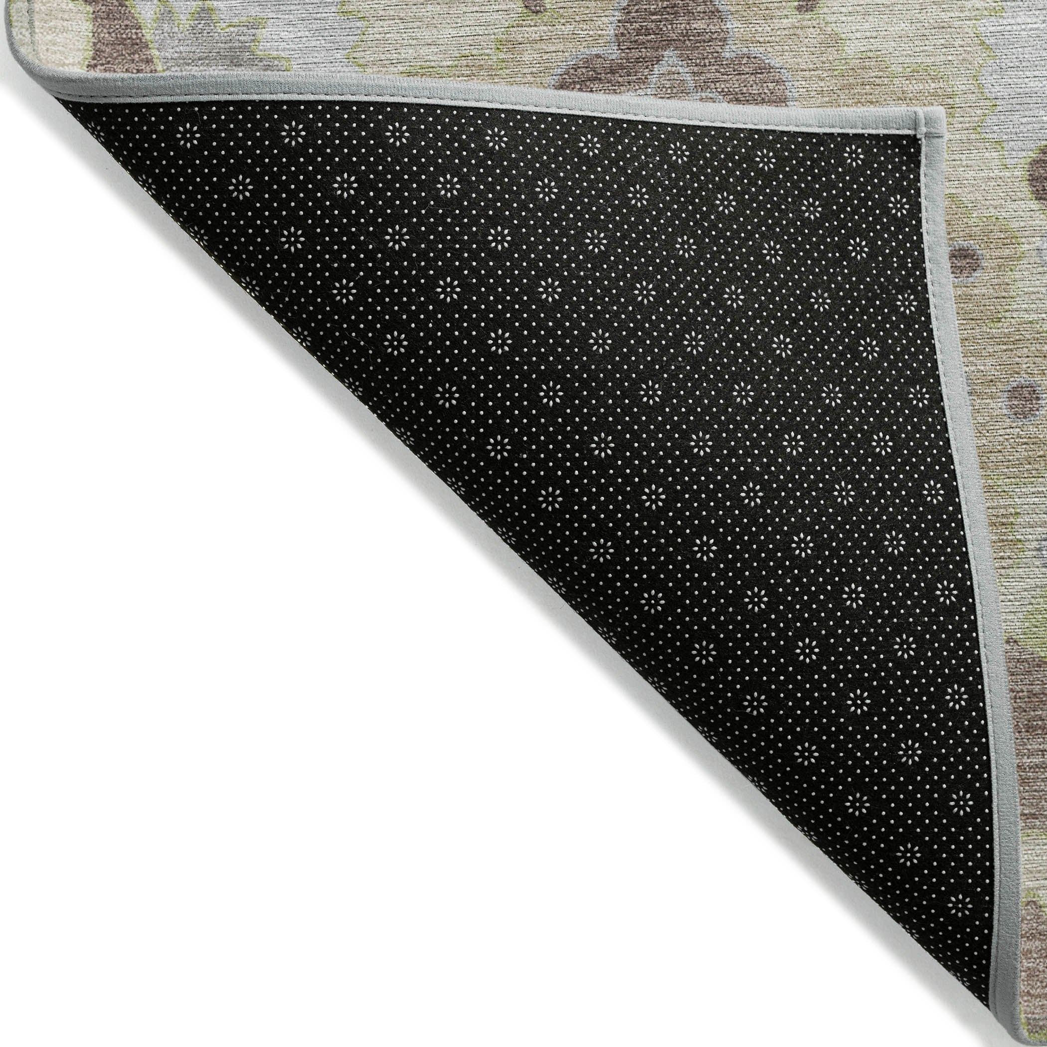 Our elegant area rug showcases large damask medallions in a classic trellis pattern, capturing the essence of traditional oriental design. It enhances any room with its historical charm and sophisticated look. Practicality matches its beauty, as the rug is UV stabilized for use in any location, ultra-thin for convenience, and machine-washable, ensuring it remains a family- and pet-friendly choice.