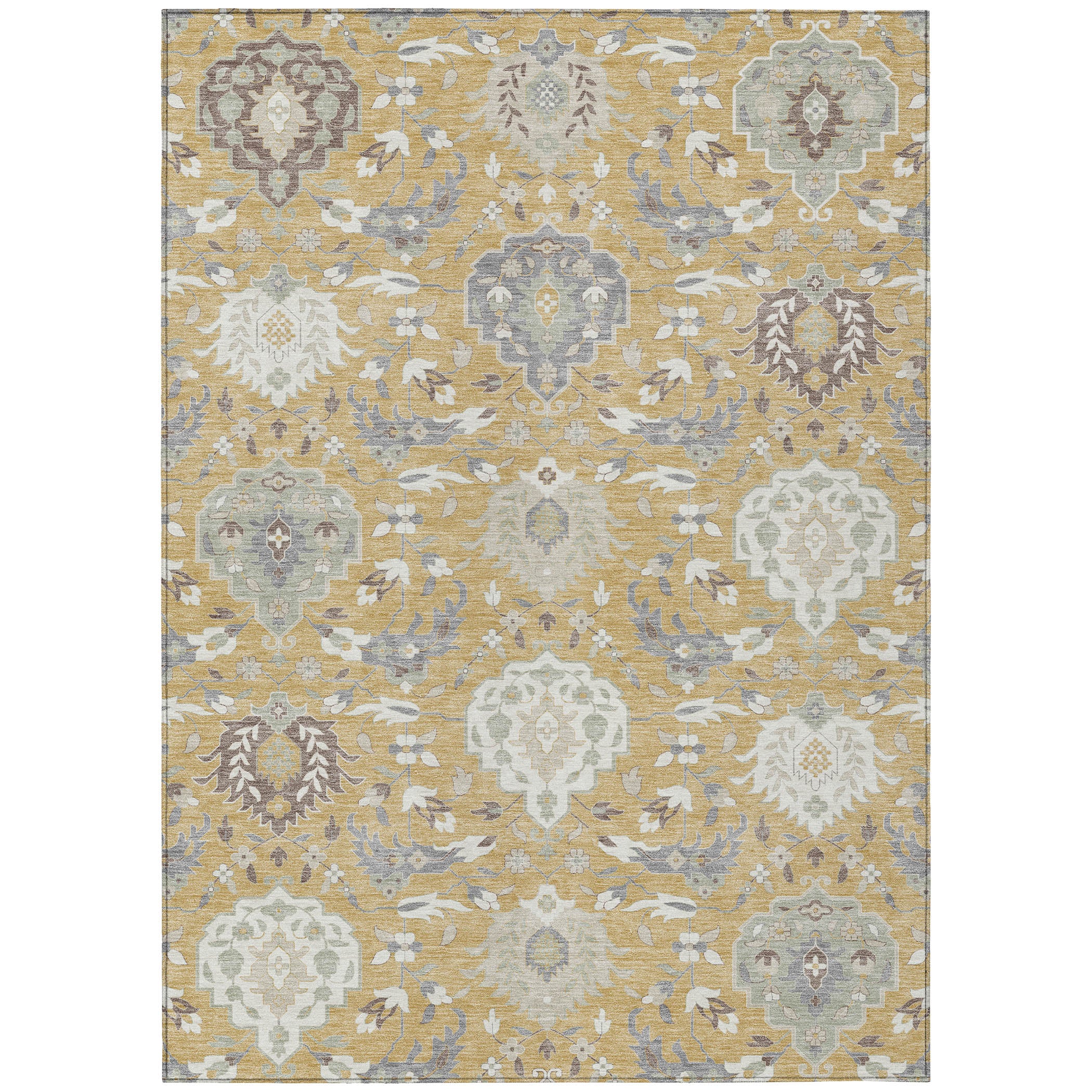 Our area rug features stunning large-scaled damask medallions, creating a sophisticated centerpiece in any traditional decor. The damask design not only adds visual depth but also a touch of timeless elegance. Perfectly suited for both indoor and outdoor use thanks to its UV stabilization, the rugs ultra-thin design ensures it fits smoothly under furniture. It’s also machine-washable, making maintenance a breeze for families with pets.