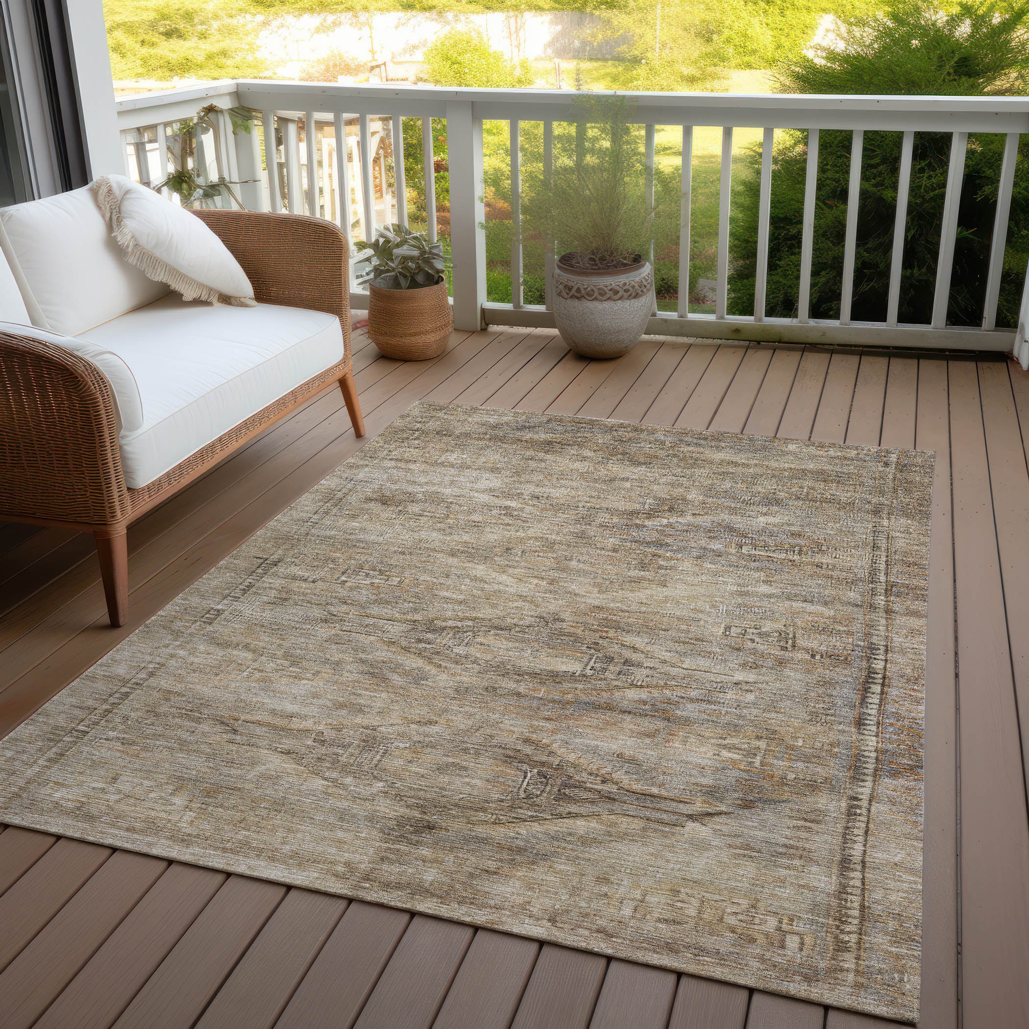 With a vintage border pattern and broken medallions in the center, this traditional rug provides a global design that enriches your home with classic elegance. The global pattern introduces detailed craftsmanship and timeless beauty to your decor. UV stabilized for long-lasting use, this rug is ideal for both indoor and outdoor environments, preserving its refined look over time. The ultra-thin profile ensures seamless integration into your space, and it's machine-washable for easy care. Perfect for family and pet-friendly settings, this rug blends style with practicality.