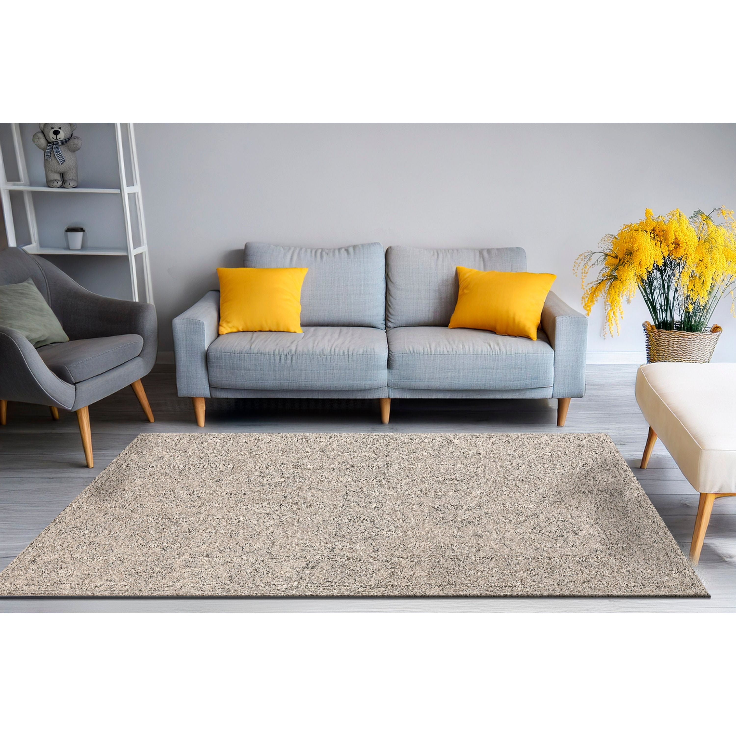 Daisy rugs stand out with their unique hand-tufted construction in India, reflecting the skillful work of artisans dedicated to precision and quality. This collection seamlessly combines contemporary and traditional floral designs, enriched by bold colors on a neutral base. The result is a versatile aesthetic that suits diverse interior styles. Crafted from wool, Daisy rugs not only provide a robust feel underfoot but also introduce a touch of luxury and comfort. The wool construction contributes to an inviting atmosphere, breathing a fresh and revitalizing ambiance into any space.