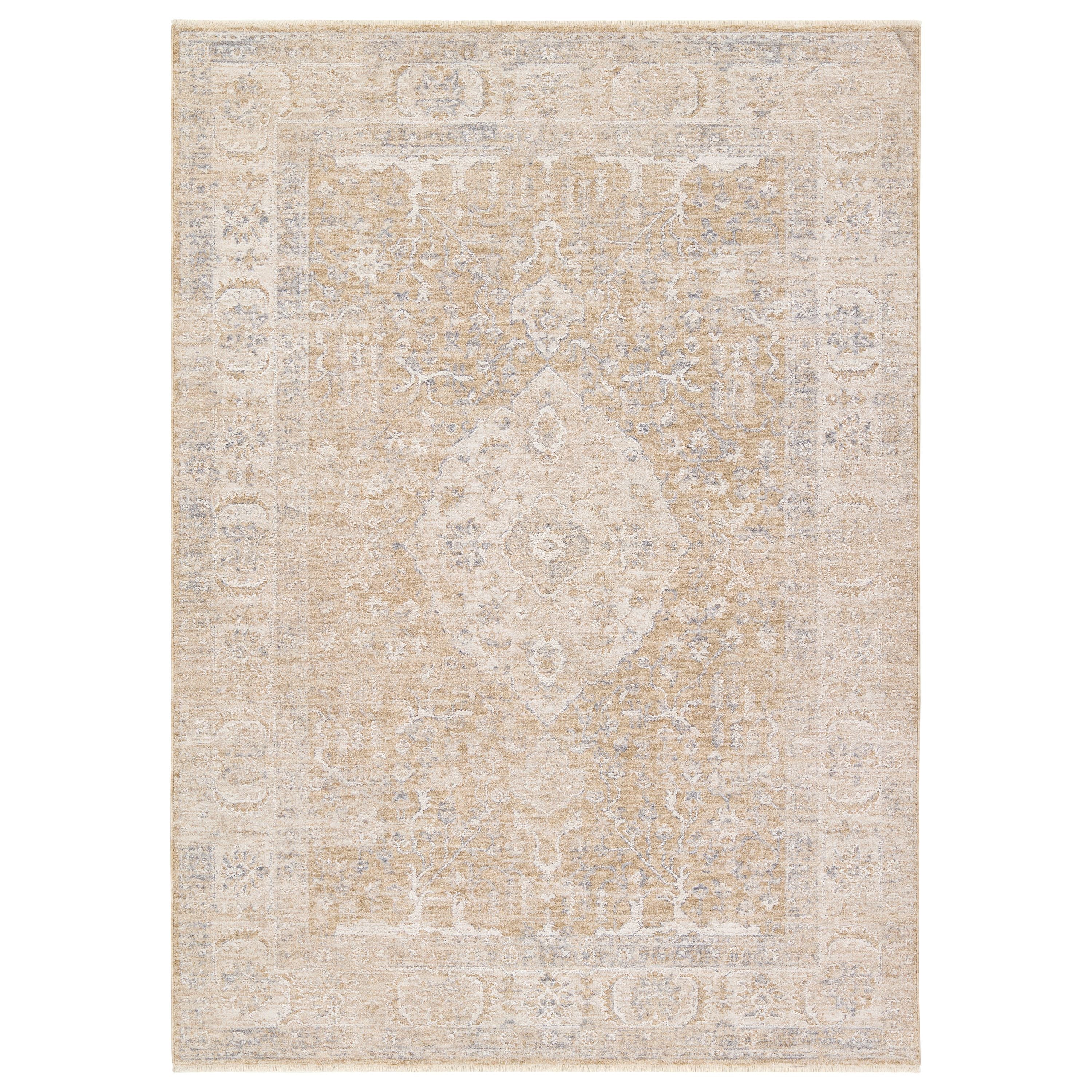 Elegant and classic, the Aslan design presents a largely sought-after Tabriz-inspired pattern in a durable, powerloomed construction. The beautiful yellow and gold medallion pattern adds warmth to any medium-traffic indoor setting. Space-dyed polyester introduces subtle, intriguing color variation, while the cross-woven fringe detail adds a touch of texture and visual interest. With a soft, velvety feel that’s easy to care for, here’s refined living made easy.