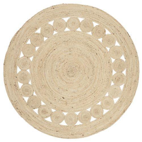 Elevate the charm of your kitchen nook or dining area with our Natural Fiber NF364B Ivory rug. This round rug is crafted from 100% softened jute fibers by skilled artisans, ensuring a unique and handmade touch to your space. The rich texture and decorative appeal make it a perfect addition to create a relaxed atmosphere in your home. With an approximate thickness of 0.31 inches, this rug adds a cozy feel under a petite dining table.