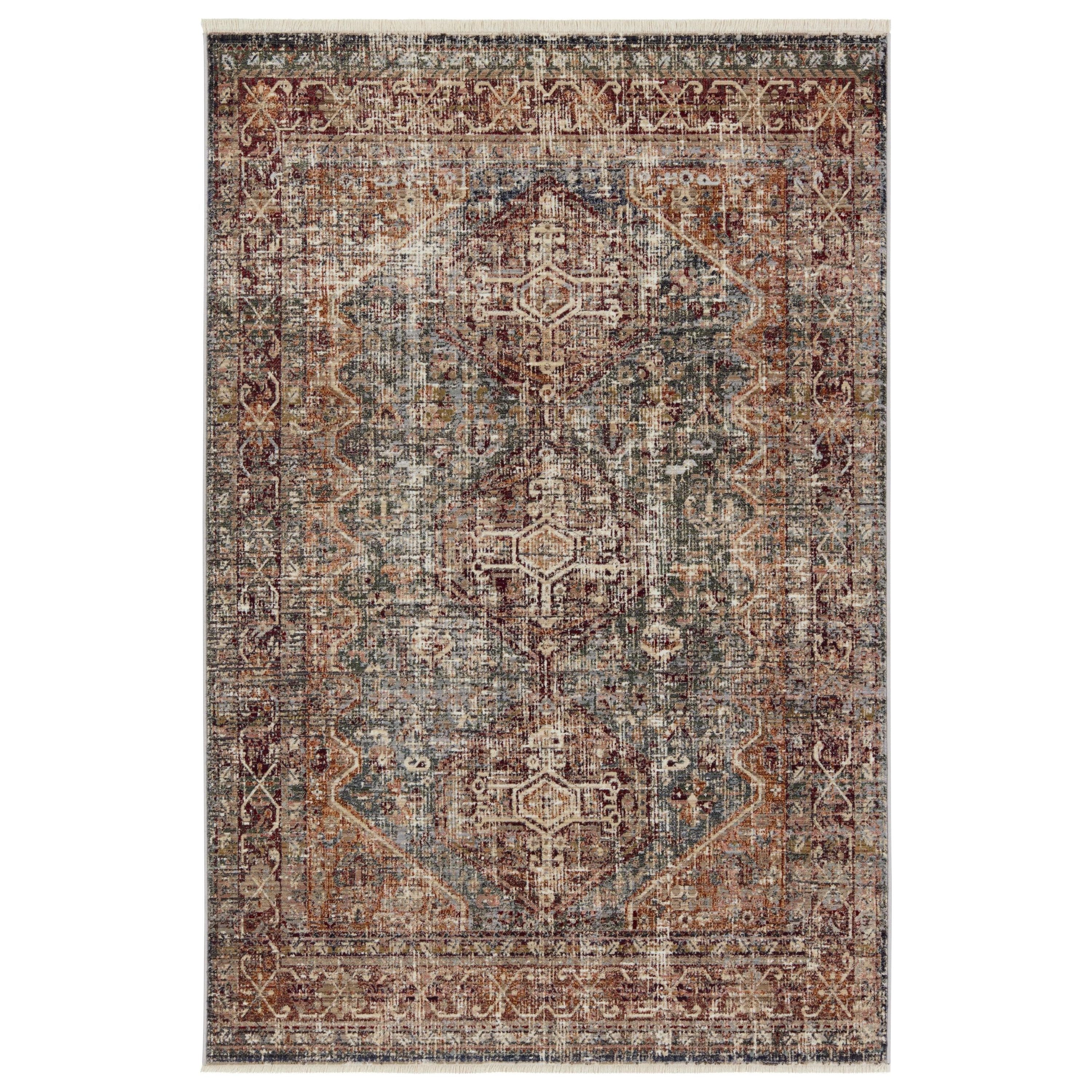 Inspired by the vintage perfection of sun-bathed Turkish designs, the Zefira collection showcases detailed traditional motifs that have been updated with on-trend, saturated colorways. The Zakaria rug boasts a distressed medallion motif in moody tones of red, blue, cream, taupe, gray, tan, and green. This power-loomed rug features cotton fringe detailing, a natural result of weft yarns, that echoes hand-knotted construction and adds brilliant texture to the plush, durable polypropylene pile.