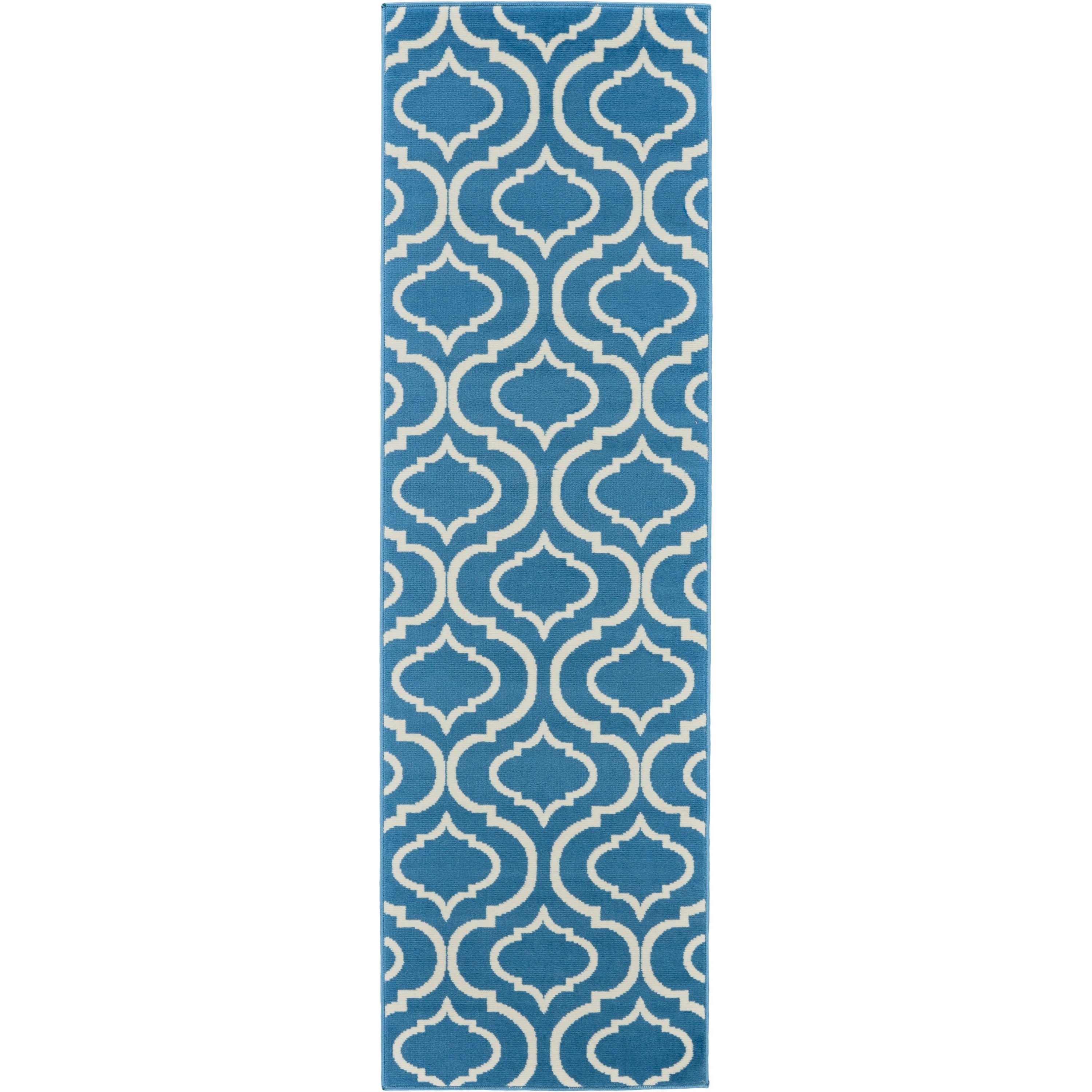 Introduce a touch of Moroccan flair with this intriguing Jubilant Collection area rug, featuring a lantern trellis pattern. Exotic yet versatile in ivory on blue, with easy-care fibers in a sleek, low-pile construction that brings life and energy to any room in the home.