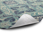 "First off, I love this rug .. the colours and the texture of the rug turned out to be exactly what I was hoping for - a very neutral-looking moss green and ivory background with a few tiny pale blue accents. Love the look!"