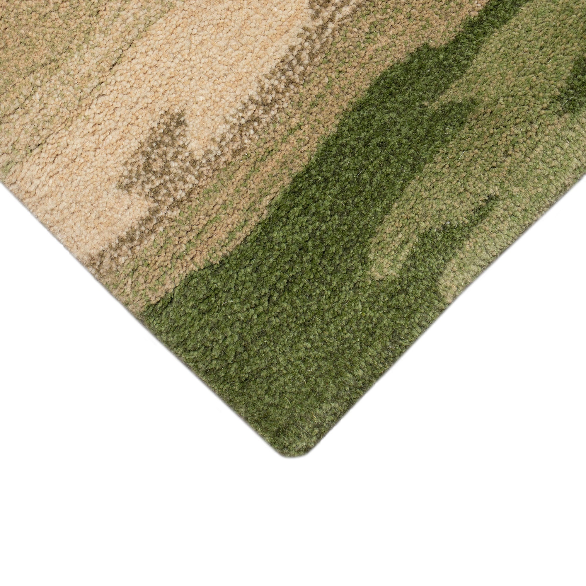 Tivoli Nom De Plume Green area rug, a stunning addition to your home decor. This contemporary piece showcases a cloud-like abstract pattern in shades of green and beige, set against a neutral backdrop. The vibrant design adds a touch of elegance to any indoor space, transforming it into a tranquil oasis. Made in India from premium 100% wool, the Tivoli Collection is hand tufted to achieve intricate tonal designs with a superior finish.