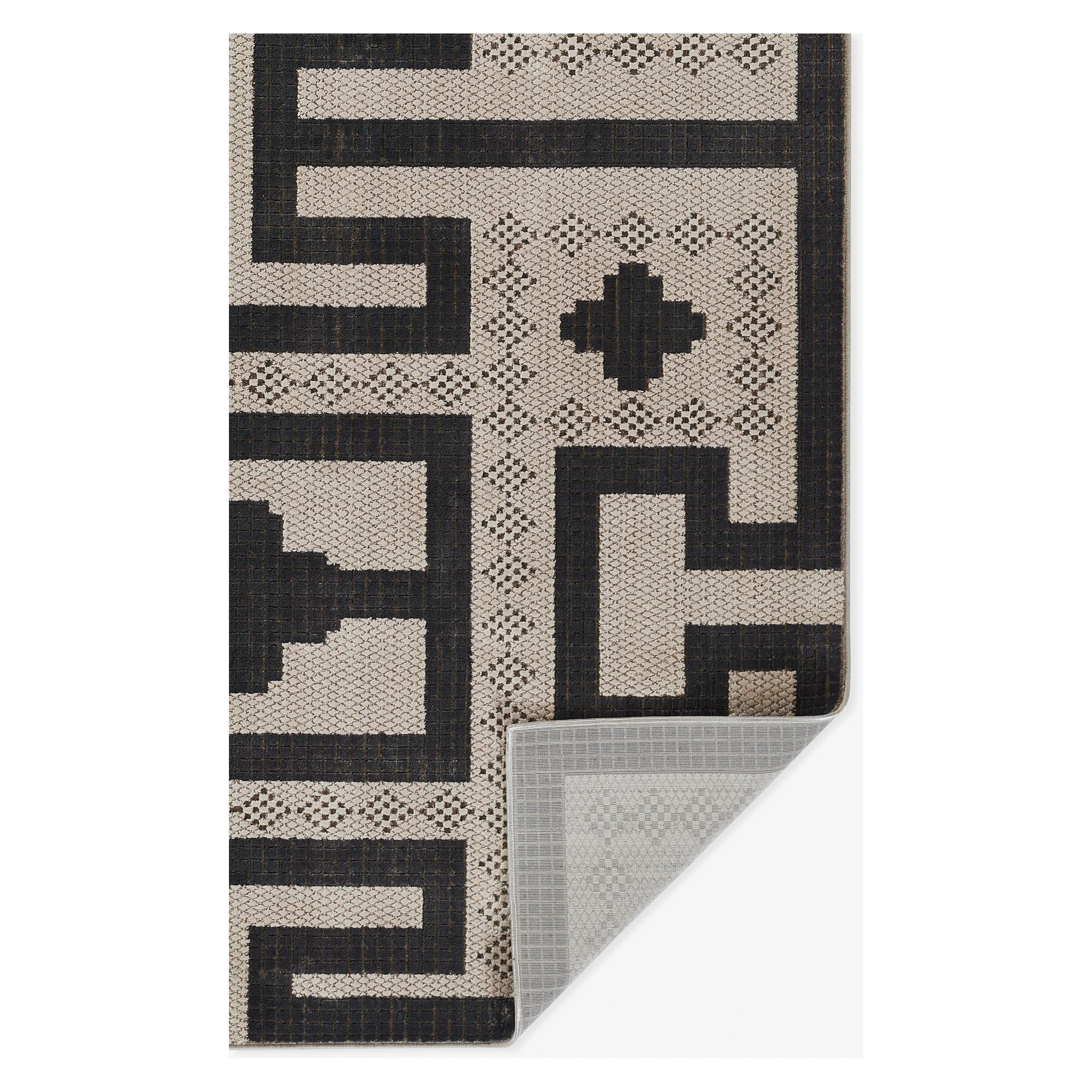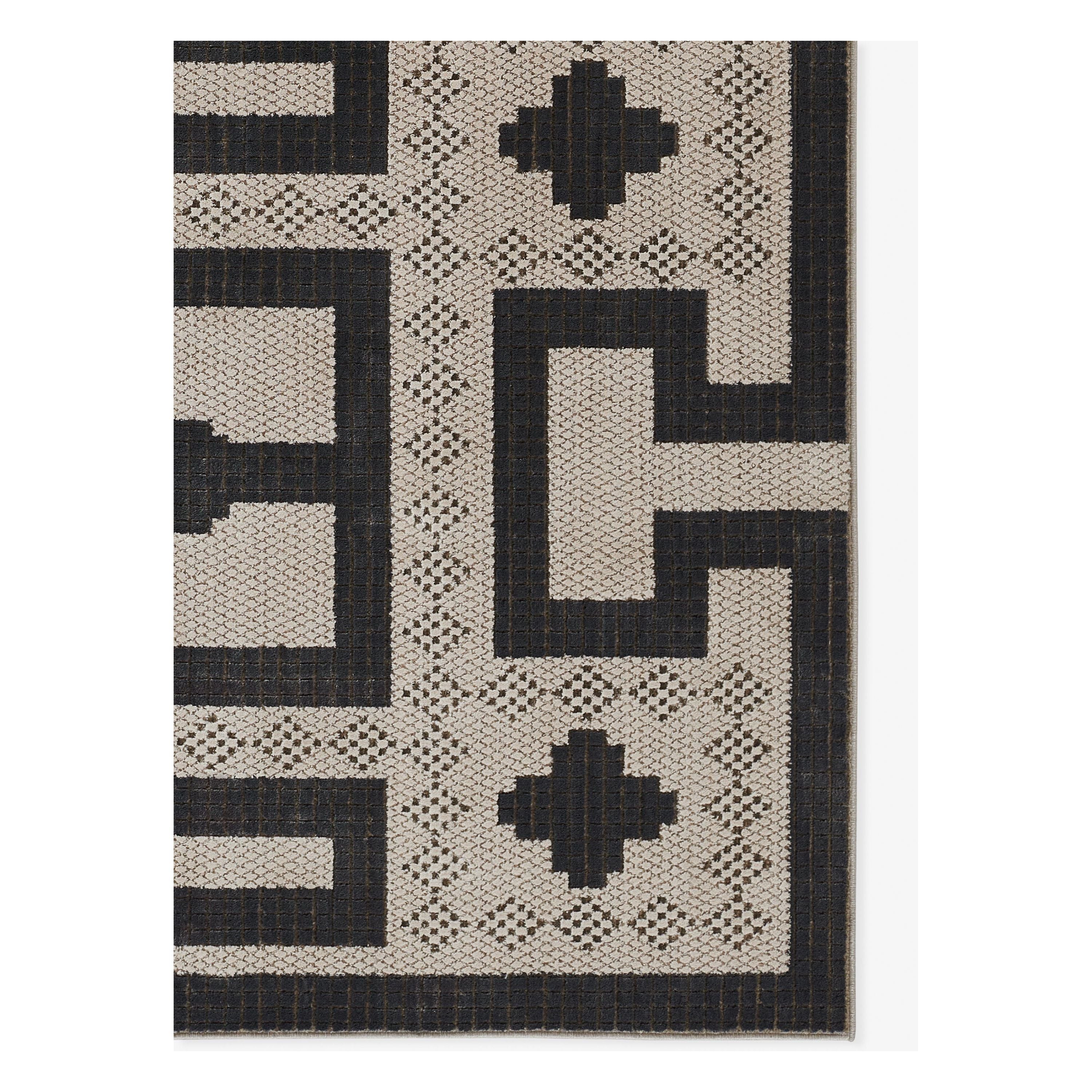 Noho No 08 Ivory rug, a stunning addition to our Noho Collection that effortlessly combines chic sophistication with striking patterns. This black and white masterpiece exudes modern elegance and Moroccan influence, making it a true work of art for your home decor. The bold design and micro-pattern techniques create a dynamic look that will instantly elevate any room.