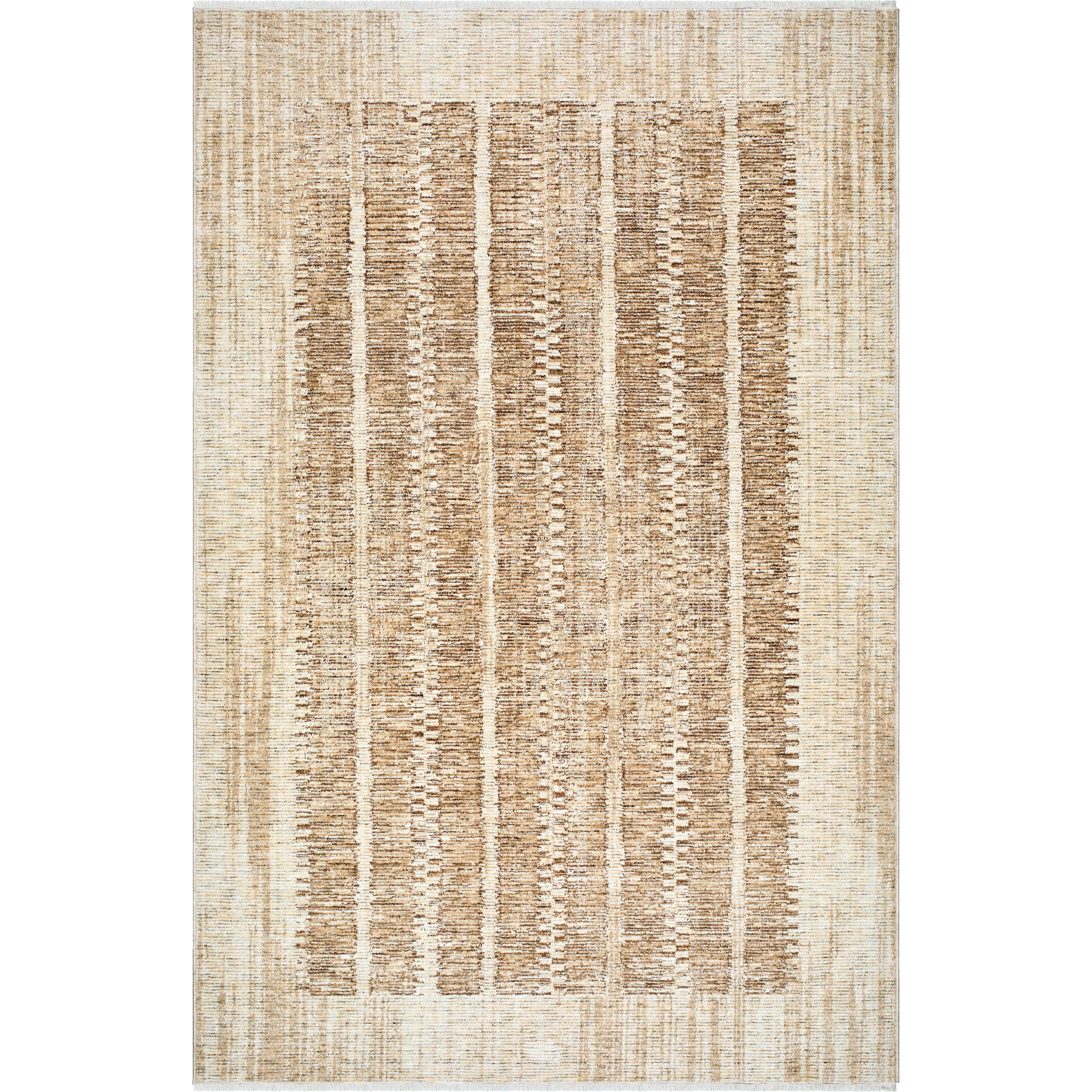 Usonia Uso 2302, a contemporary modern area rug created through a special collaboration between the Frank Lloyd Wright Foundation and Surya. This exquisite piece from the Usonia Collection showcases a harmonious blend of warm white, tan, and brown tones, adding a touch of sophistication to any space in your home.