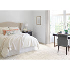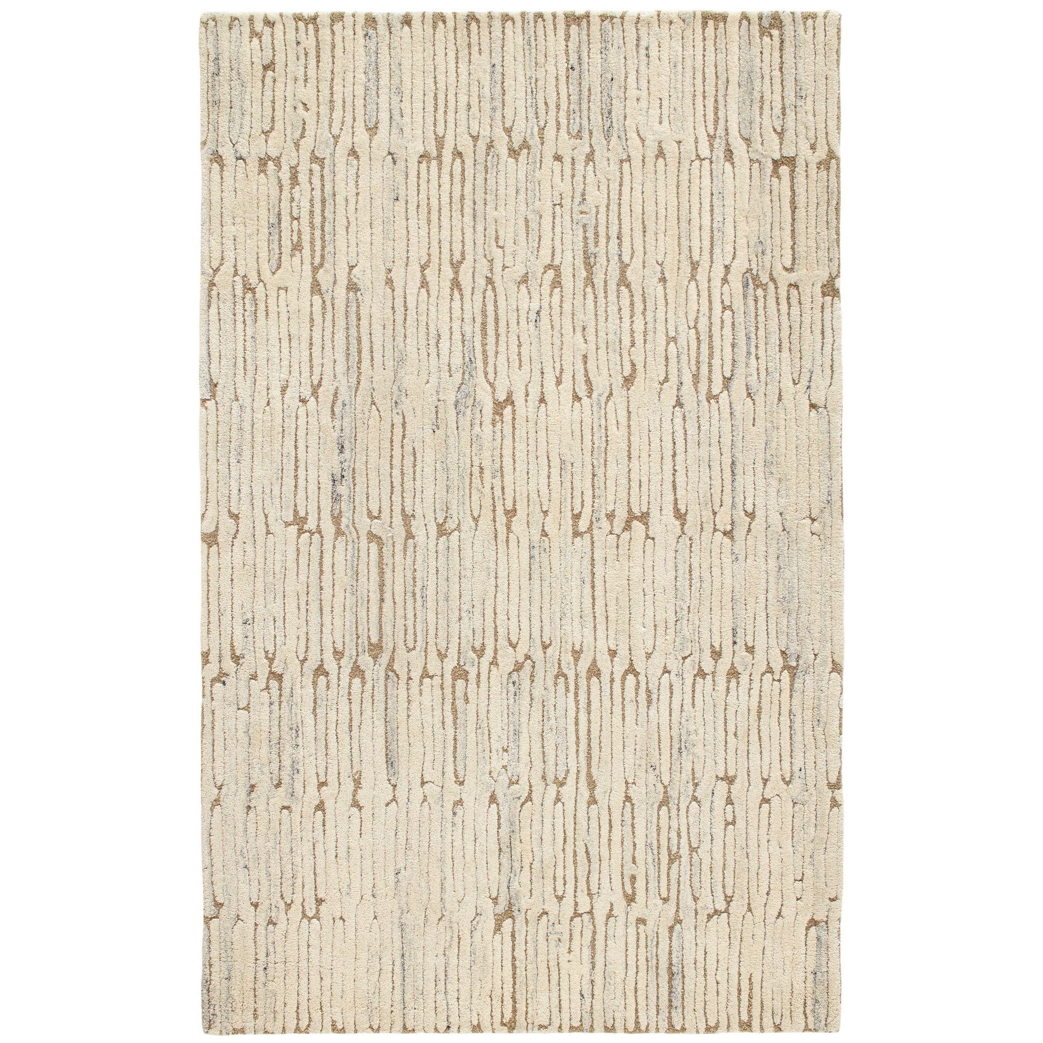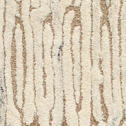 Luxuriously plush, this wool rug's subtle beauty suggests eroded coastal cliffs, whose substrate layers chronicle the passage of time. The pattern is additionally emphasized by higher sheared tufts that contrast in color, sheen, and texture with dense and low looped stripes. A natural undyed fleece pile enhances the finely observed irregular striations. With modern and traditional elements, this sophisticated hand-knotted wool rug demonstrates unique textures found in nature. Offered in a sophisticated palette of chalky tones and mineral-rich neutrals. Designed for us by Marie Flanigan, an award-winning interior designer, to reflect her signature style of timeless elegance and innovative simplicity.