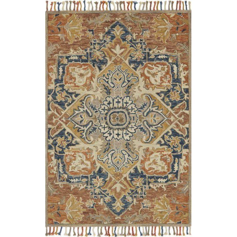 exquisite Zharah Zr 10 Rust Blue rug, crafted by talented artisans using 100% wool. This stunning piece from the Zharah Collection features vibrant colors and eye-catching patterns that are sure to make a bold statement in any room. The intricate design and high-quality materials of this rug set it apart, adding a touch of luxury to your space.