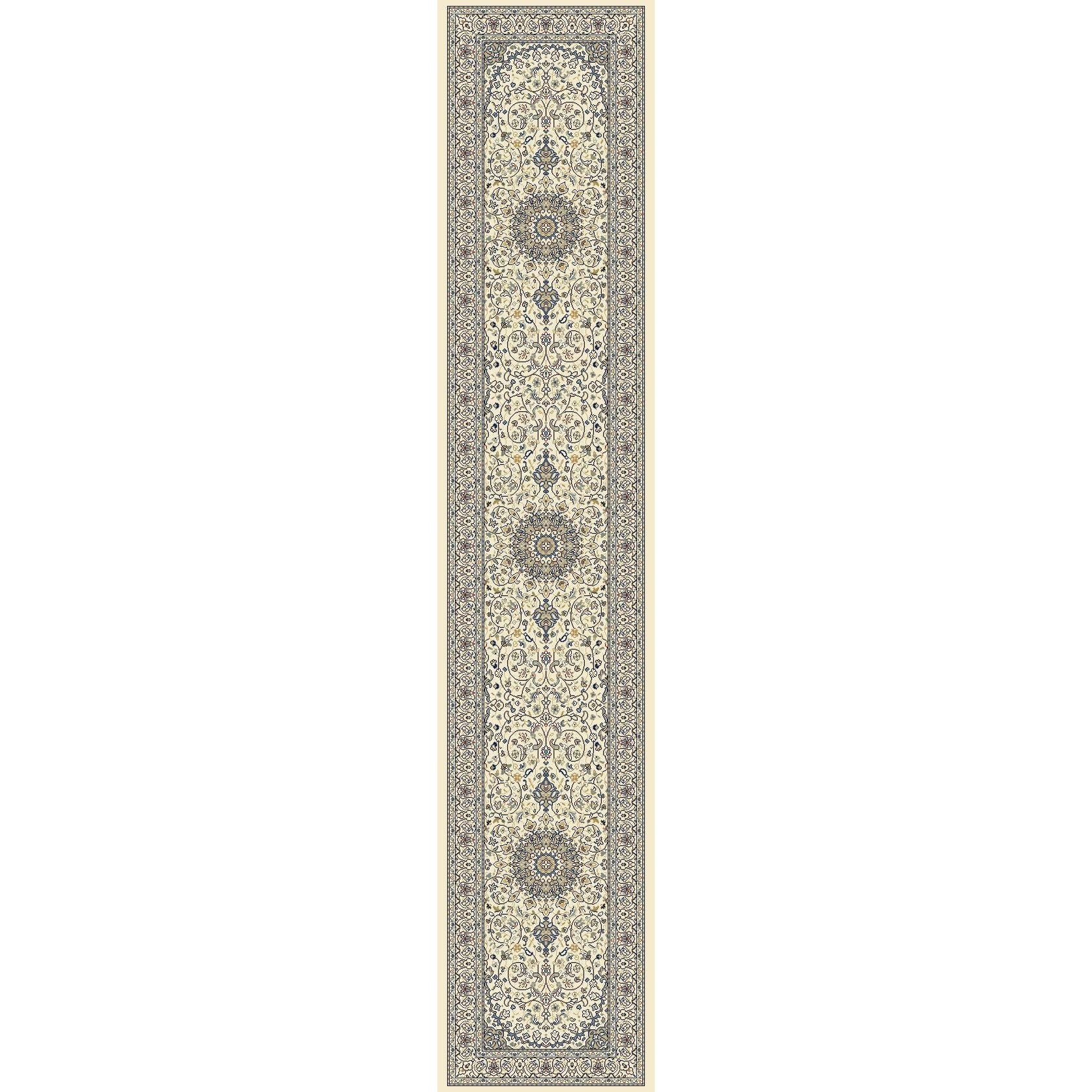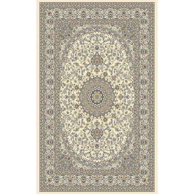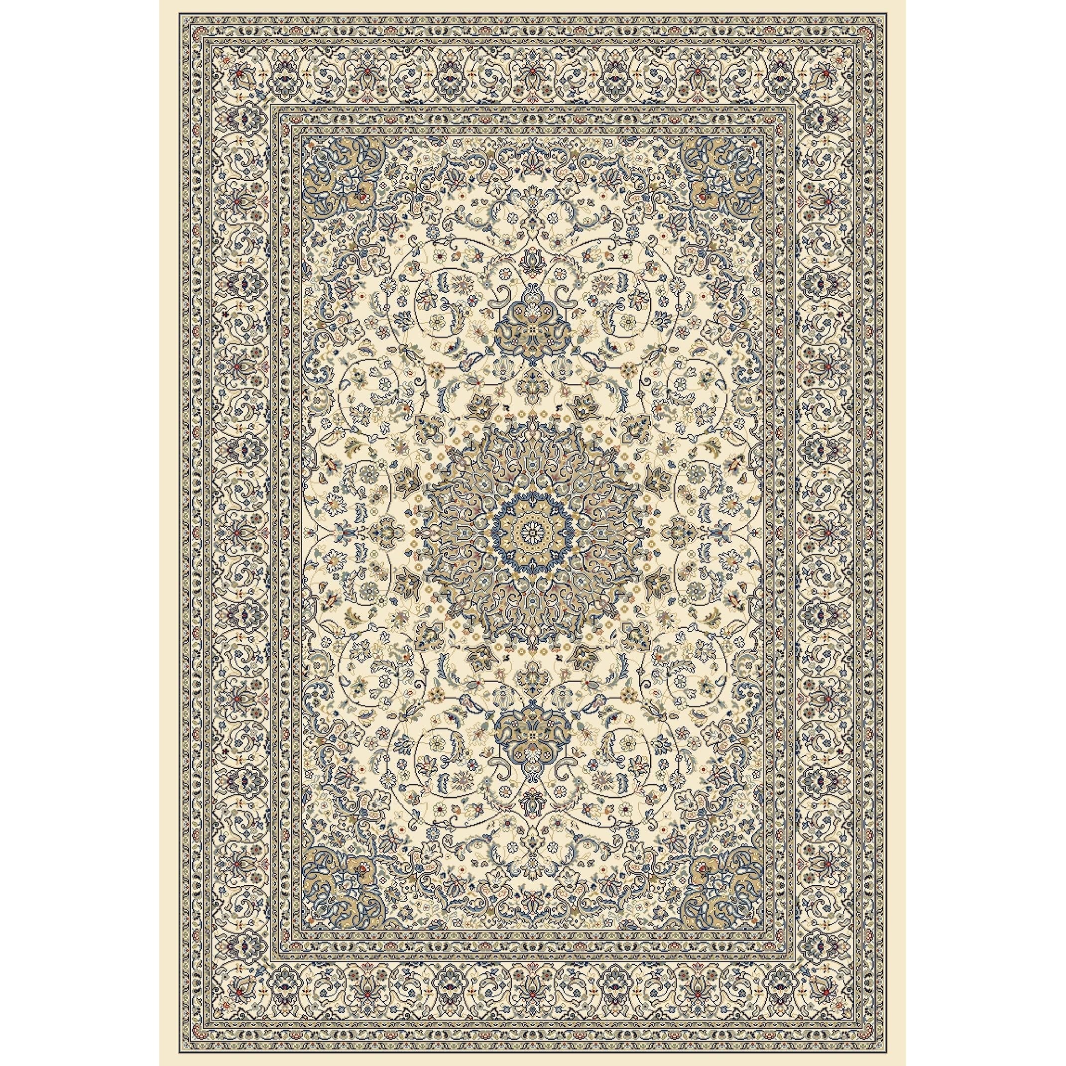 captivating Ancient Garden 57119 Ivory Ivory rug, a blend of timeless Persian motifs with a contemporary twist. This exquisite piece features a rich color scheme of antique hues and intricate patterns that exude elegance. Crafted using Decolan, a premium heat-set polypropylene that mimics the luxurious feel of wool, Ancient Garden offers the look of handmade craftsmanship in a machine-made rug.