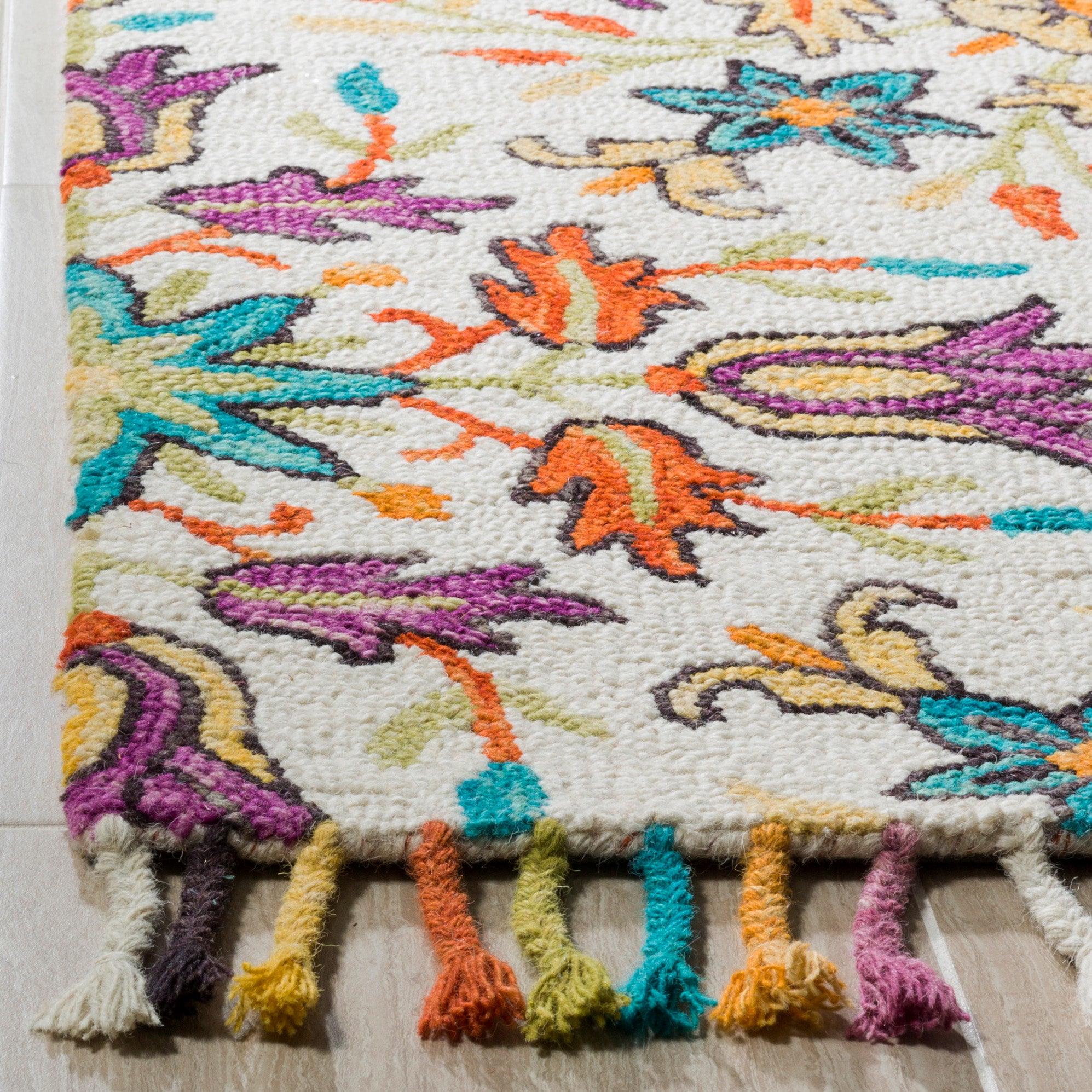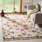 Aspen APN115A Ivory Purple rug, a stunning addition to any modern living space. Inspired by Mondrian's geometric art and mid-century pop art, these Safavieh Aspen shag rugs bring a bold and contemporary touch to your home decor. Crafted with a mix of wool, hemp, polyester, and cotton pile, these handmade carpets promise a luxurious feel underfoot. The rich texture adds depth to any room, creating a cozy and stylish ambiance.