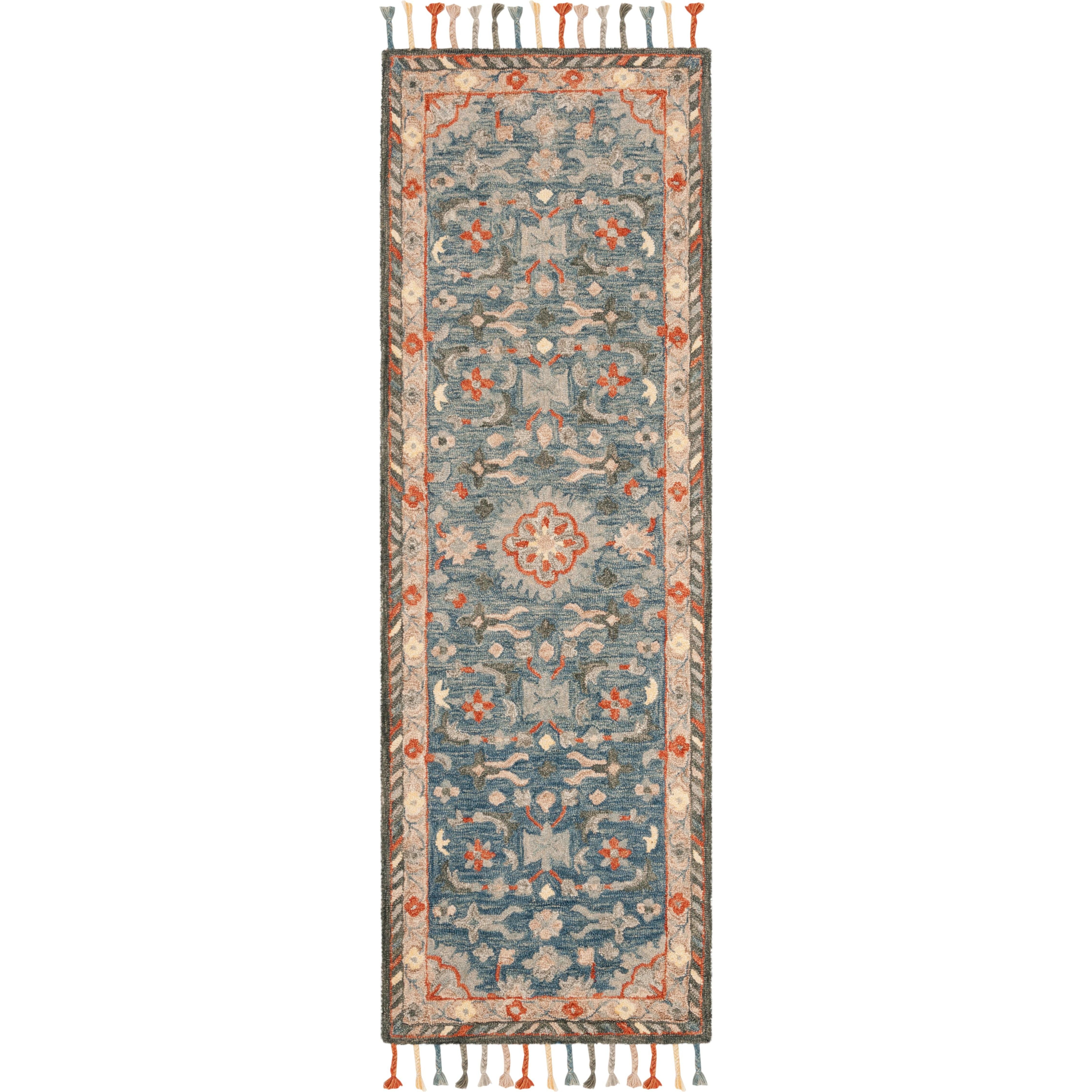 Aspen APN123A Blue Rust rug from the Aspen Collection, showcasing a modern twist on rustic-chic aesthetics. This collection beautifully blends tribal-art inspired patterns with a soothing color palette, creating a simple yet captivating look for your home decor. Crafted from pure wool in a low loop pile construction, the Aspen rug offers both style and comfort underfoot, making it an ideal choice for any classy-casual living space with its approximate 0.5-inch thickness.