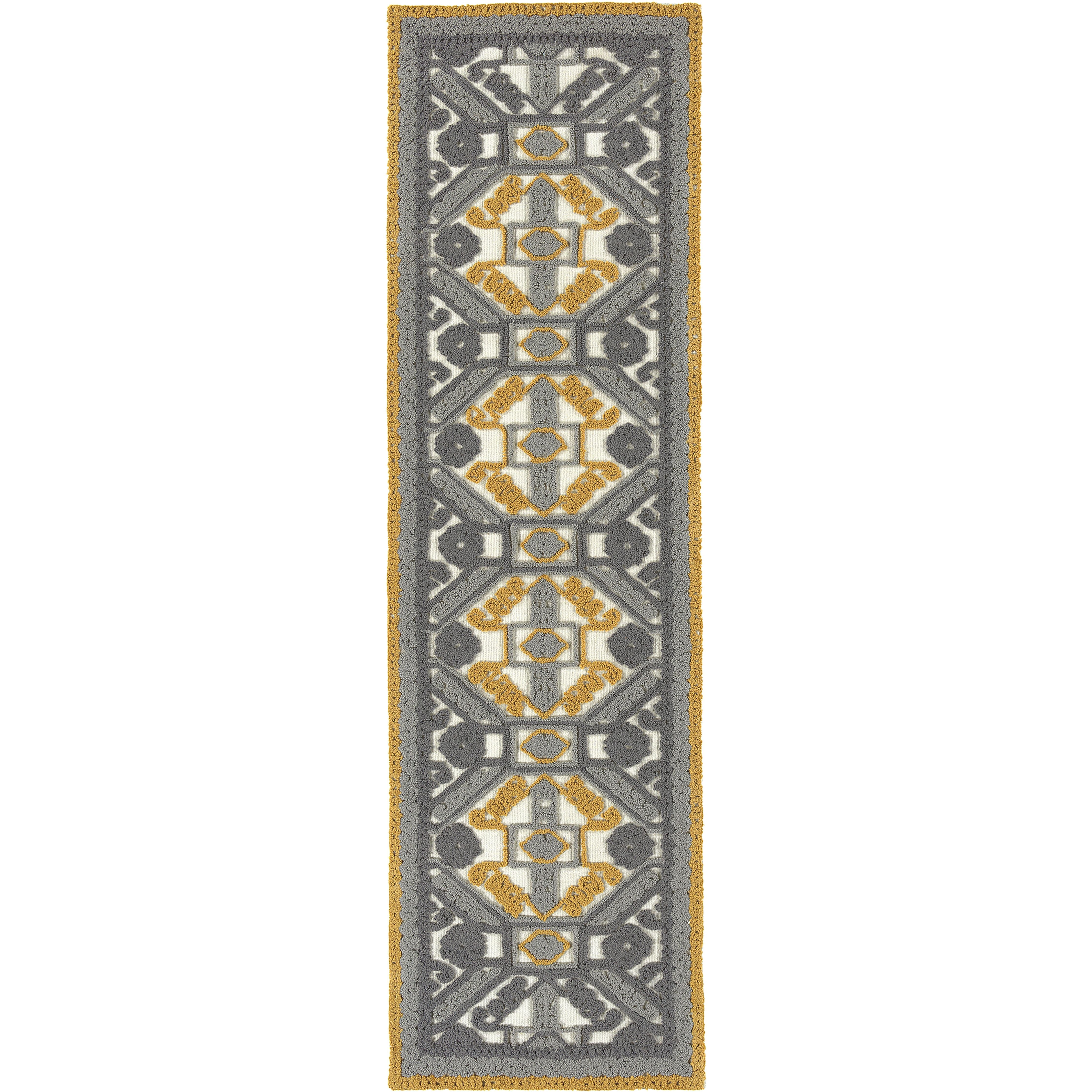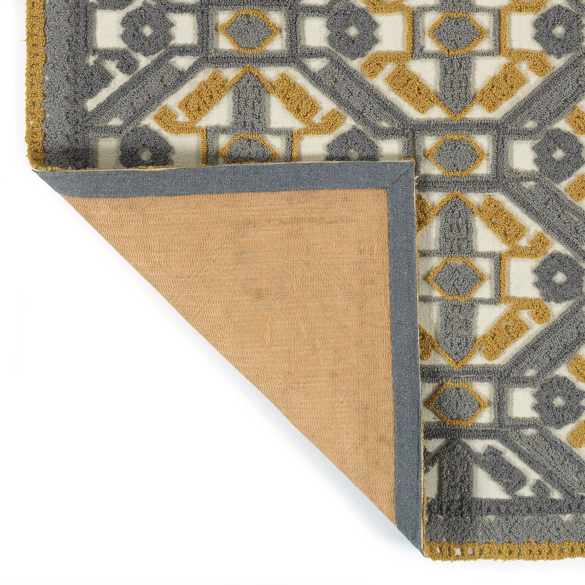Ayrlies Garden AGC03 75 Grey rug, a stunning piece that brings dramatic texture to any space. Handmade in India from 100% PET polyester, this collection features a unique blend of low pile base and high pile details, creating beautiful and exciting designs. The color palette includes brights and neutrals, making it versatile for both indoor and outdoor use.