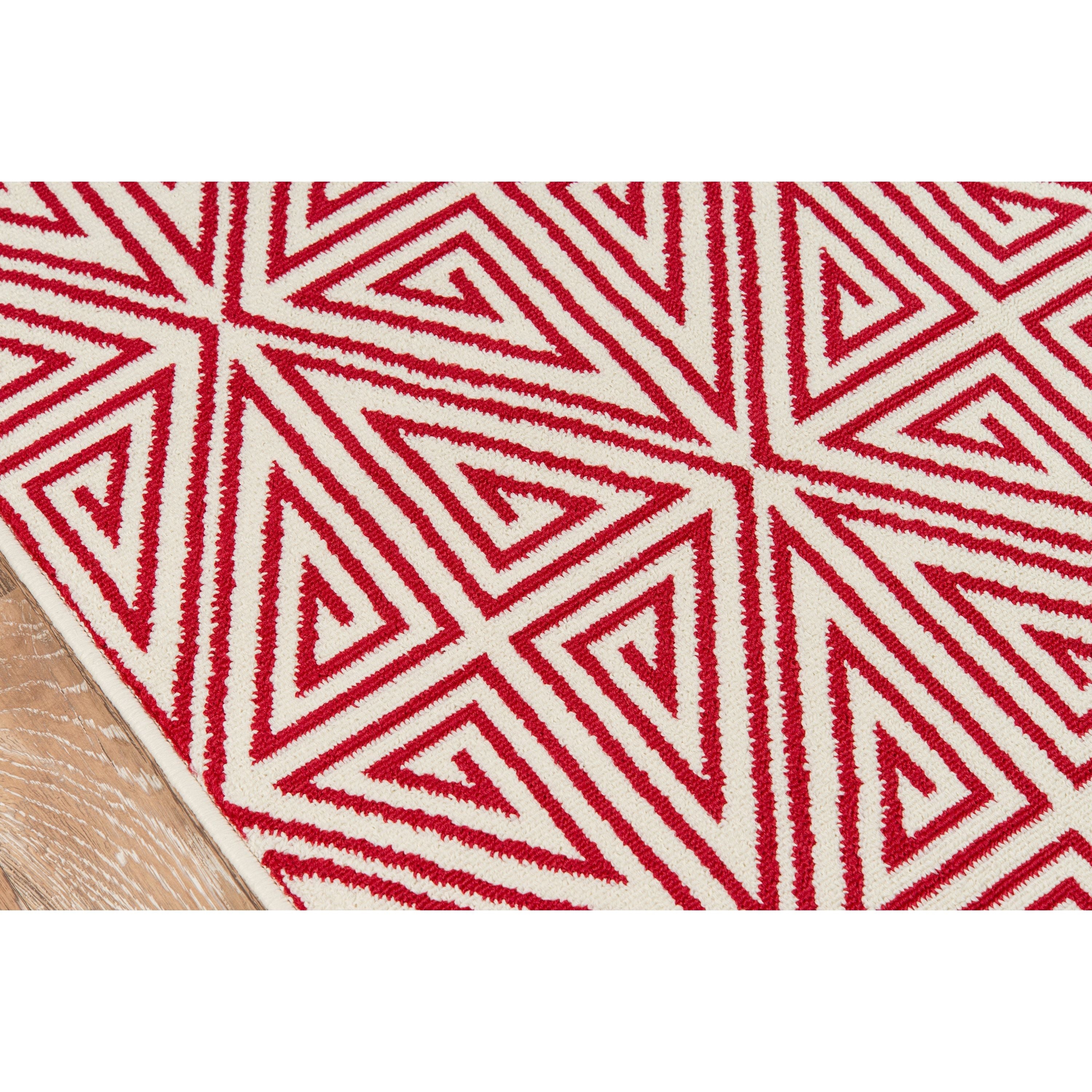 Baja Baj 4 Red, a versatile indoor/outdoor area rug designed to elevate any space with its elegant yet durable construction. This all-weather rug features a captivating mix of stripes, diamonds, trellis, and arabesque patterns combined with nautical elements like ropes, anchors, and waves. Perfect for patios, porches, and pool decks, this rug seamlessly blends style and functionality.