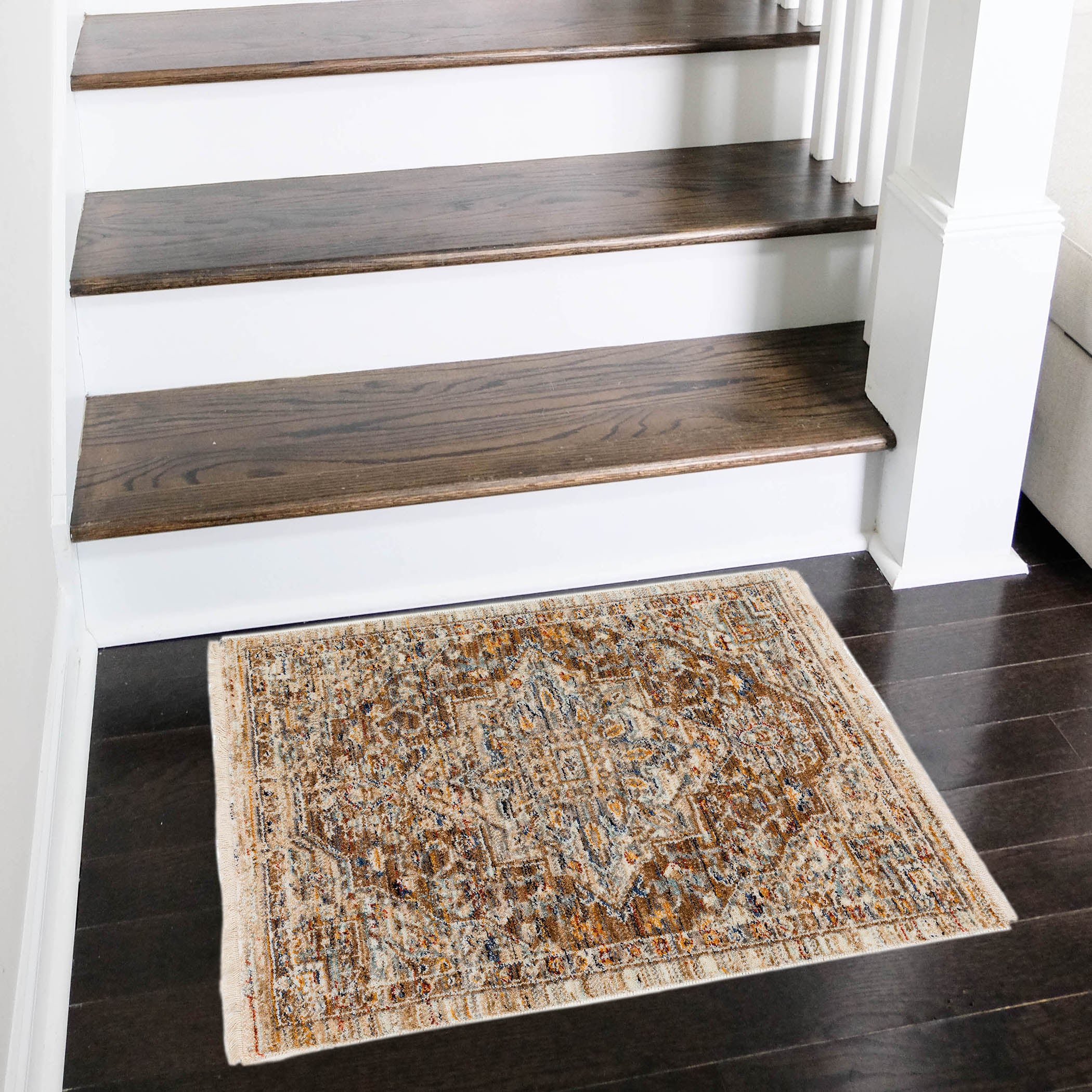 Bergama BE9 Mocha rug, a timeless piece that effortlessly combines classic, casual, and traditional styles for a sophisticated yet comfortable look. The short fringe detail adds a touch of understated elegance while making maintenance a breeze. The warm color palette creates a welcoming ambiance in any space, adding an inviting and cozy atmosphere to your home. Crafted with a polyester pile, this rug offers both luxurious softness underfoot and long-lasting durability. Elevate your living space with this perfect fusion of classic design, practicality, and warm hues that complement any decor seamlessly. Make a stylish and functional investment with the Bergama BE9 Mocha rug today.