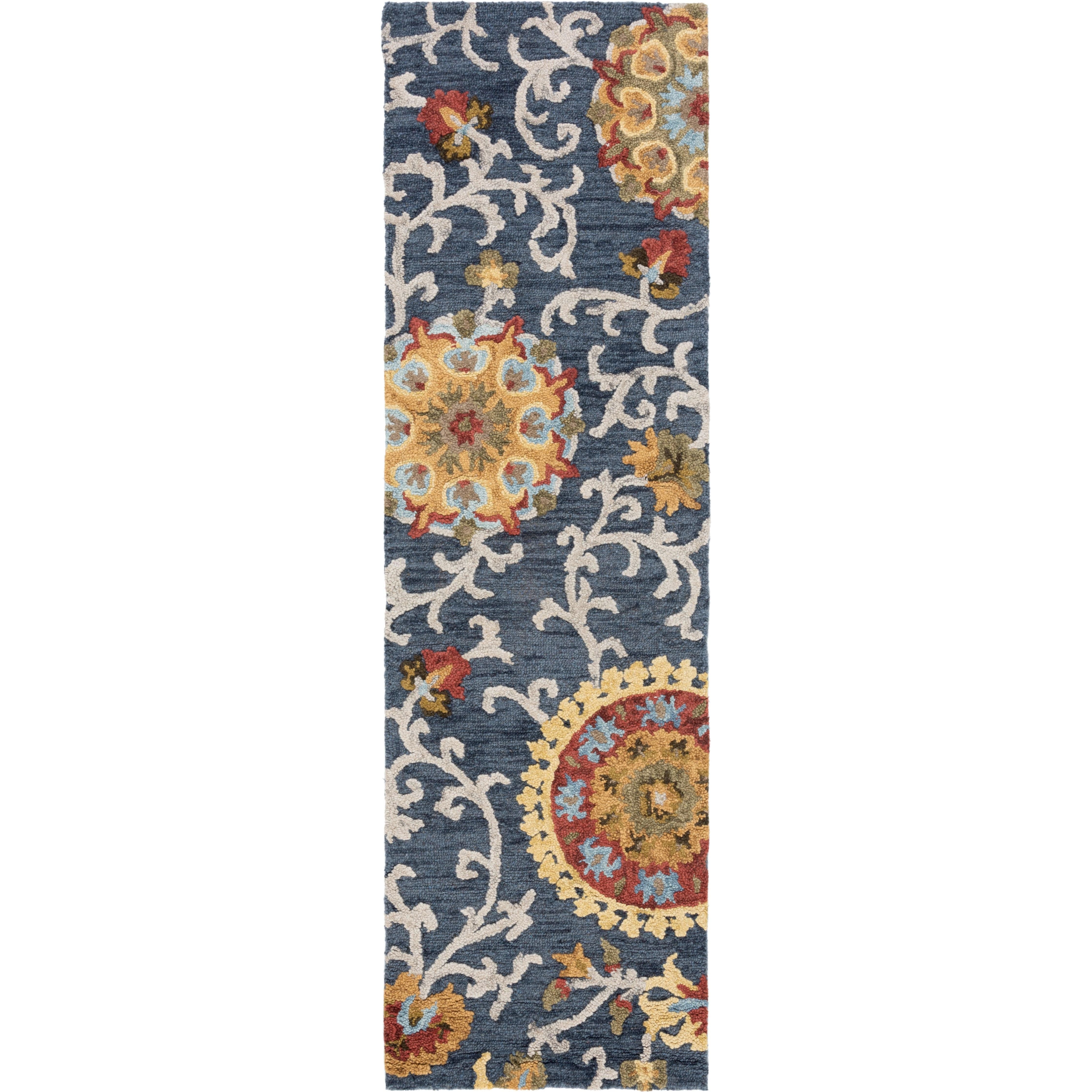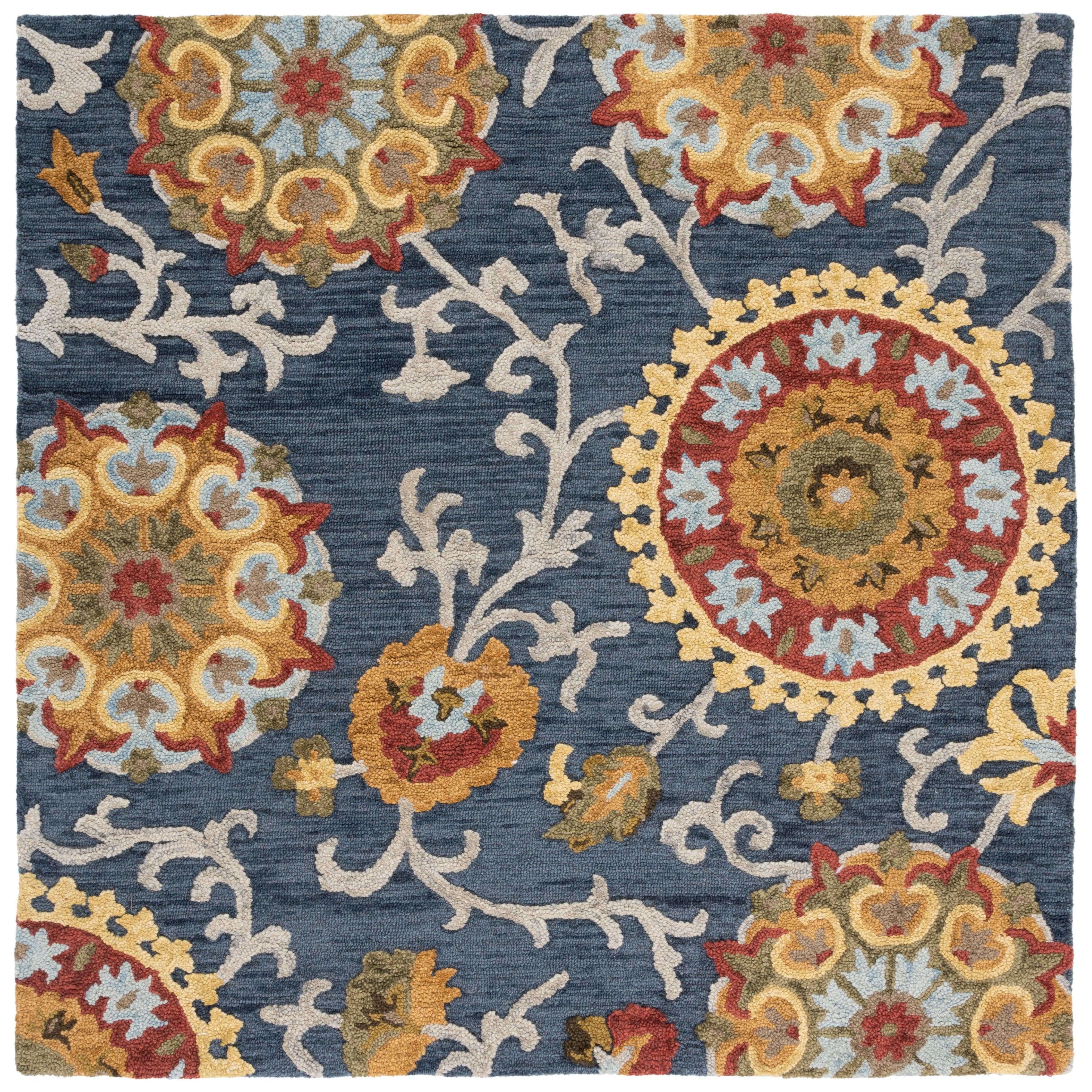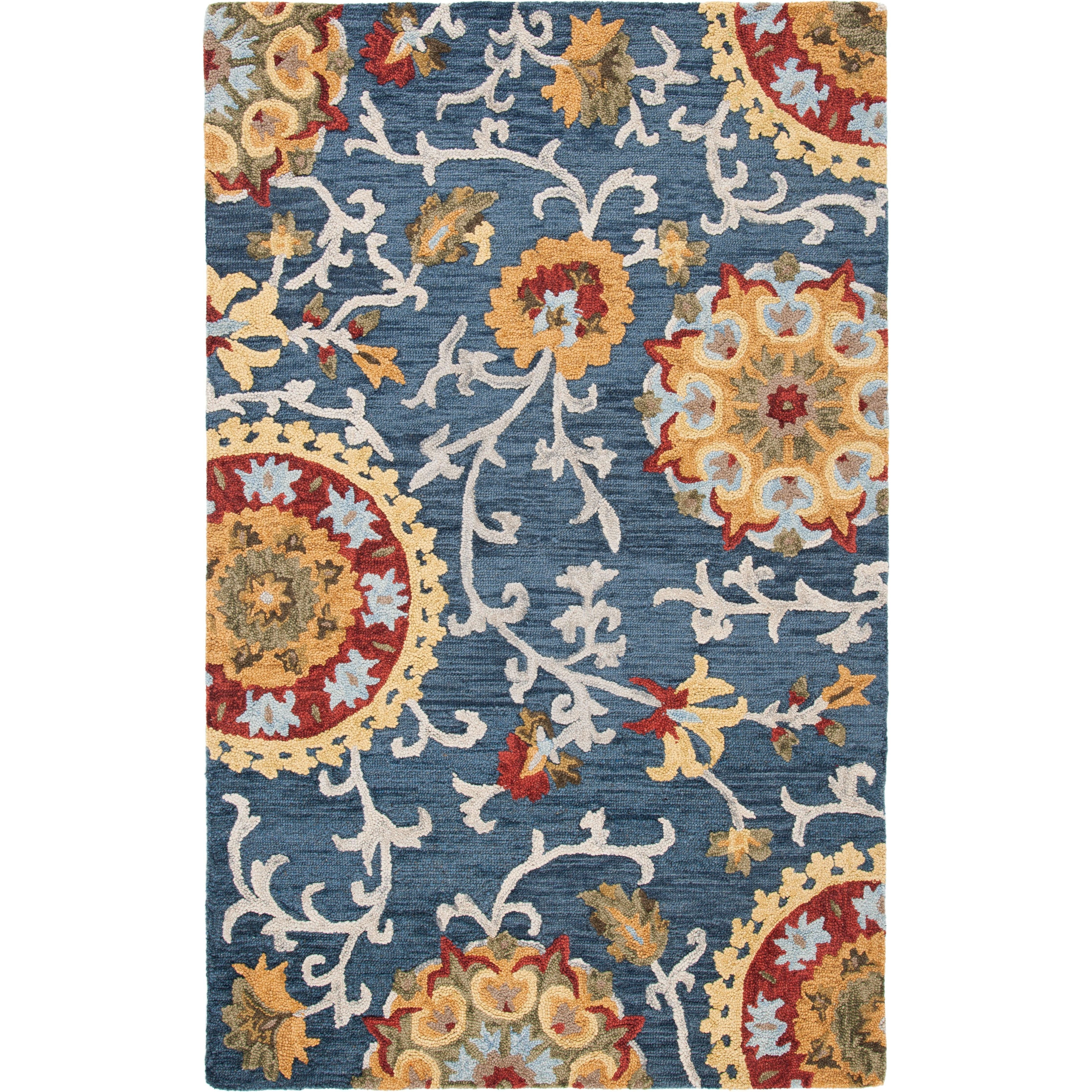 Blossom BLM401N rug from the Blossom Collection, a vibrant and modern take on traditional hooked rugs. Crafted with large hand-woven loops using 100% premium wool, these rugs add a touch of fresh charm to any country casual interior. With a thickness of approximately 0.5 inches, the texture and design of Blossom rugs seamlessly blend classic English chintz and block print motifs with contemporary home decor styles.