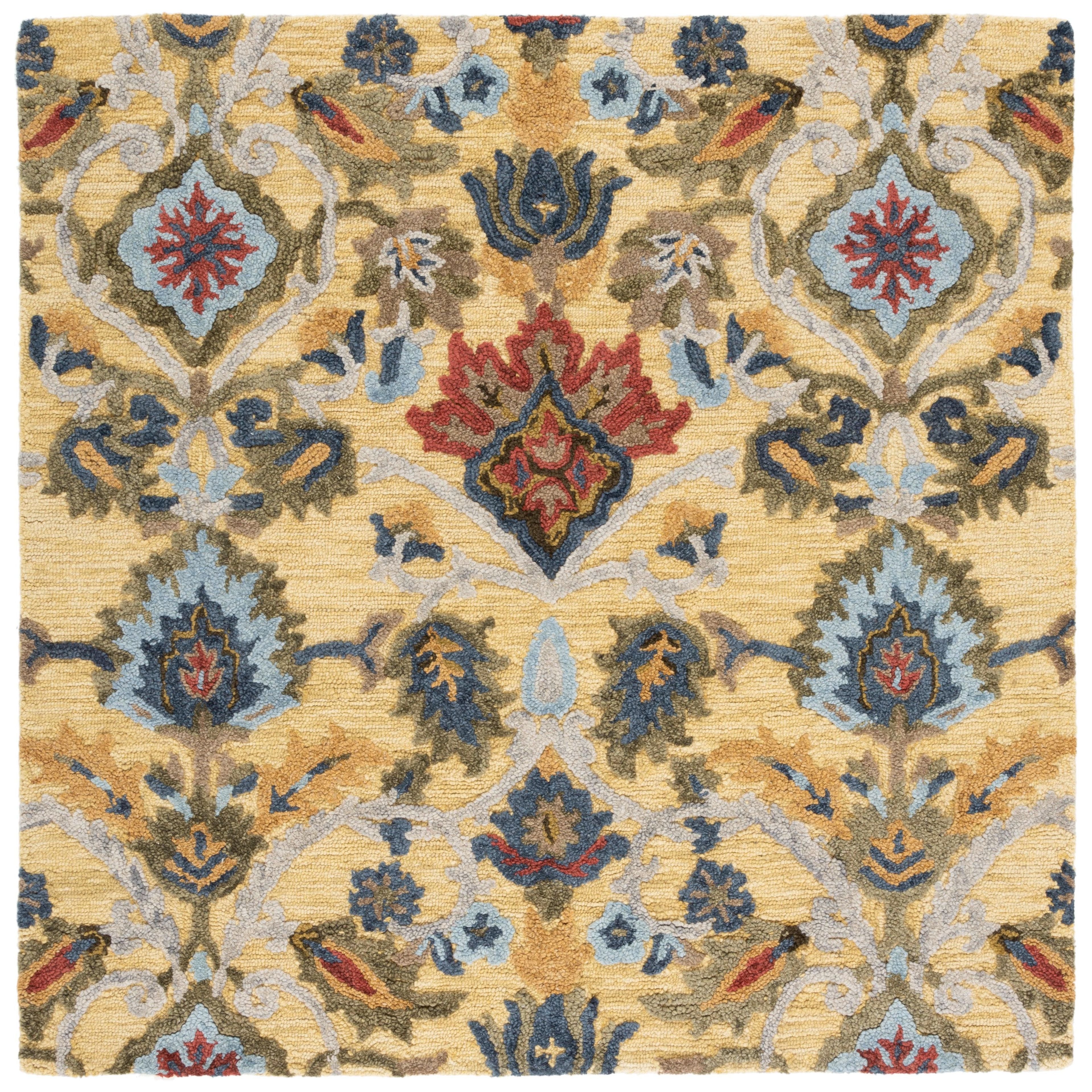 Blossom BLM402D rug from our Blossom Collection, a modern twist on traditional hooked rugs. Crafted with large hand-woven loops, these rugs offer a unique texture that adds a touch of charm to any country casual interior. Made from 100% premium wool, the Blossom area rugs feature classic English chintz and block print motifs, blending timeless designs with contemporary home decor trends. With an approximate thickness of 0.5 inches, this rug is both stylish and comfortable underfoot.