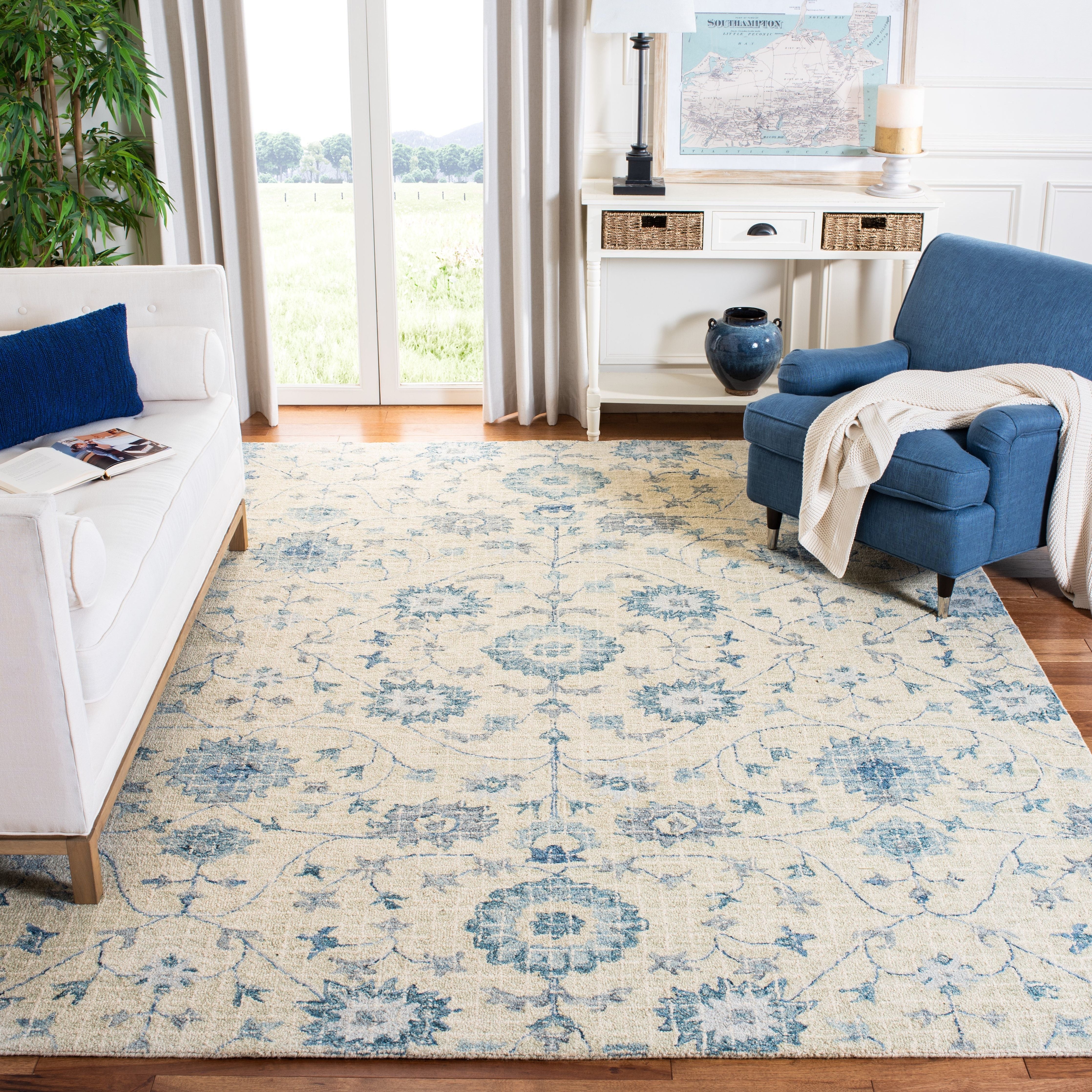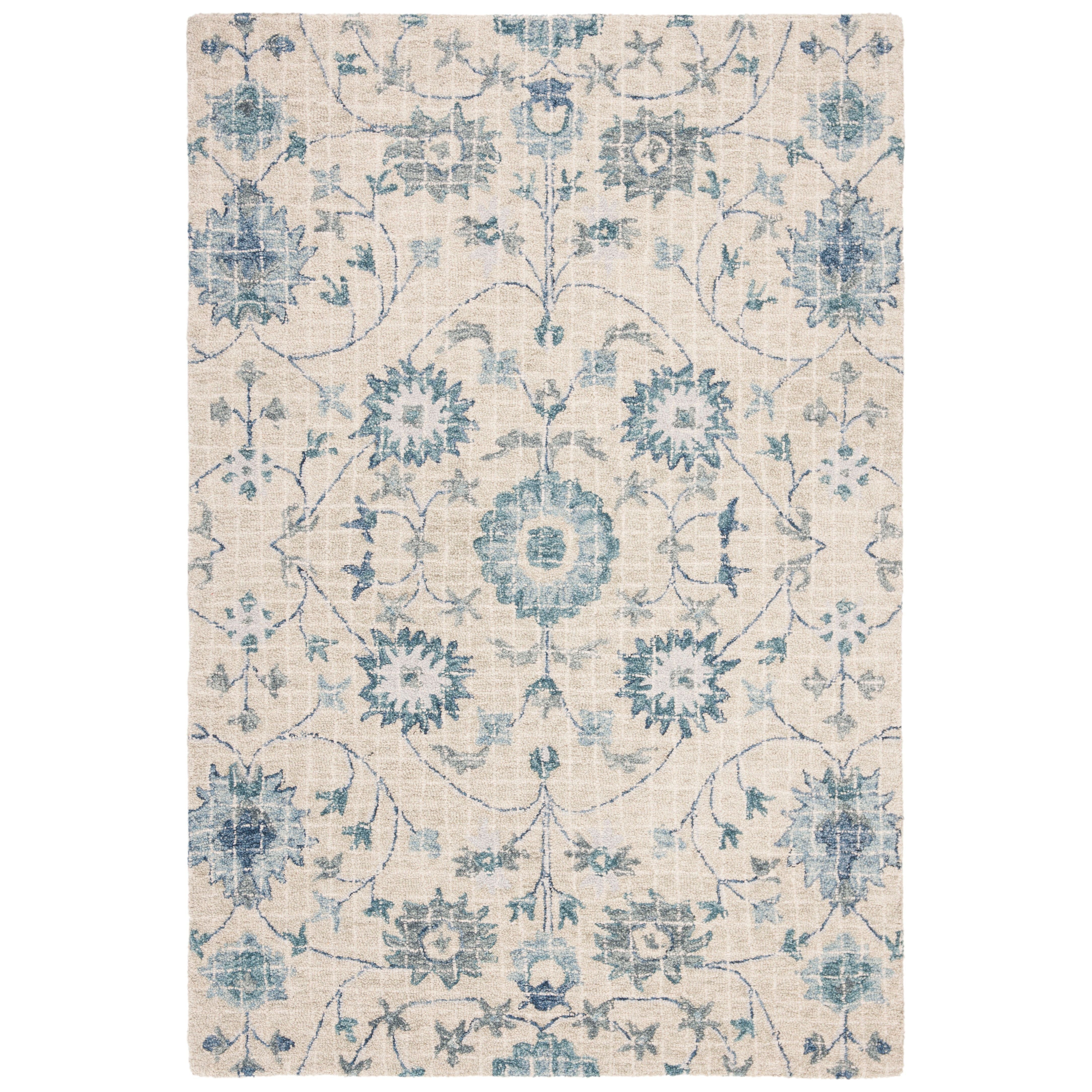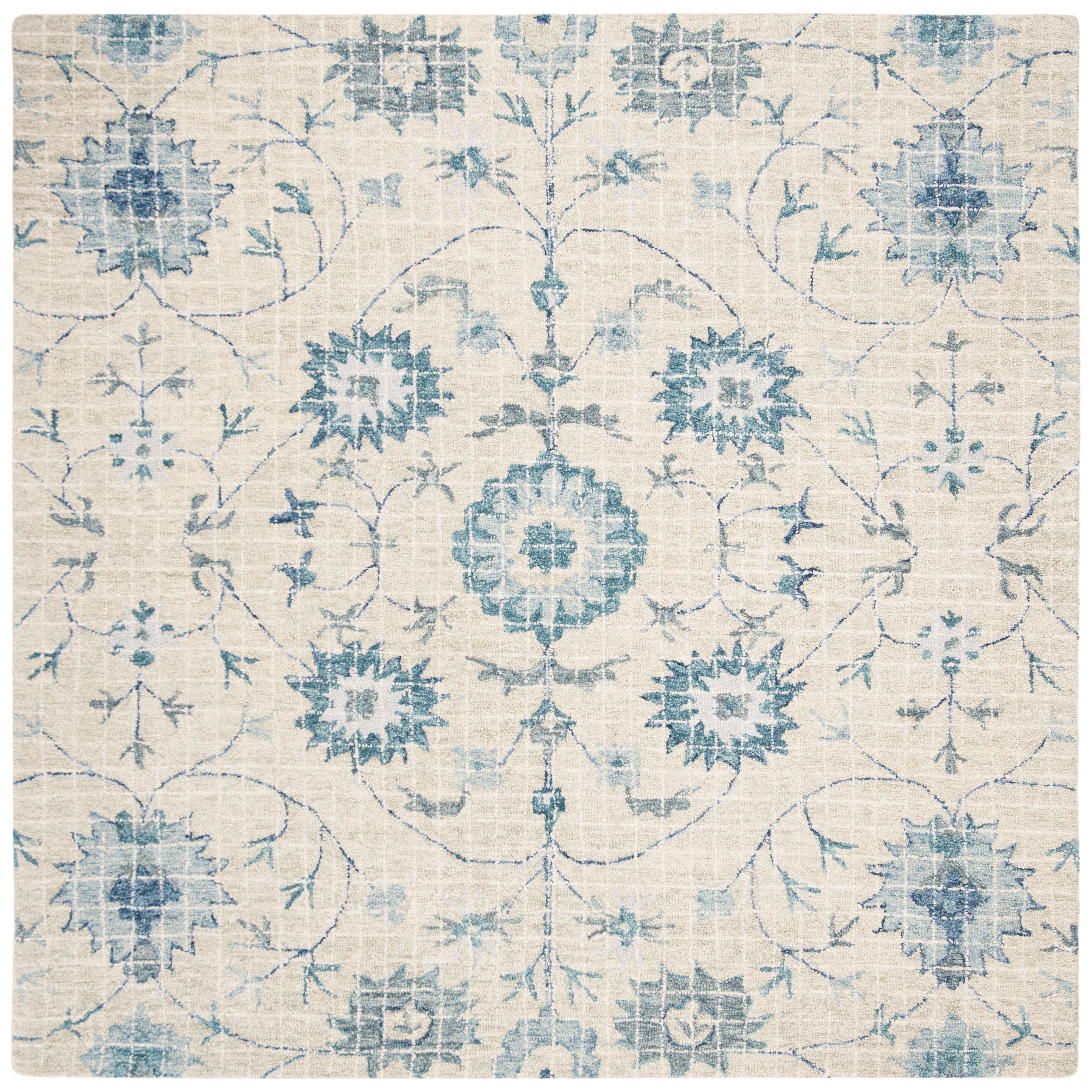 Blossom BLM812F Silver Blue rug from Safavieh's exquisite Blossom Collection. Embrace the allure of nature with its contemporary floral patterns that infuse elegance into any living space. Crafted by hand from 100% premium wool, these rugs boast modern tufting techniques for enhanced longevity. The intricate floral designs and vibrant, modern colors add a touch of sophistication to your decor. Revel in the dense, soft pile that ensures both luxurious comfort and lasting quality. Elevate your home with the timeless beauty and durability of the Blossom BLM812F Silver Blue rug – a cherished piece for years to come.