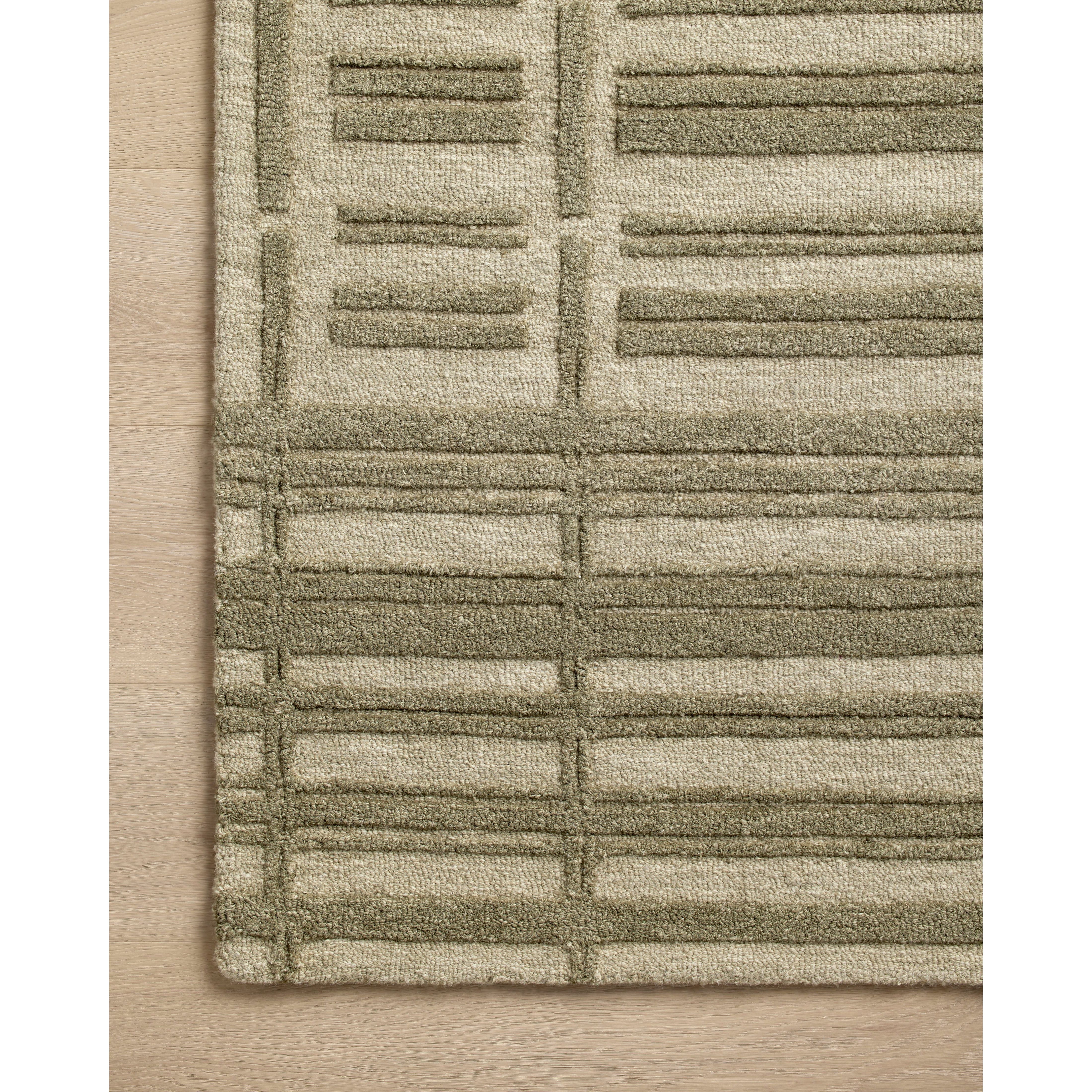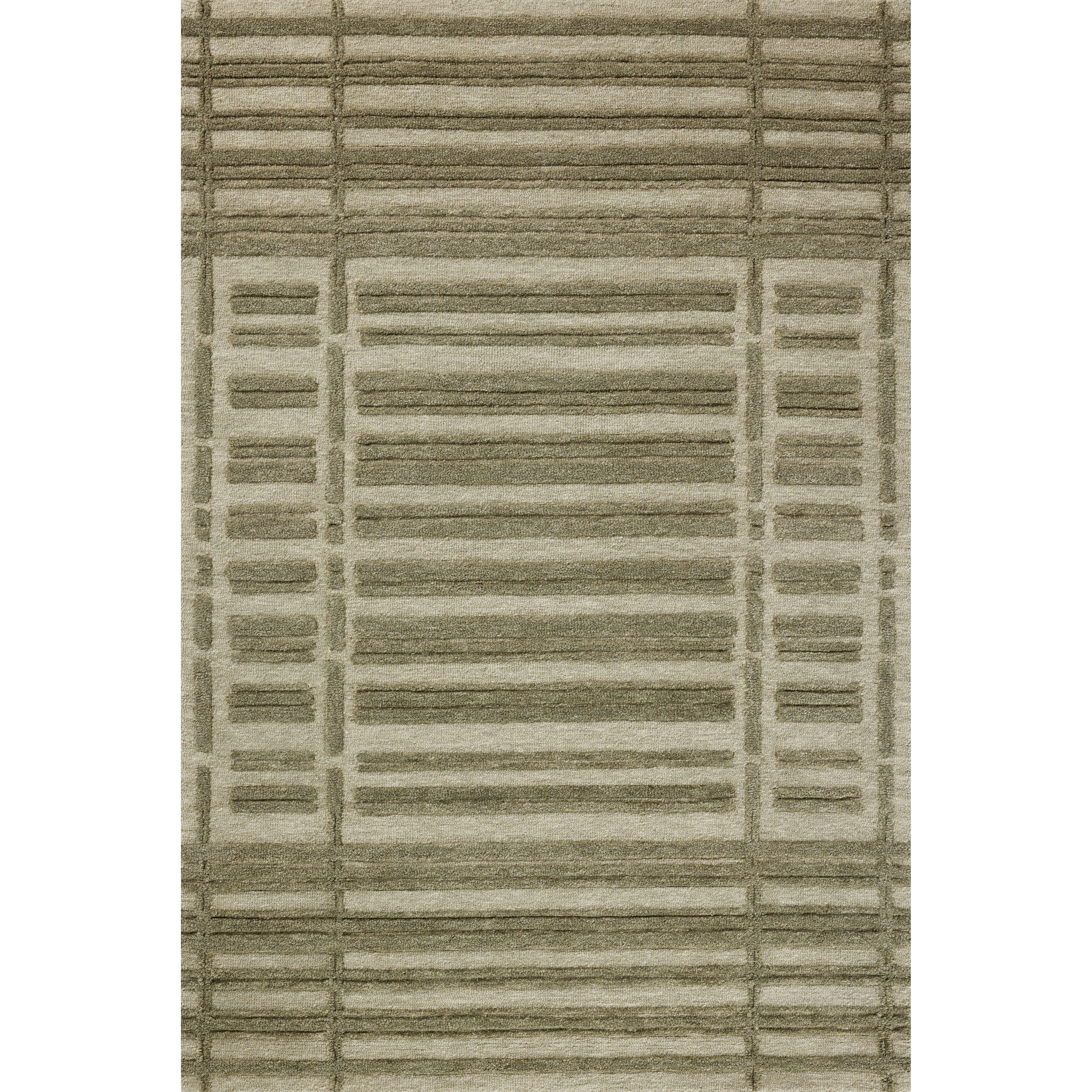 Bradley Brl 07 Sage Olive rug from the exclusive Bradley Collection by Chris Loves Julia x Loloi. Elevate your space with this modern twist on the classic striped rug. Crafted from 100% wool, this hand-tufted collection showcases striking two-toned linear patterns and alternating high-low pile for added texture and dimension.