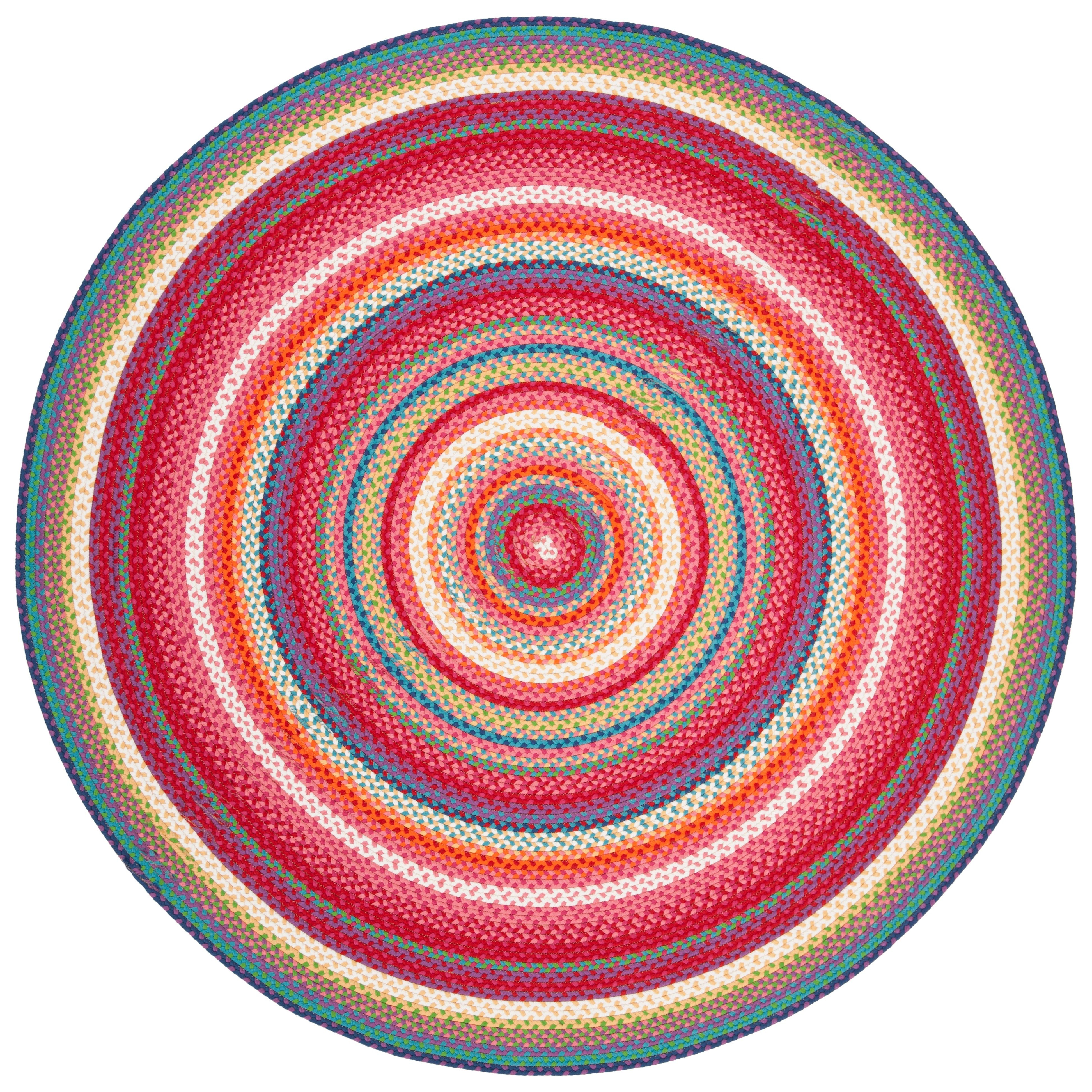 Experience the timeless charm and enduring beauty of the Braided BRD316A Multi rug by SAFAVIEH. This beloved American classic has been updated with fashion-forward colors and modern fibers, making it ideal for casual 21st-century homes. The easy-care properties of SAFAVIEH's braided rugs make them a practical choice for families, with an approximate thickness of 0.25 inches.